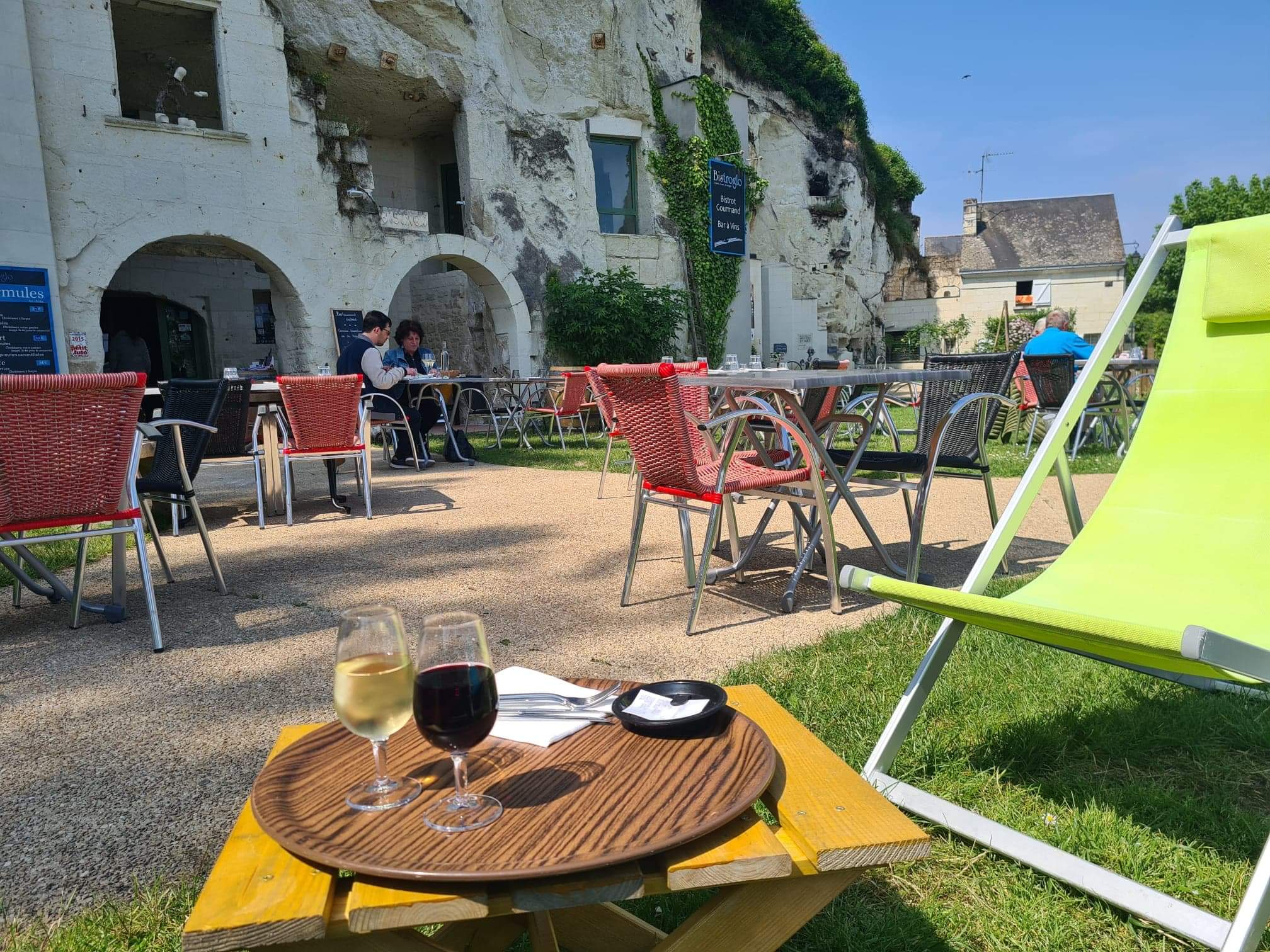Rafraîchissant et très beau bar troglo en surplombant la vallée de la Loire