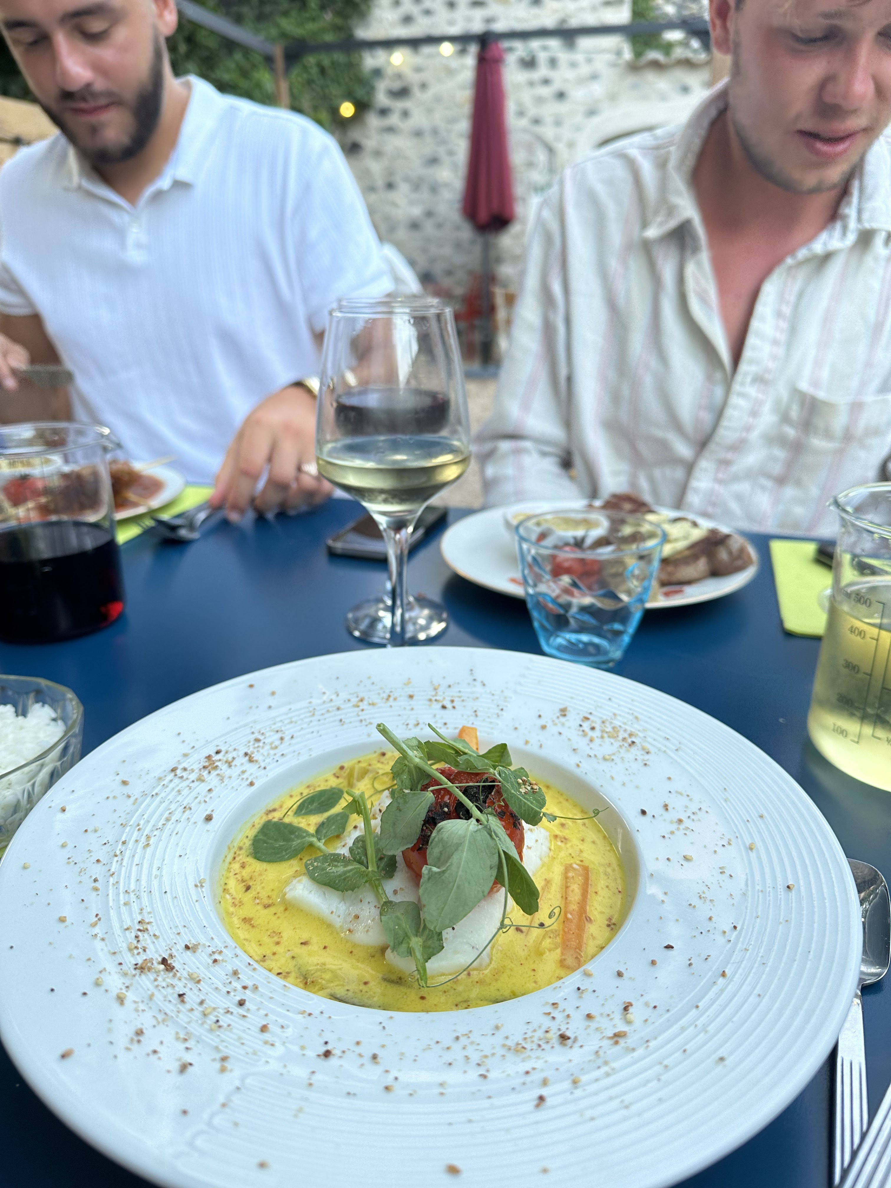 Tres belle découverte, repas en amoureux pris en terrasse, celle ci dans une cours intimiste, la patronne qui nous accueille douce et agréable, une petite carte et pourtant le choix est difficile tant les plats ont tous l air aussi bons les uns que les autres, une fois le choix fait il n y a plus qu a profiter de la soirée. Aucune fausse note, tout etait tres bon et parfaitement présenté. Nous avons pu échanger avec les patrons (le cuisto et la serveuse) en fin de soirée, tous 2 très agréables, aimant aussi la randonnee ils ont pu nous conseiller. Je recommande sans hésiter cette adresse.