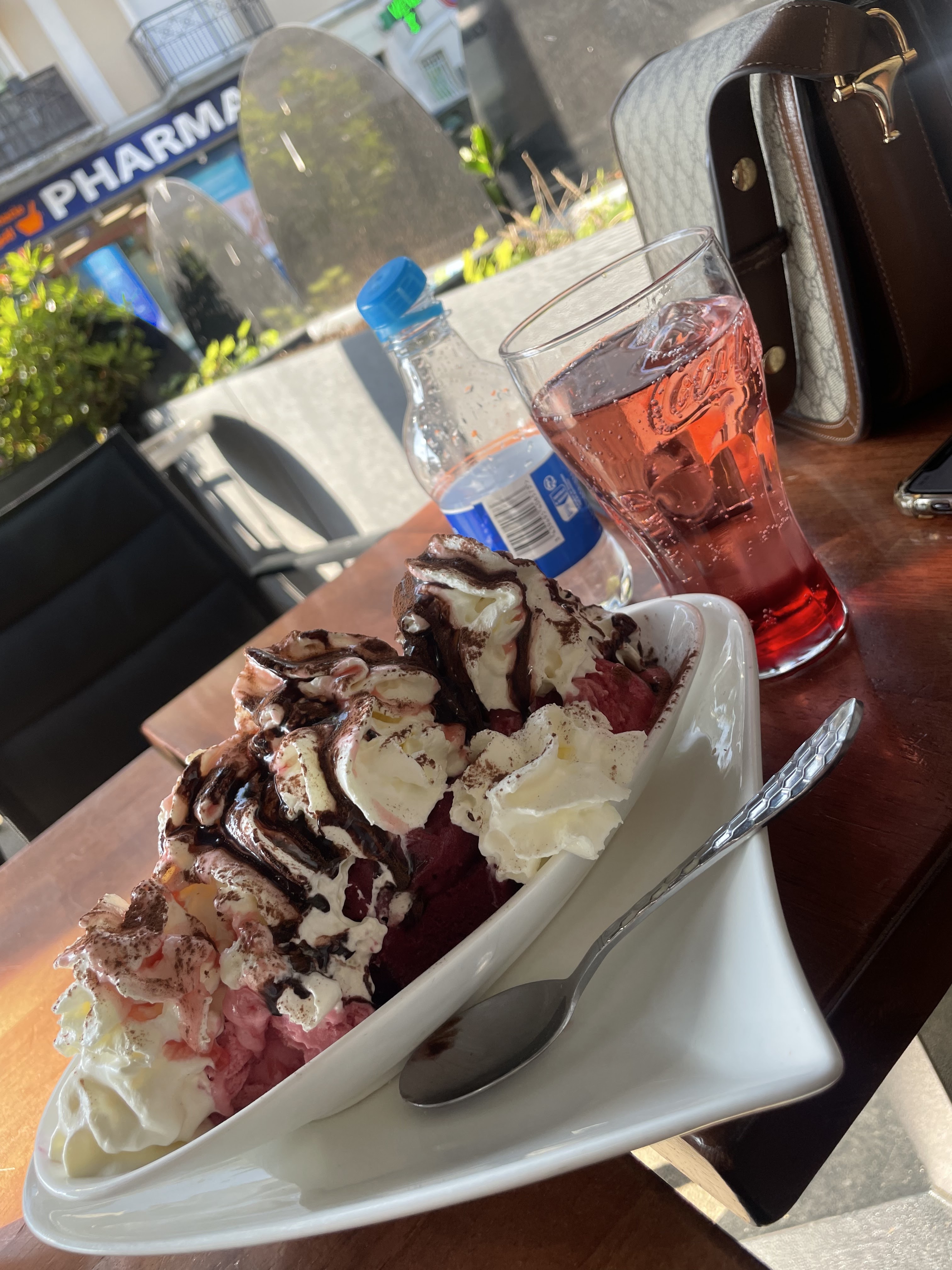 Ce restaurant semble sympa, mais nous ne nous sommes pas sentis les bienvenus. La première impression était que le serveur choisissait dans son esprit celui qui rapporterait le plus d'argent. Au début, nous (moi et mes deux enfants) sommes arrivés derrière un gars et le serveur a dit d'accord, il y avait une table pour nous, mais pas pour lui quand il n'avait pas de réservation. Juste une table pour une bière rapide. Puis il a découvert que mes enfants ne mangeaient qu'une glace et non un plat complet, c'était la première fois qu'il roulait des yeux. C'était assez complet, car il y avait une session live à l'intérieur. Alors à chaque fois qu'il y avait un groupe de quatre ou cinq adultes, il regardait notre table et nous avions le sentiment que nous n'étions pas les bienvenus. Ce n’était pas seulement mon impression, mais aussi celle de mes enfants. En ce qui concerne la nourriture, je dois dire que les glaces de mes enfants contenaient trop de crème. J'ai commandé un vin rouge et quand je l'ai reçu, il y avait un moustique mort dans la carafe qui devait déjà être là lorsqu'il y a rempli le vin. La carafe est recouverte d'une couche de poussière. L'assiette de grillades était bonne, le goût était bon. Malheureusement, l'une des brochettes était froide.