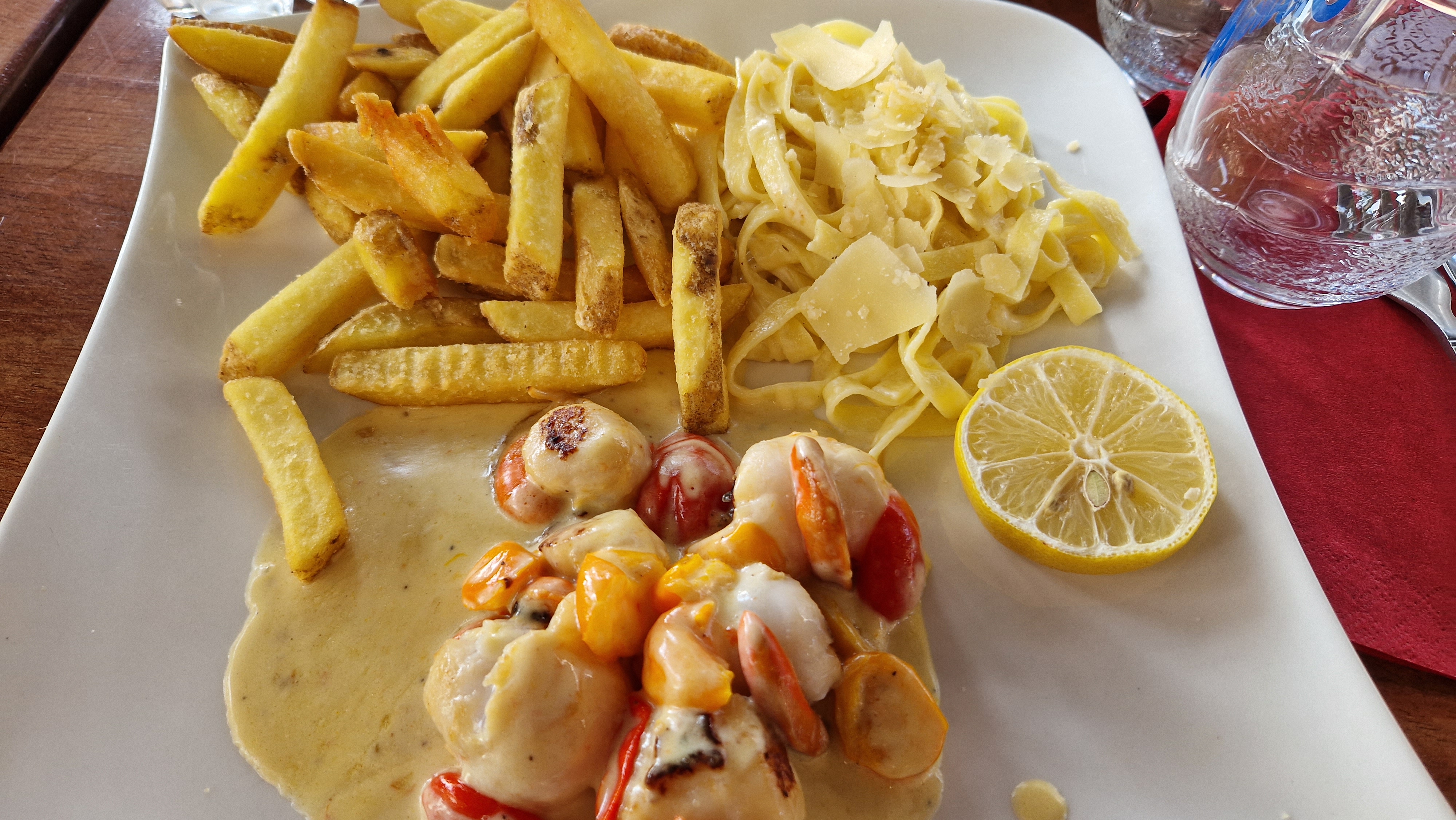 Pizzas grandioses pour a peine 14€. Bien entendu ce sont des fruits de mer surgelés, mais appétissantes. Les autres plats sont corrects. L'accueil est chaleureux...mérite le retour pour petit budget.