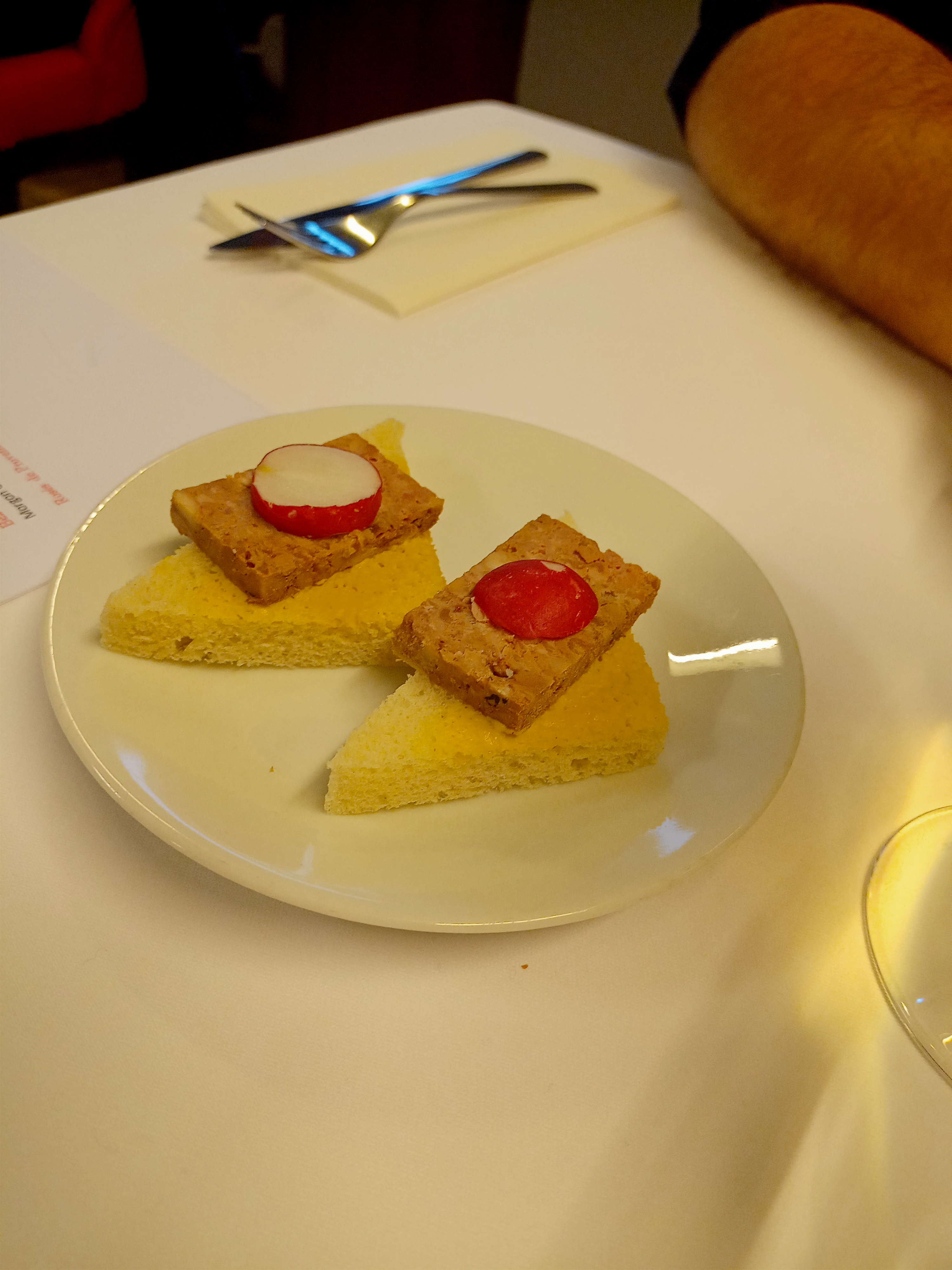 La nourriture est fondamentalement bonne. Seul le gougelhupf au foie gras était sec et vieux. Service un peu lent et inattentif. La bouteille de vin arriva à table déjà ouverte. Désolé, ça ne marche pas du tout. La musique est clairement trop forte dans le restaurant. Quand nous avons demandé si le volume pouvait être réduit un peu, nous avons répondu non. Des toiles d'araignées dans le coin.