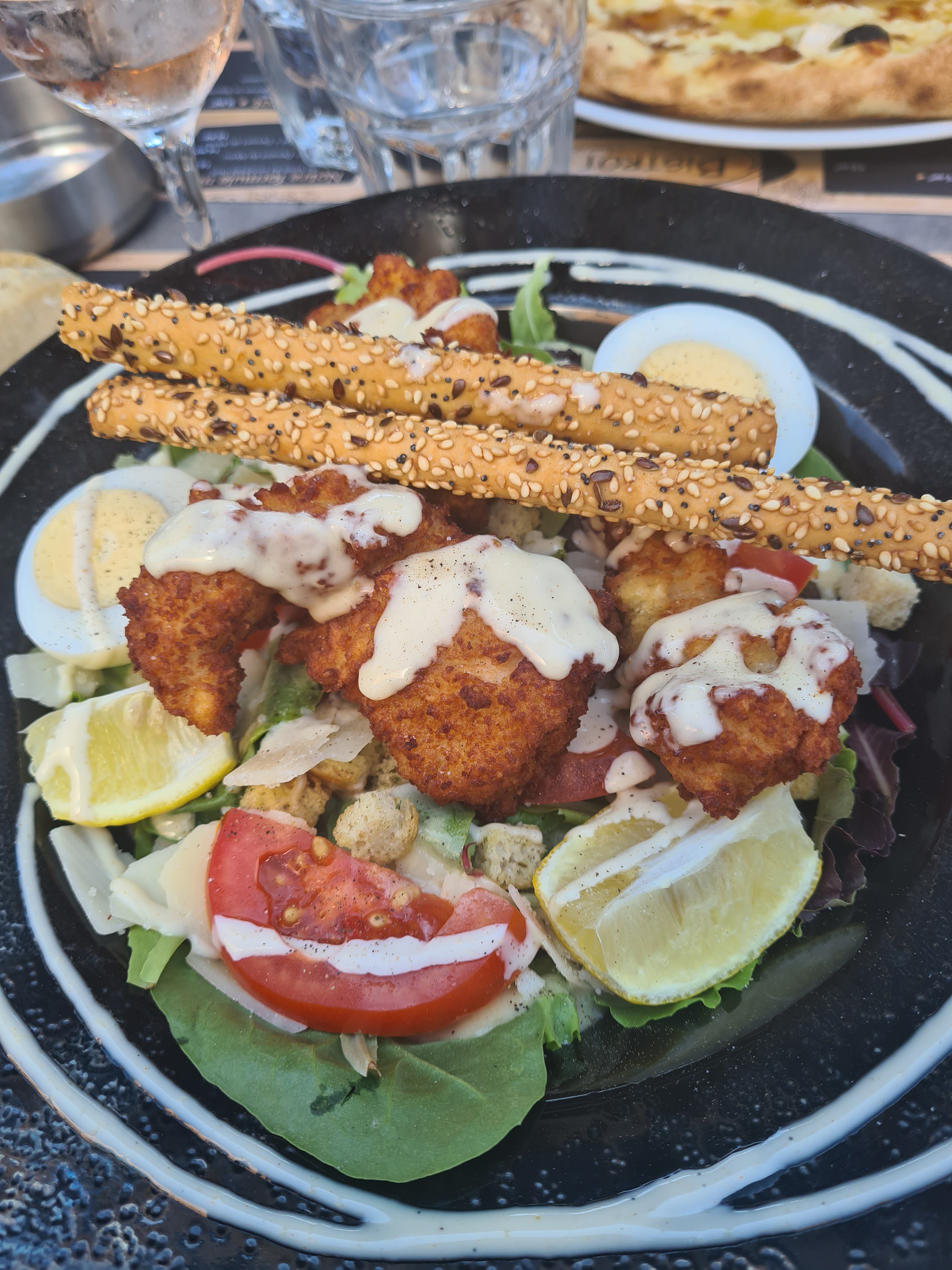 Très bon repas, salade et pizza excellentes... Petit regret sur la salade de fruit frais (pommes un peu farineuse) mais nous avons passé un très bon repas ;)