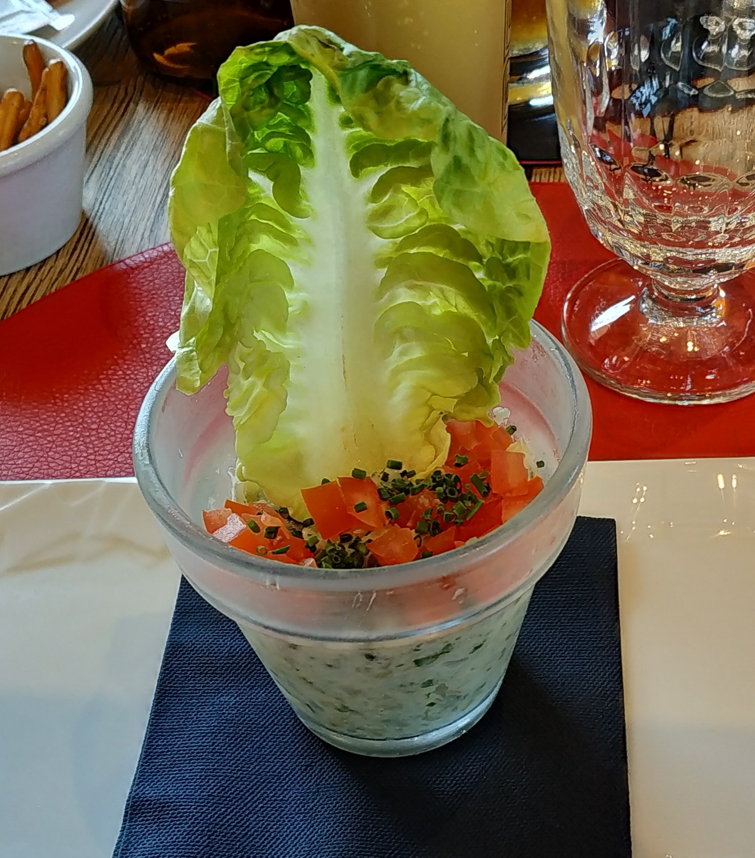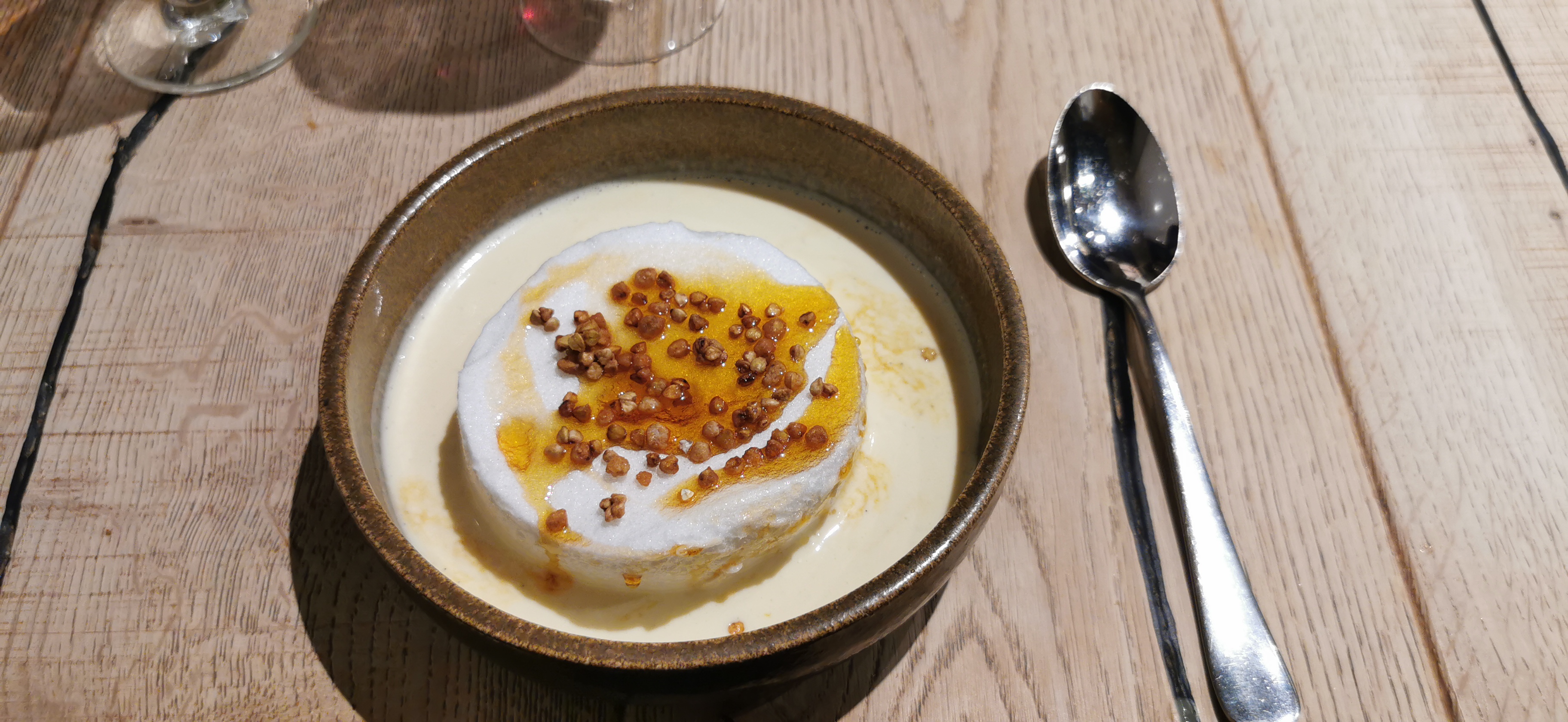 Bonne cuisine, mais je m’attendais à mieux, quelque chose de plus léger plus raffiné, mais le rapport qualité prix est correct. Petit bémol : une racine avec un amas un peu pourri indéfinissable sur une pousse de mâche, signalé au serveur qui n’a pas eu l’air de trouver cela anormal ! Dommage moi j’ai trouvé cela assez dégoûtant