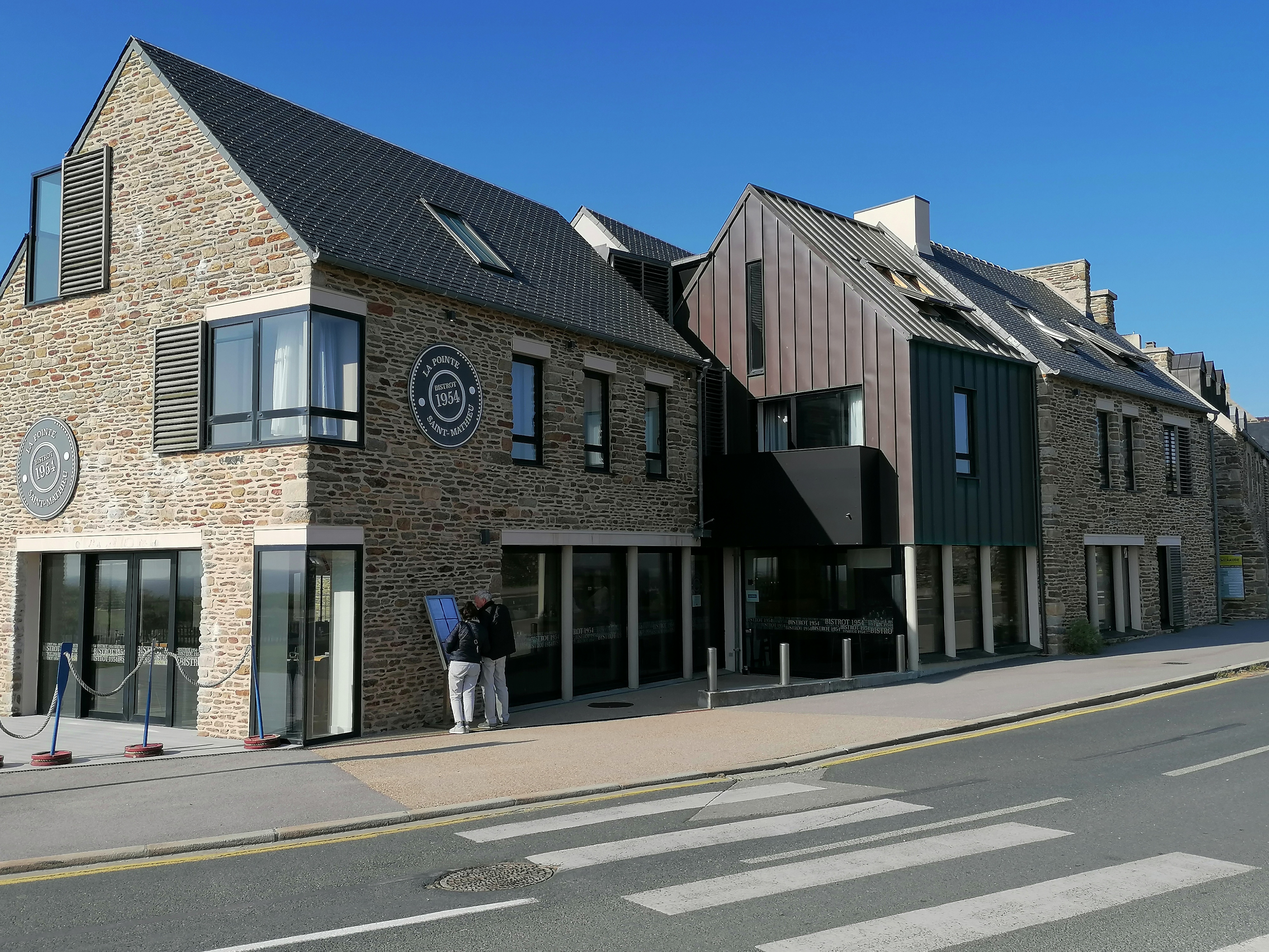 Face au phare de la pointe st Mathieu le bistrot 1954. Restaurant très moderne bien claire avec de grandes baies vitrées pour profiter du cite et de la mer qui par grand beau temps et éblouissant de lumière. Cartes très variés et un menu pour toutes les bourses. Personnels accueillant et souriant. Agréable moment passé dans l'établissement. Allez y sans modération. Accessible aux personnes handicapées.