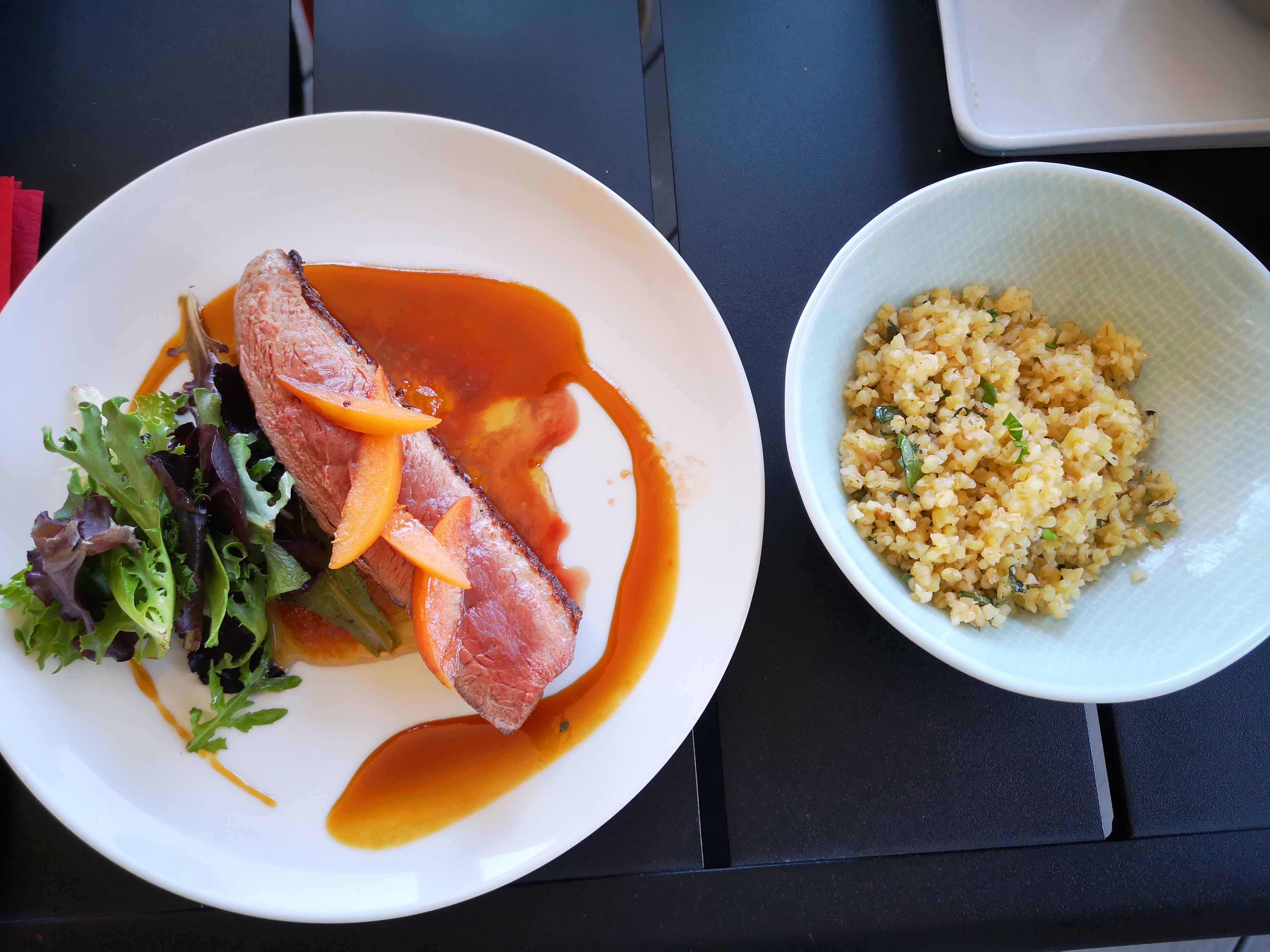 L'entrée et le dessert étaient délicieux... Mais le plat principal n'était pas bon 😭 ce n'était que de l'herbe.... Comme vous avez pu le remarquer sur la photo 😭😭😭