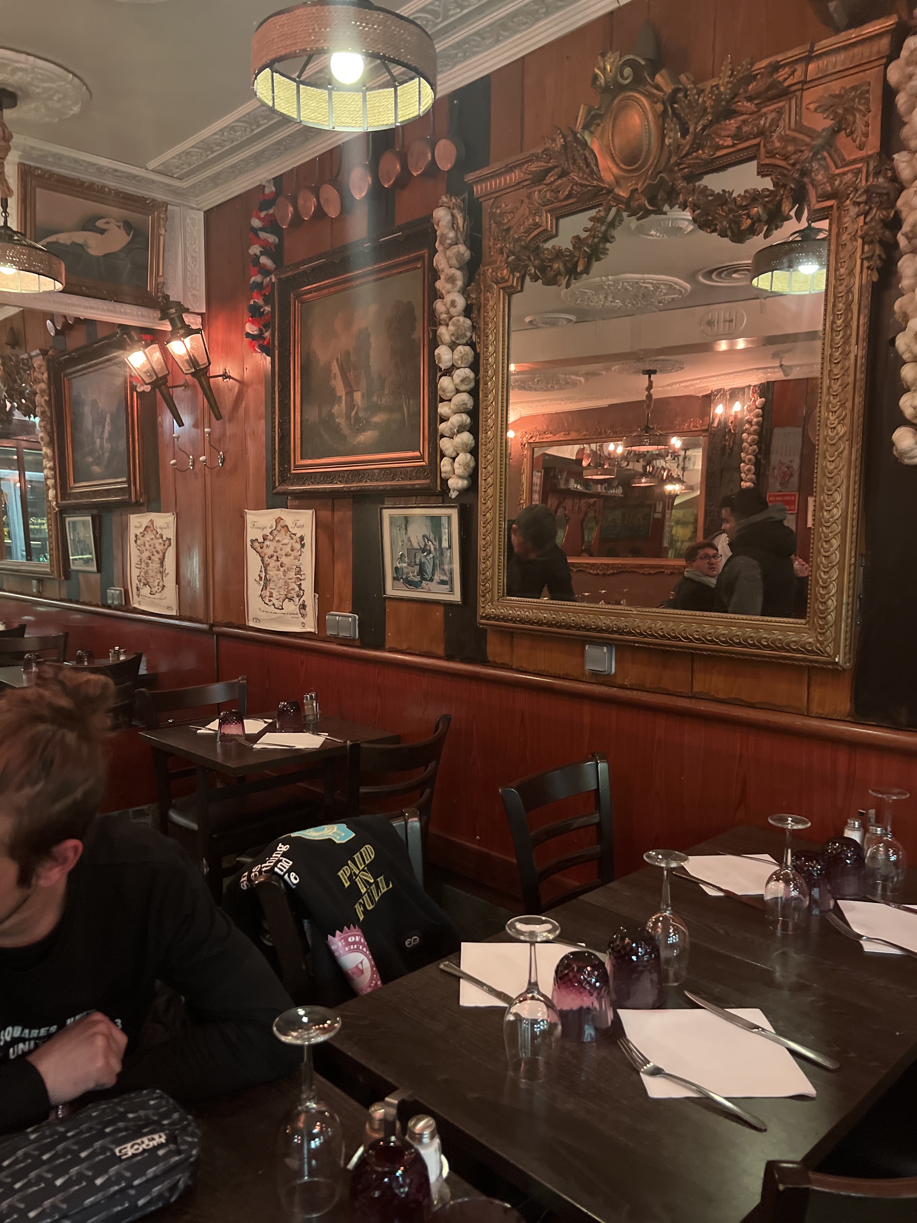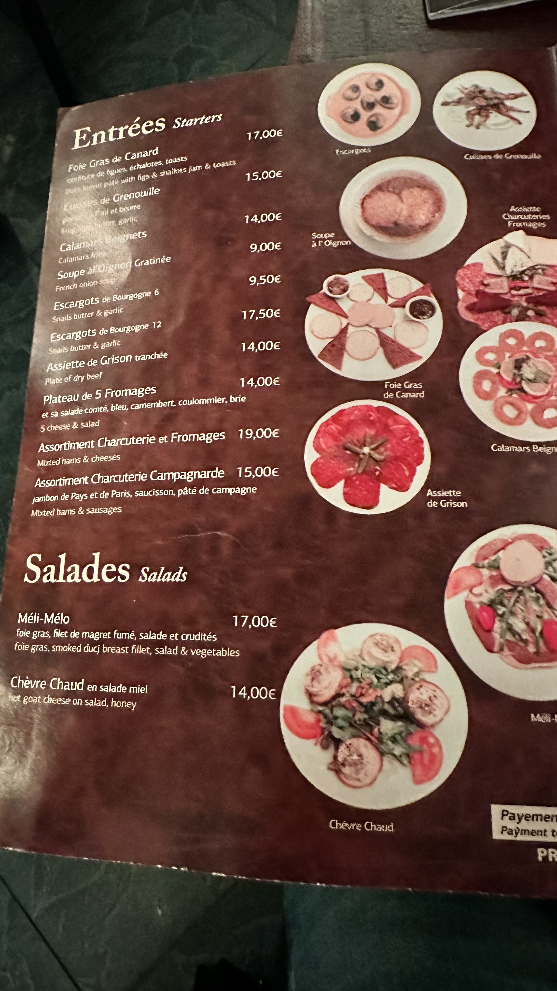 De loin, c'était la pire nourriture que j'ai mangée pendant tout mon séjour à Paris. L'escargot était brûlé et immangeable, les cuisses de grenouilles manquaient d'assaisonnement et le vin vous donnait des reflux acides lorsque vous le buviez. C'est un piège à touristes qu'il vaut mieux éviter. La seule chose française à propos de cet endroit est la photo des présidents sur le mur. C'est ridiculement cher, insipide et terriblement cuit.