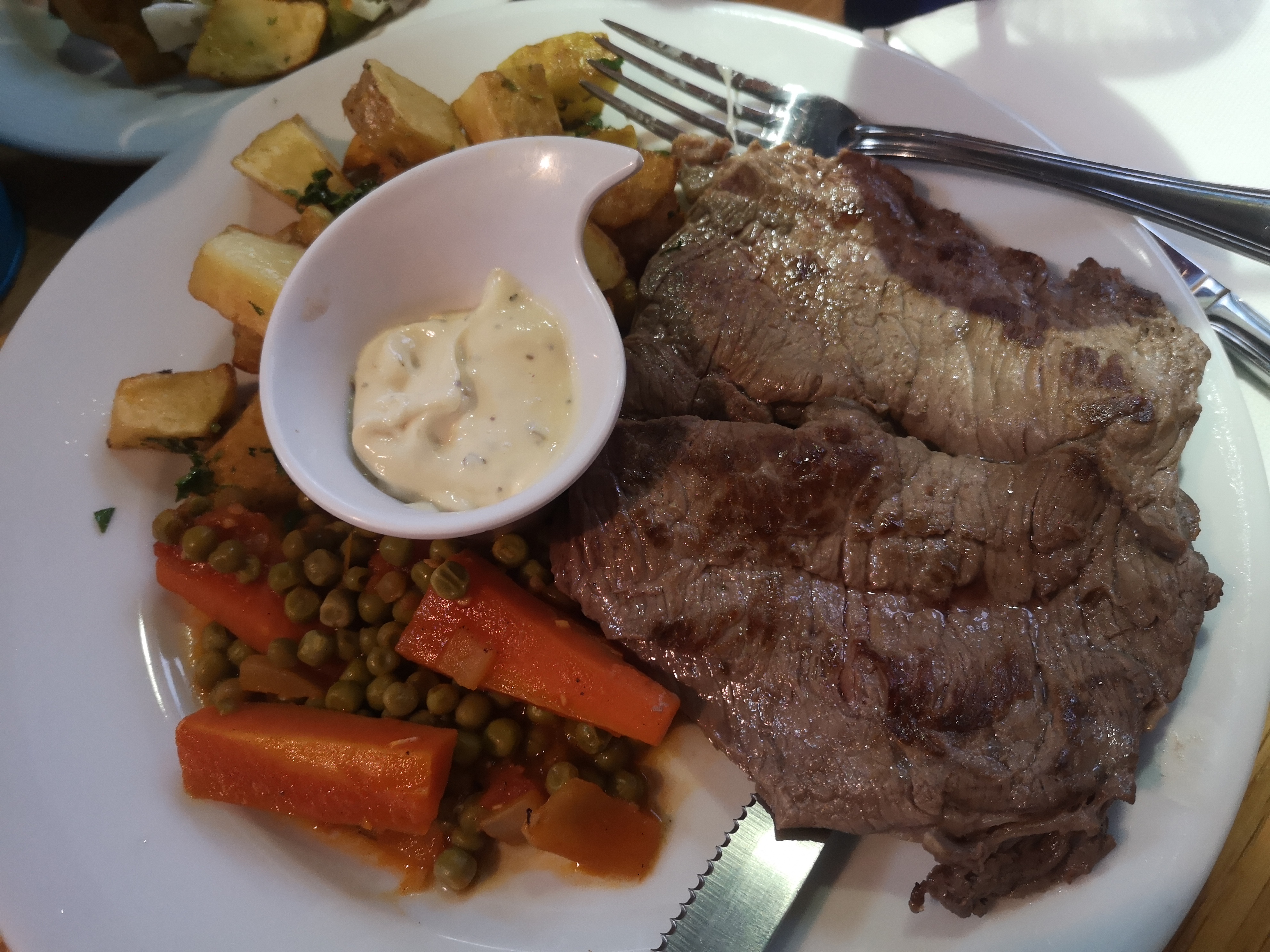 Après une courte promenade dans les environs, nous avons décidé de manger ici. Il y avait un menu à 18,90 € et, comme avec un budget limité, il fallait tenter le coup. La nourriture était moyenne. La soupe à l'oignon était trop grasse et le steak était bien cuit mais la qualité était très faible. Je comprends qu'il s'agit d'un menu fixe, mais la nourriture devrait néanmoins être aux mêmes normes. La bière était également très chère à 8 € la pinte ! Mon conseil, dépensez un peu plus et prenez un bon repas ailleurs. Si vous pensez que cet avis vous a été utile, n'oubliez pas d'appuyer sur le bouton 👍. Merci.