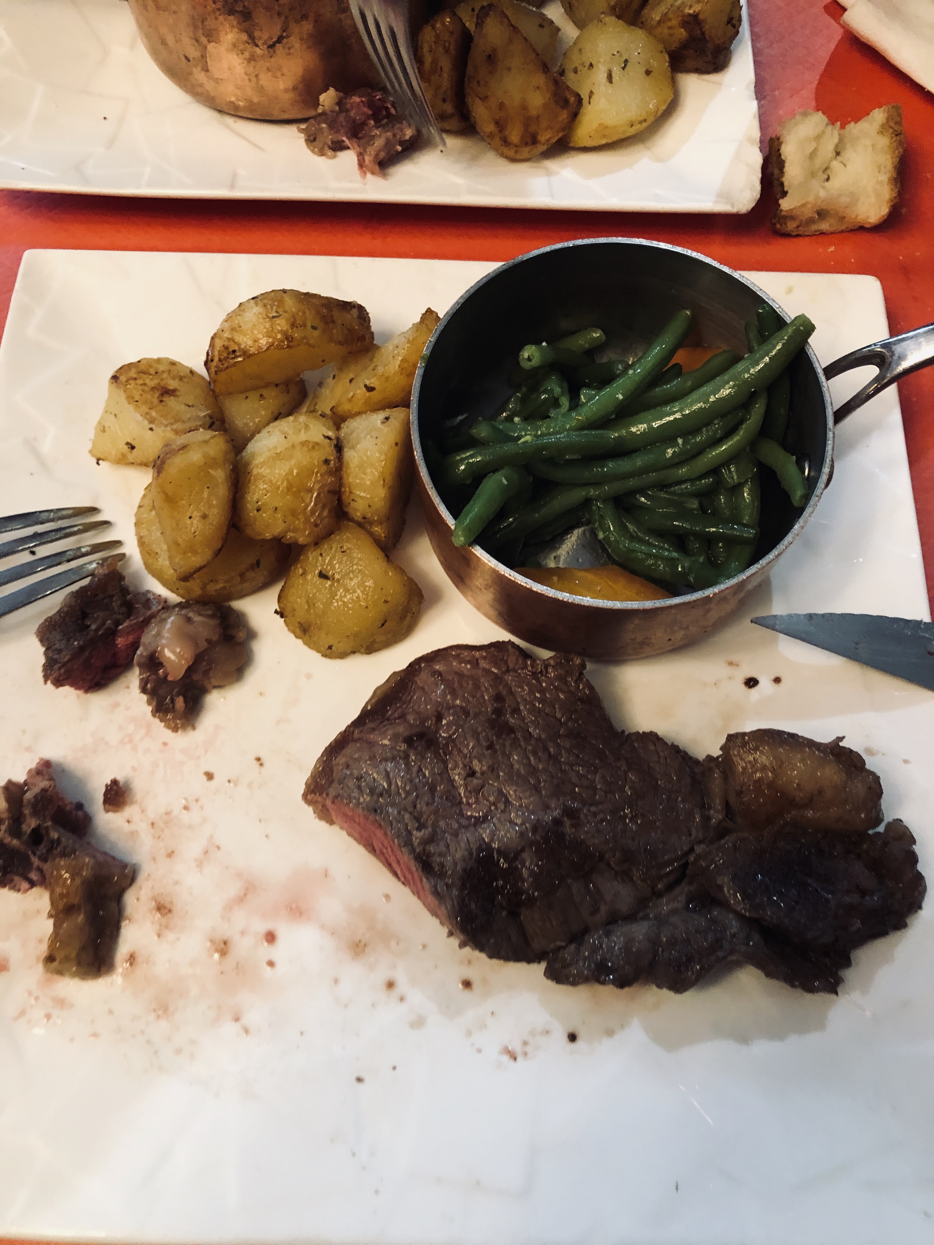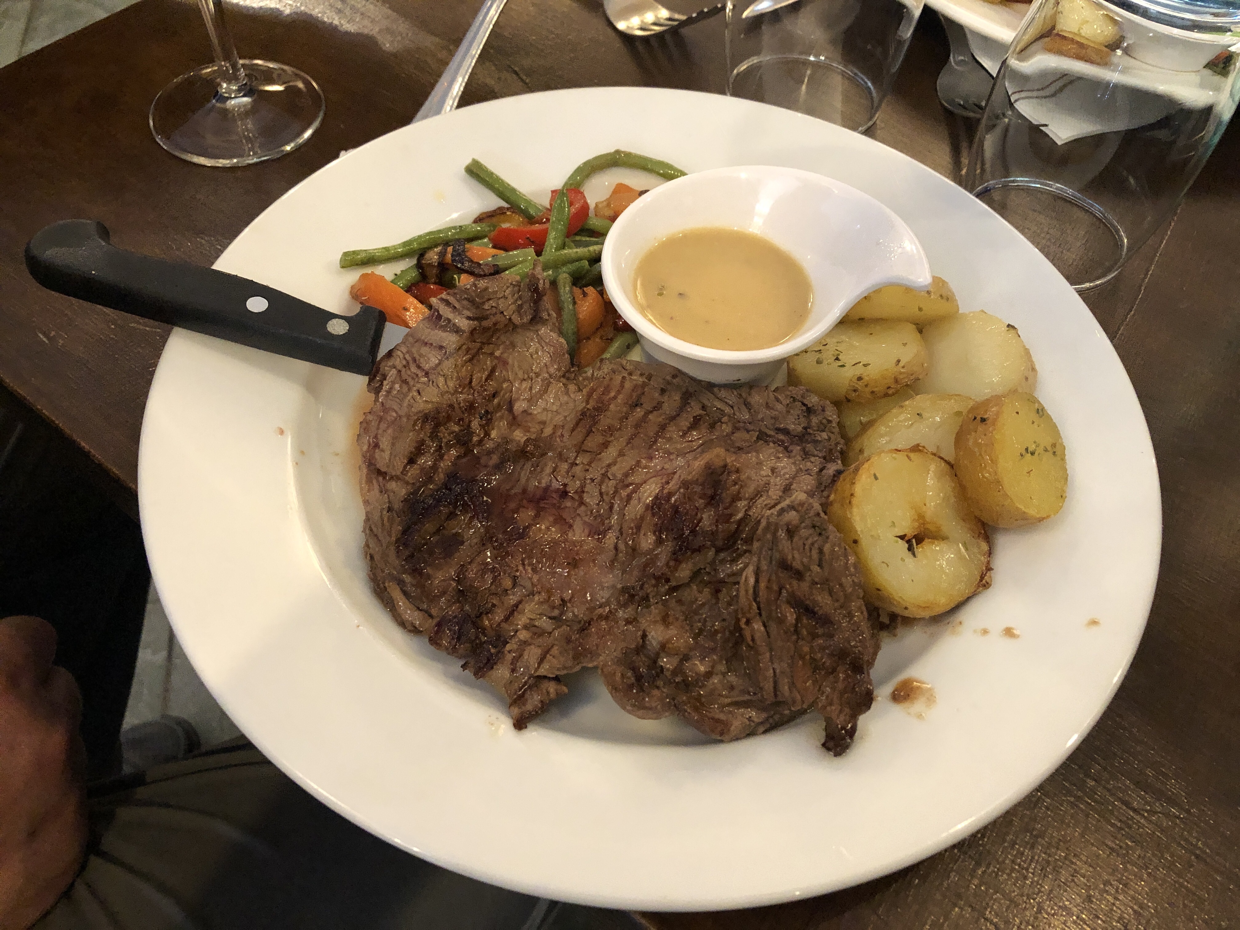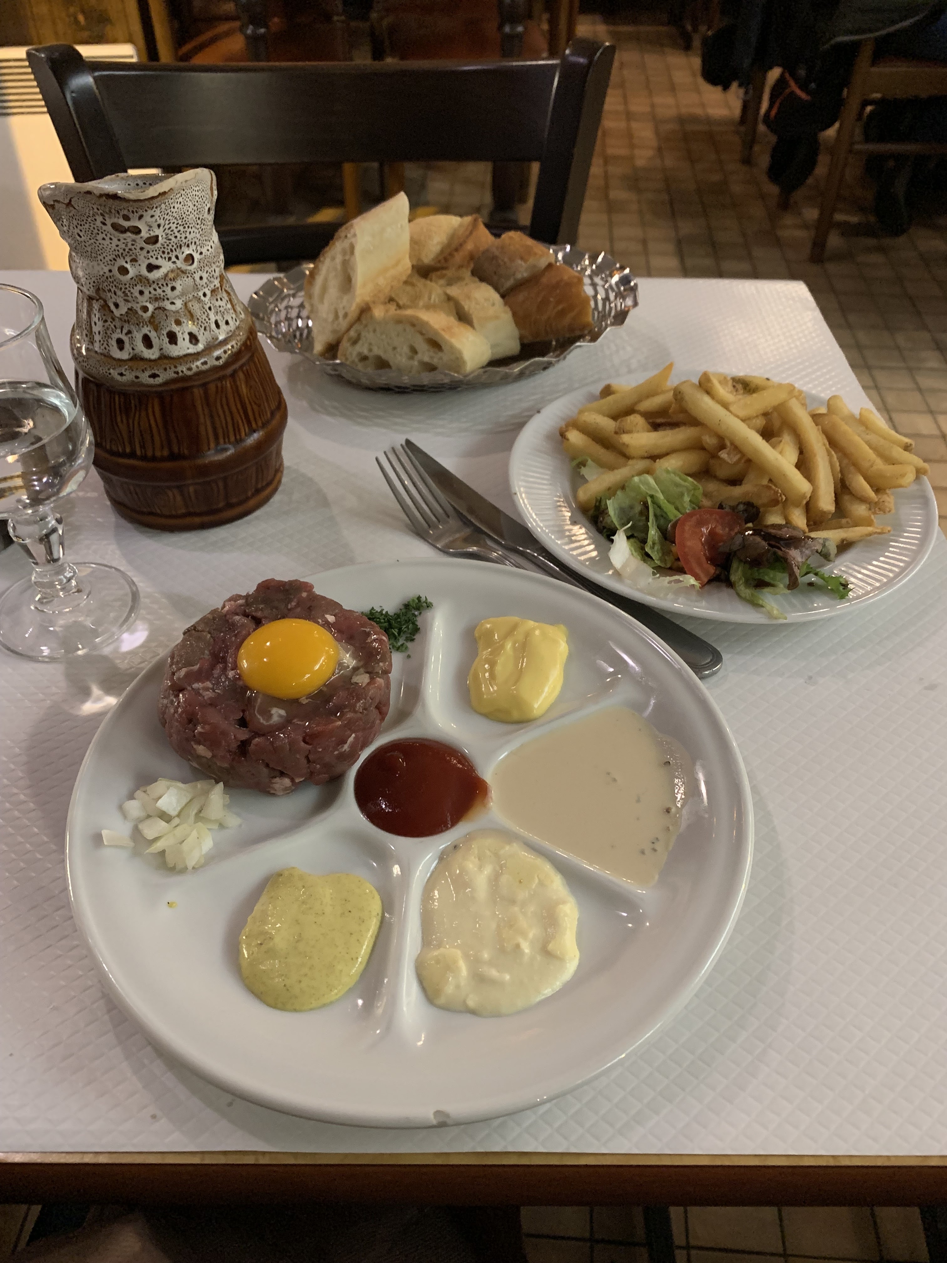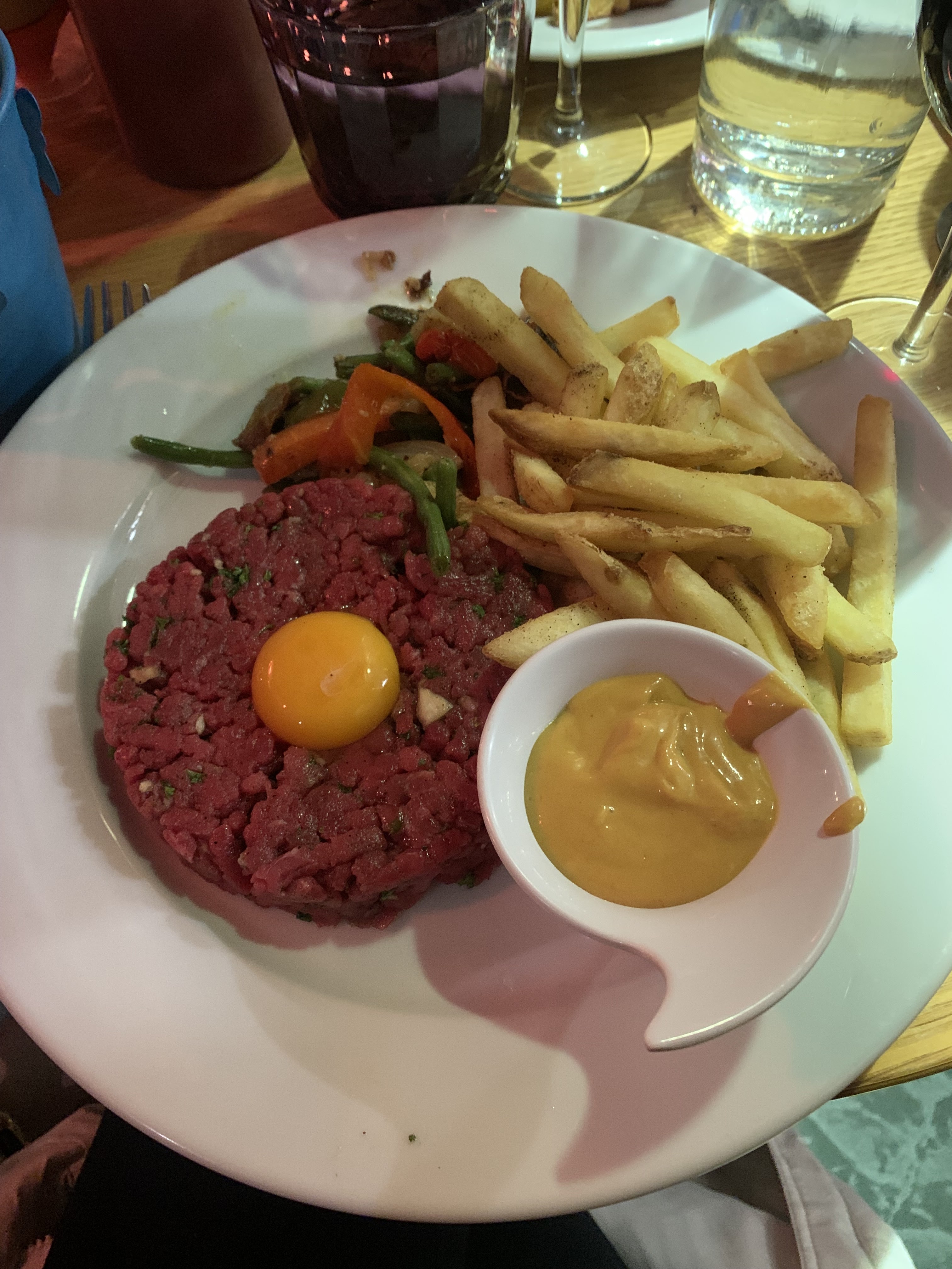 Les repas corrects, les plats traditionnels typiquement français étaient délicieux. Nous avons eu une soupe à l'oignon, une fondue savoyarde, une entrecôte grillée et une crème brûlée. Nourriture savoureuse et aussi bon vin ; Chablis ! Prix raisonnables en centre ville. Personnel anglophone. Hautement recommandé!