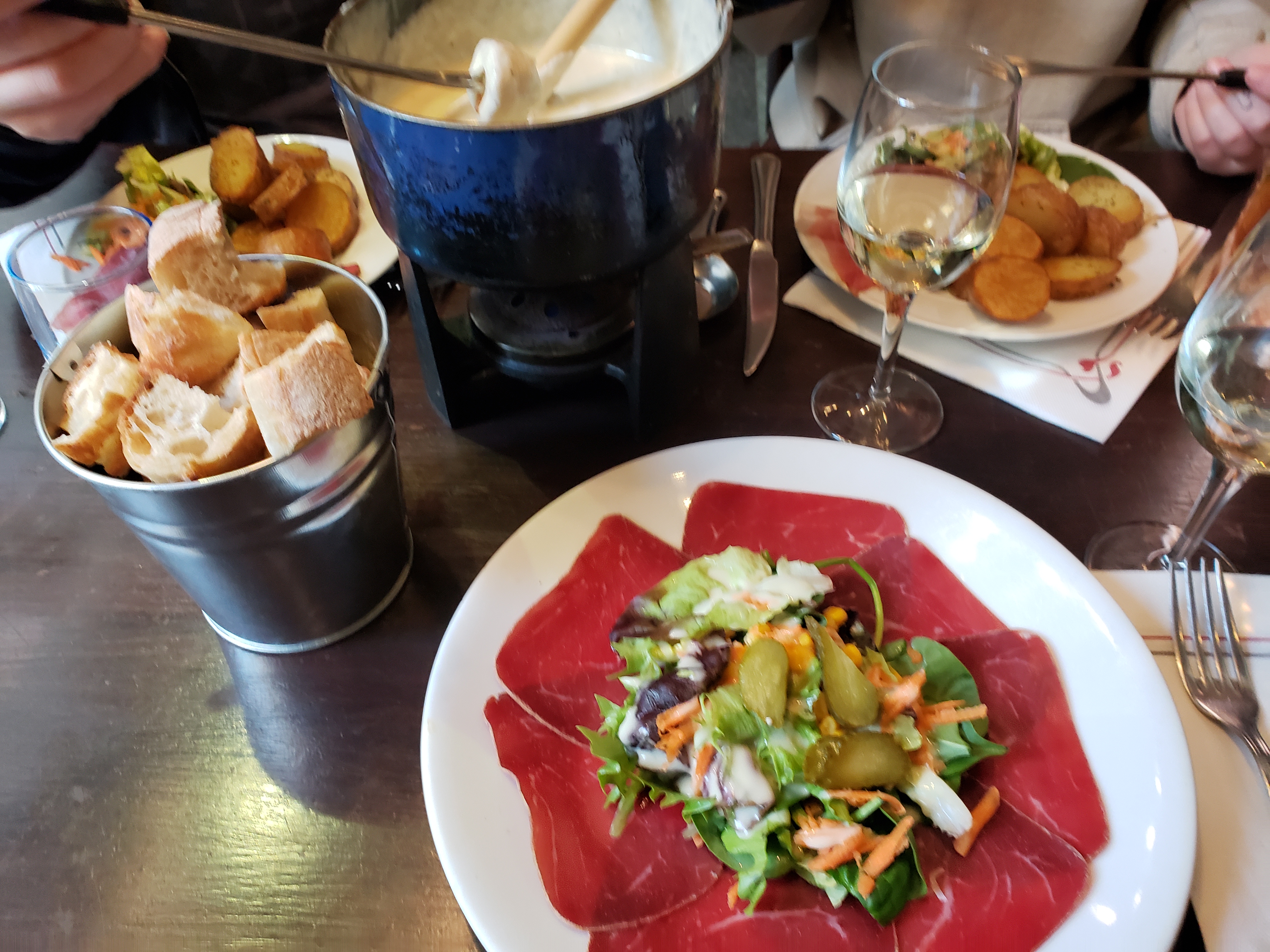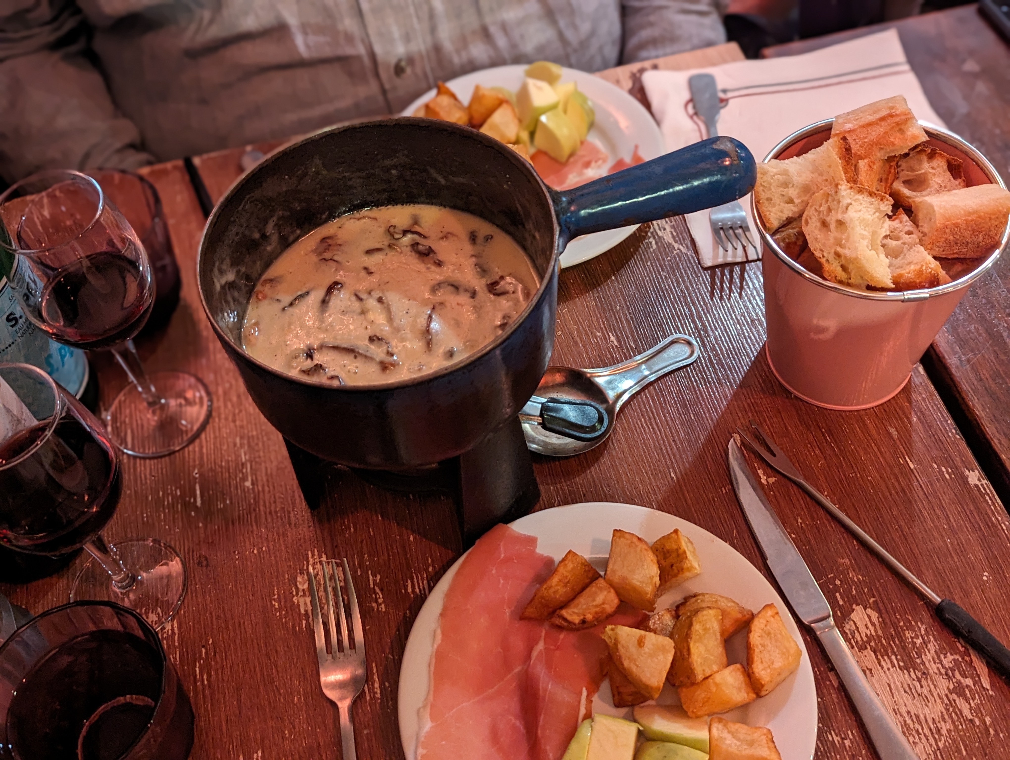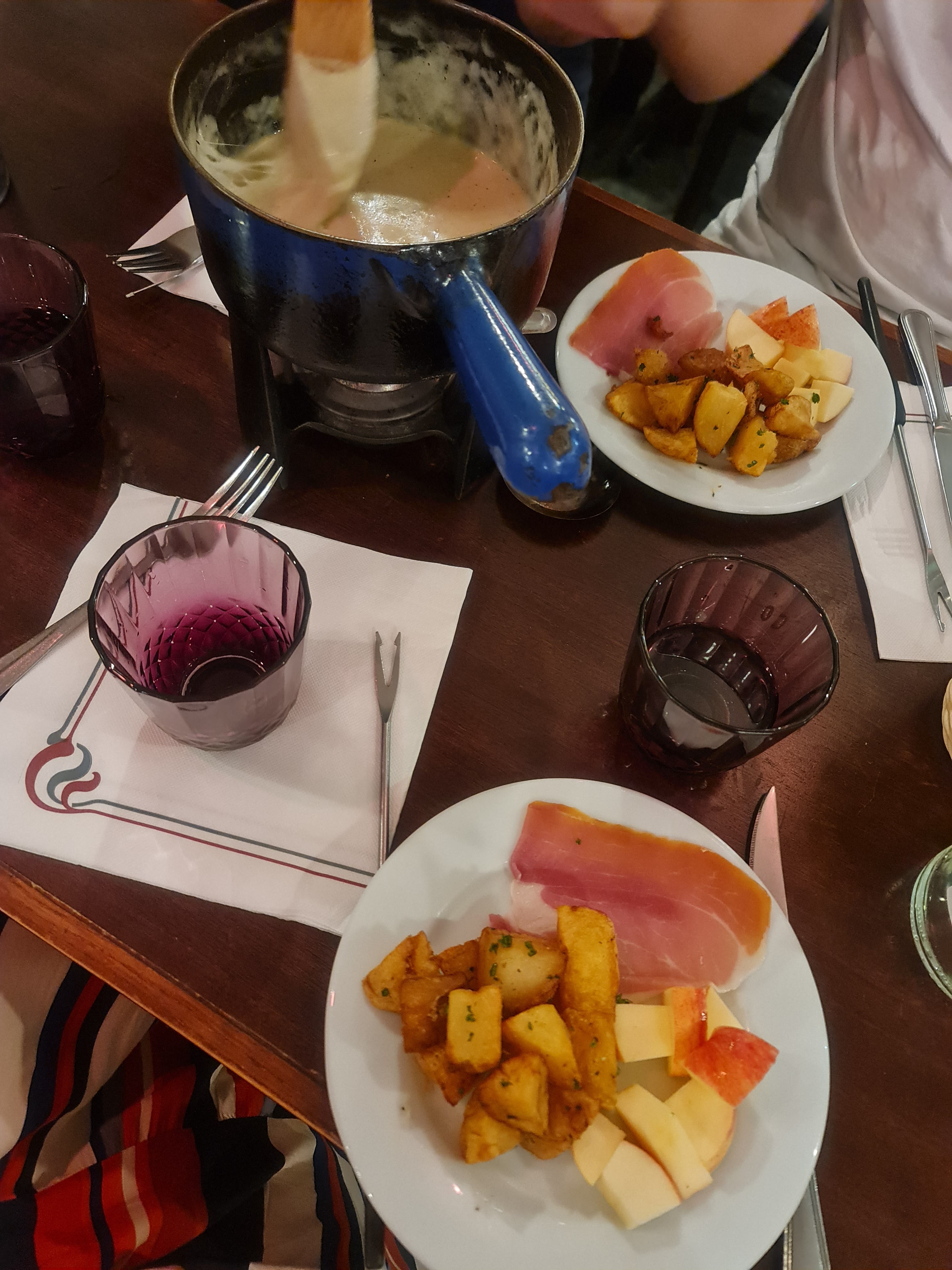 Fondue savoyarde savoureuse 🤤 Quartier touristique donc beaucoup de touristes logique… mais tant pis j’aime trop la fondue ! Vin pas terrible par contre..