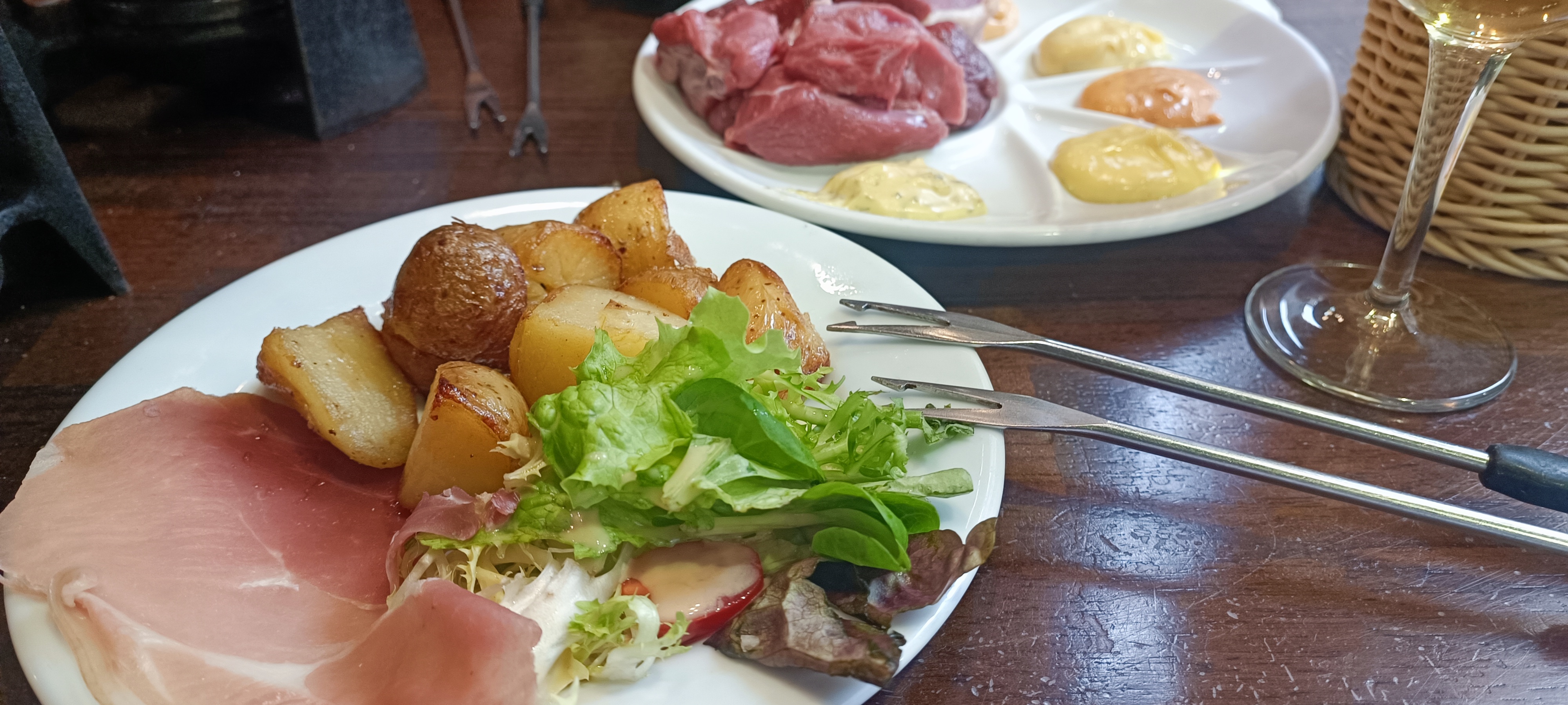 La fondue bourguignonne était vraiment très bonne. J'ai vraiment apprécié. La qualité par rapport au prix et à la position est très bonne. Bravo!