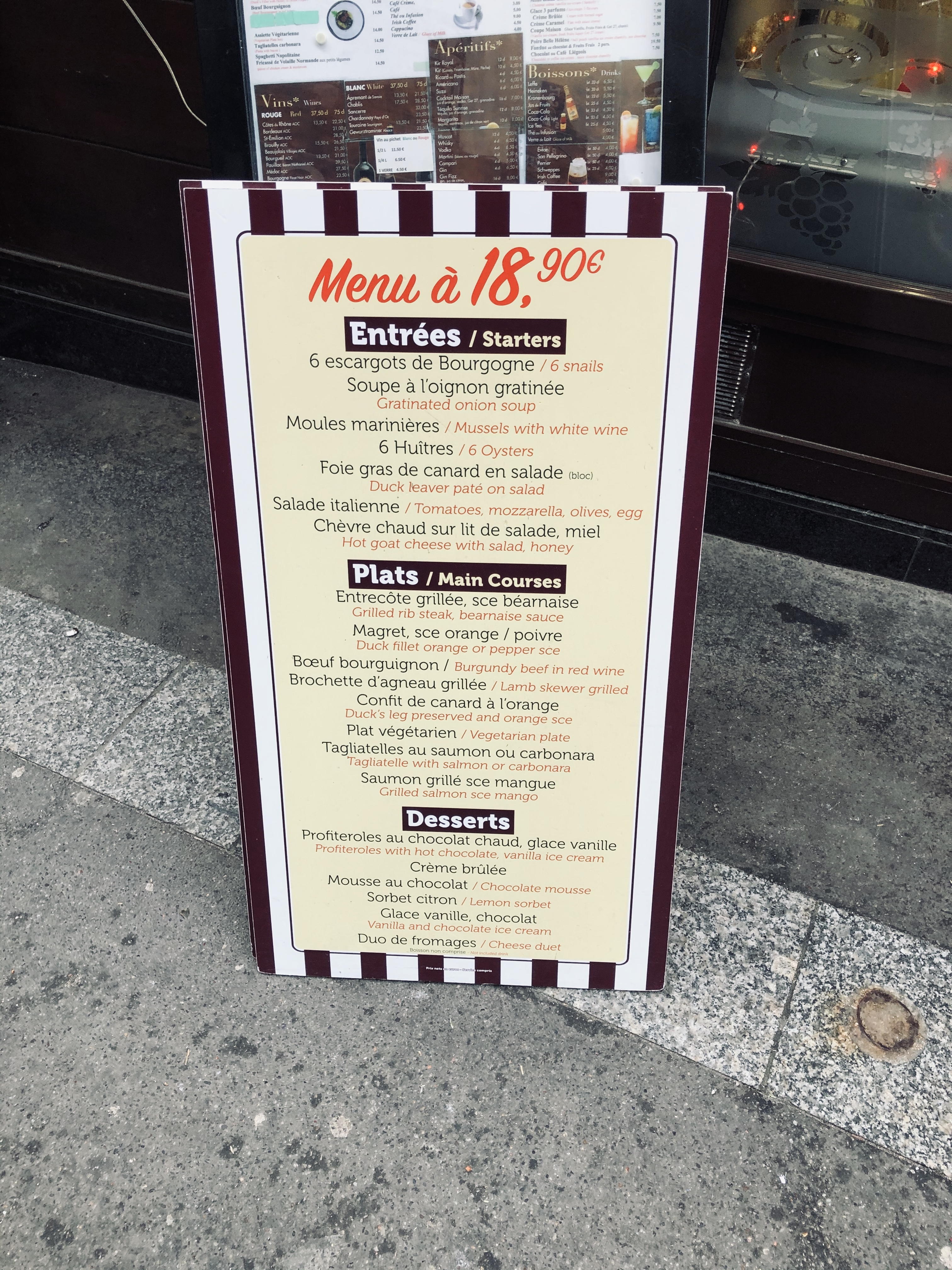 En seulement 2 ans, le menu est passé de 18,90 (entrée, plat, dessert) à 29,90 (boisson, plat, dessert). Je pense que c'est trop de changement. Le scargot est génial et les serveurs peuvent comprendre l'anglais.