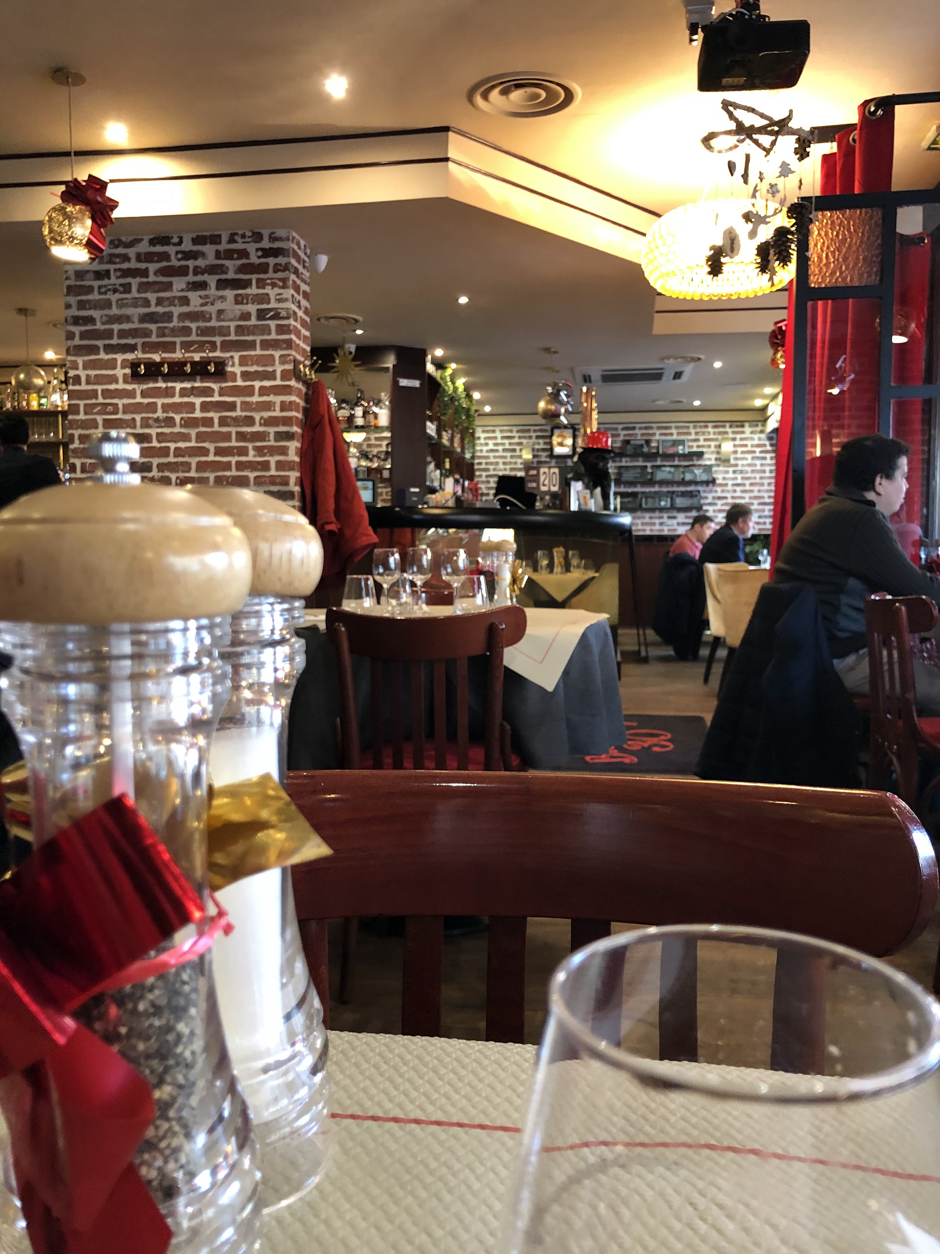 Escargots tièdes, on a eu froid ( placés à droite au fond en rentrant) à côté d'une porte fenêtre pas isolée . Il y avait un radiateur électrique de rajouté mais il ne chauffait rien. Le Ribs de boeuf pas terrible. Dommage on mange fréquemment dans ce restaurant et habituellement c'est plutôt bien.