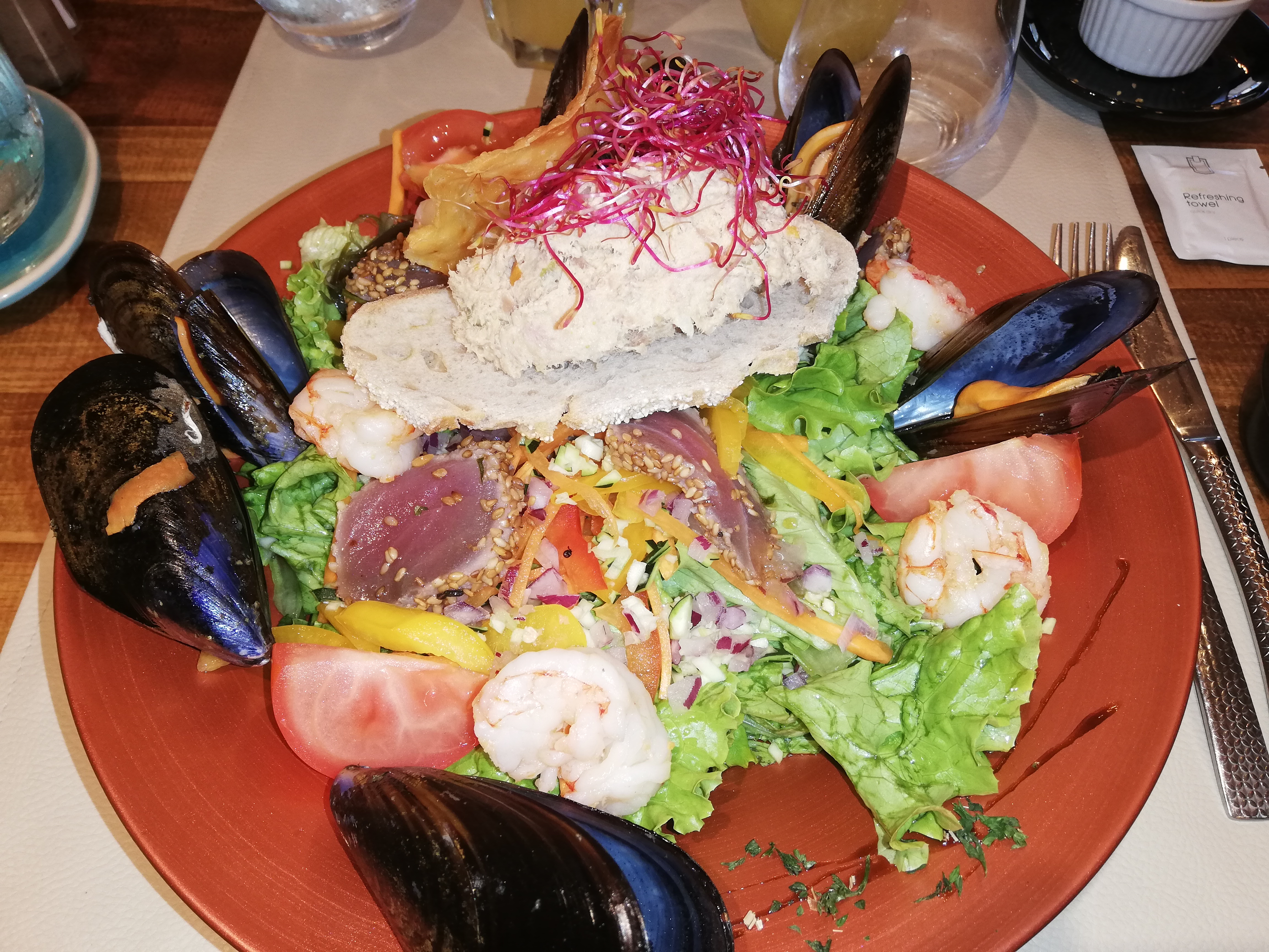 L'accueil est très chaleureux, les plats délicieux ( les moules & gambas sauce safran et la brochette gambas thon ) et l'ambiance du resto salle et musique très agréables. Nous reviendrons c'est sûr 👍