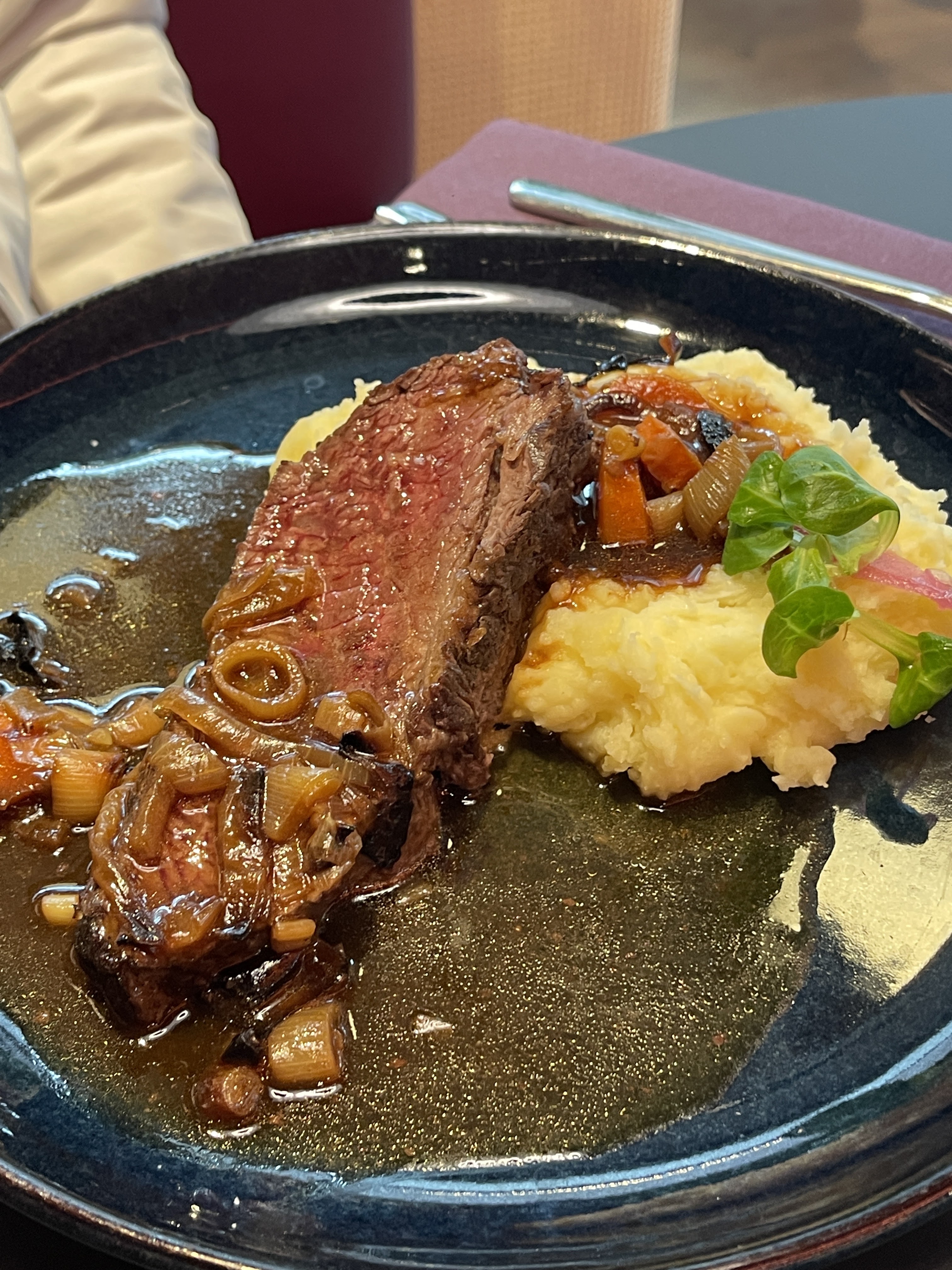 Salle agréable et service à l’avenant Pièce de bœuf maturée , correcte . En revanche le dessert ( Pavlova) était décevant. Bien loin de ce à quoi on peut s’attendre .
