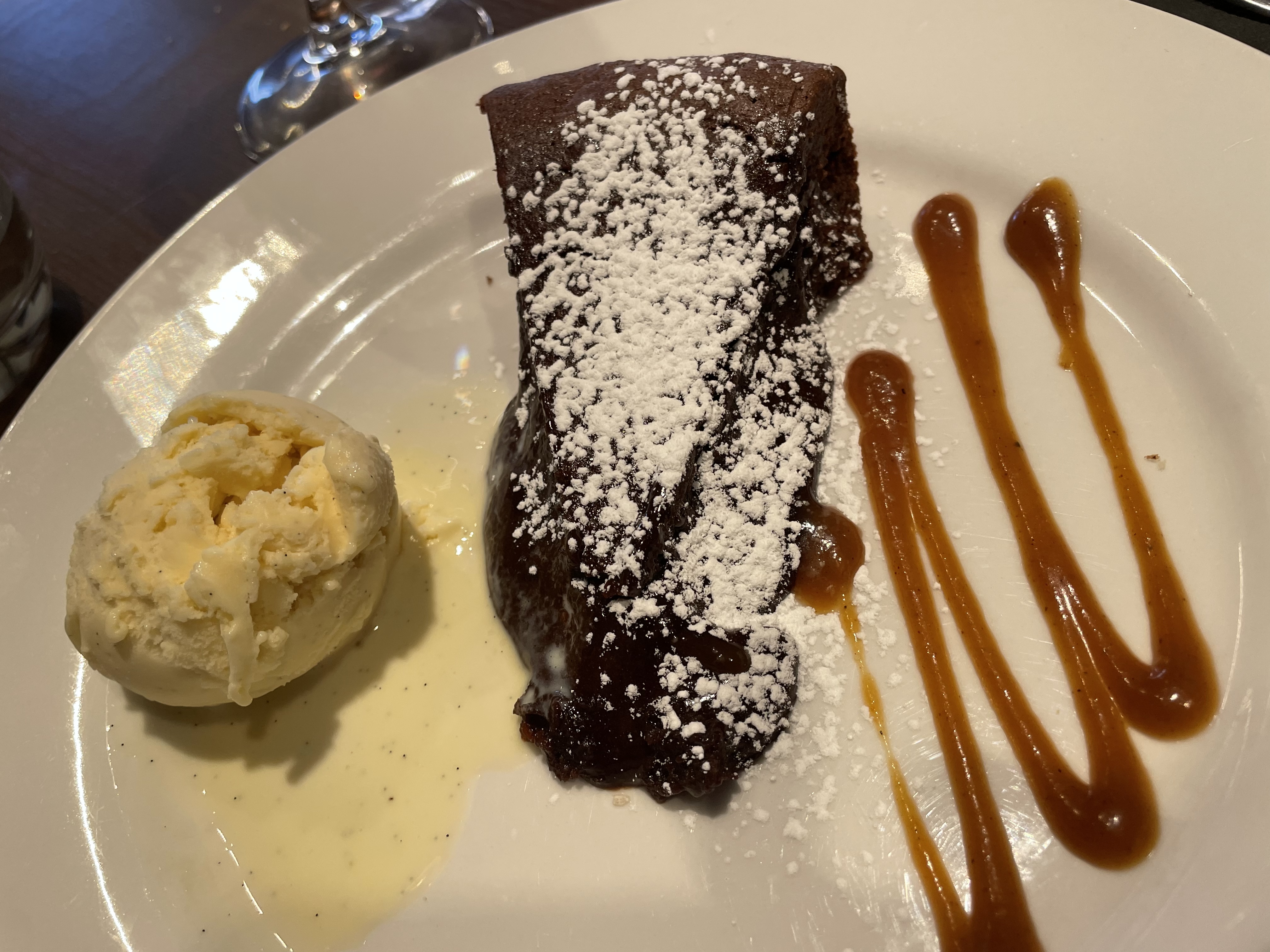 Cadre très sympathique. Bonne cuisine Petit bémol sur la cuisse de canard où un peu de sauce aurait été bienvenue mais j'ai adoré le croustillant. Et le fondant... Huuuummmm ! Comme je les aime !