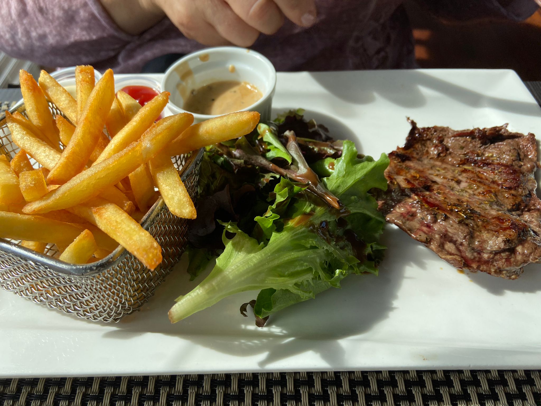 Nous avons passé un très agréable moment, avec un beau soleil et une très belle vue mais surtout nous nous sommes régalés. Merci au serveur qui était plutôt sympa.