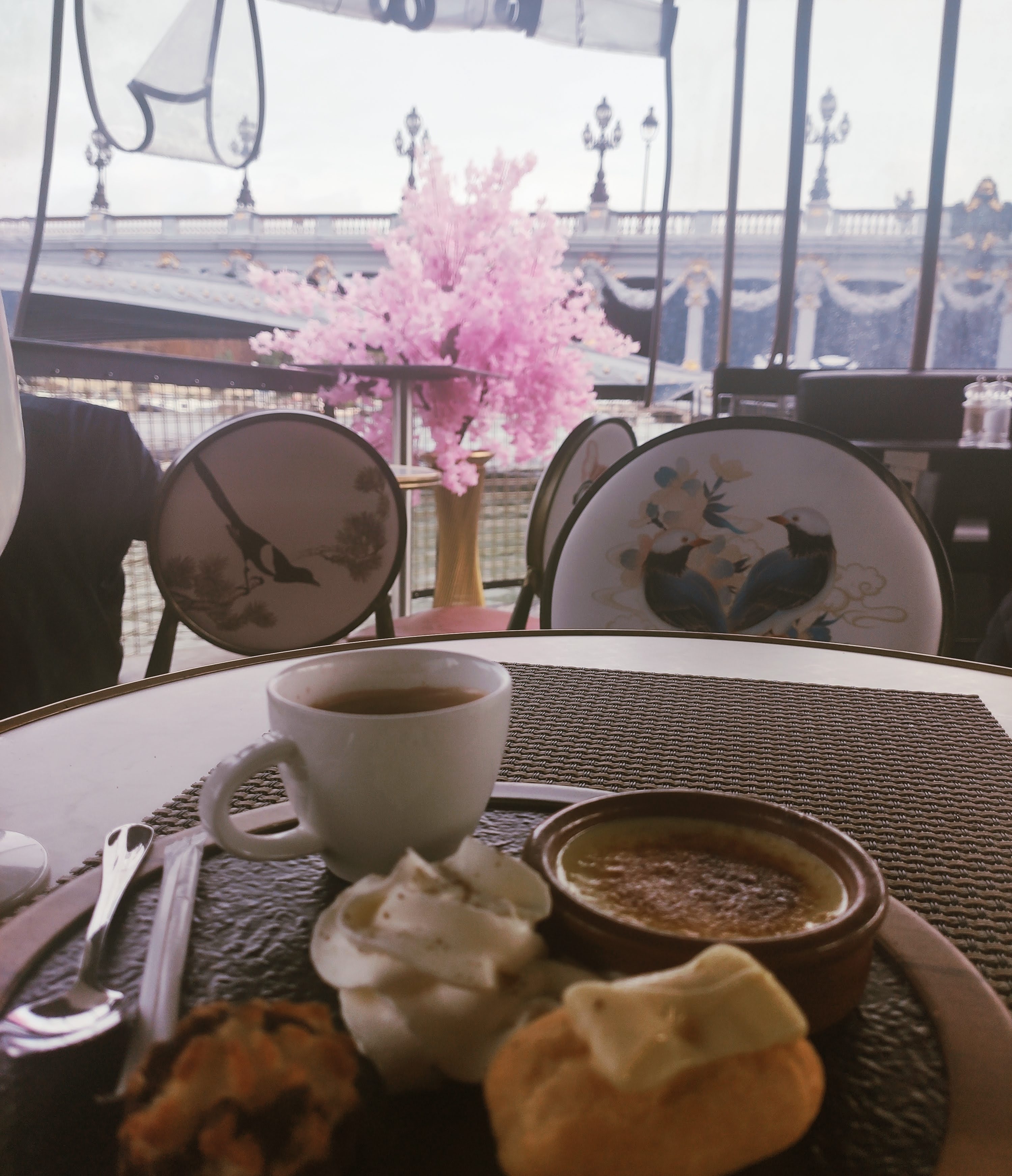 Nous avons profité d'un verre en terrasse avec une superbe vue sur le pont Alexandre III.