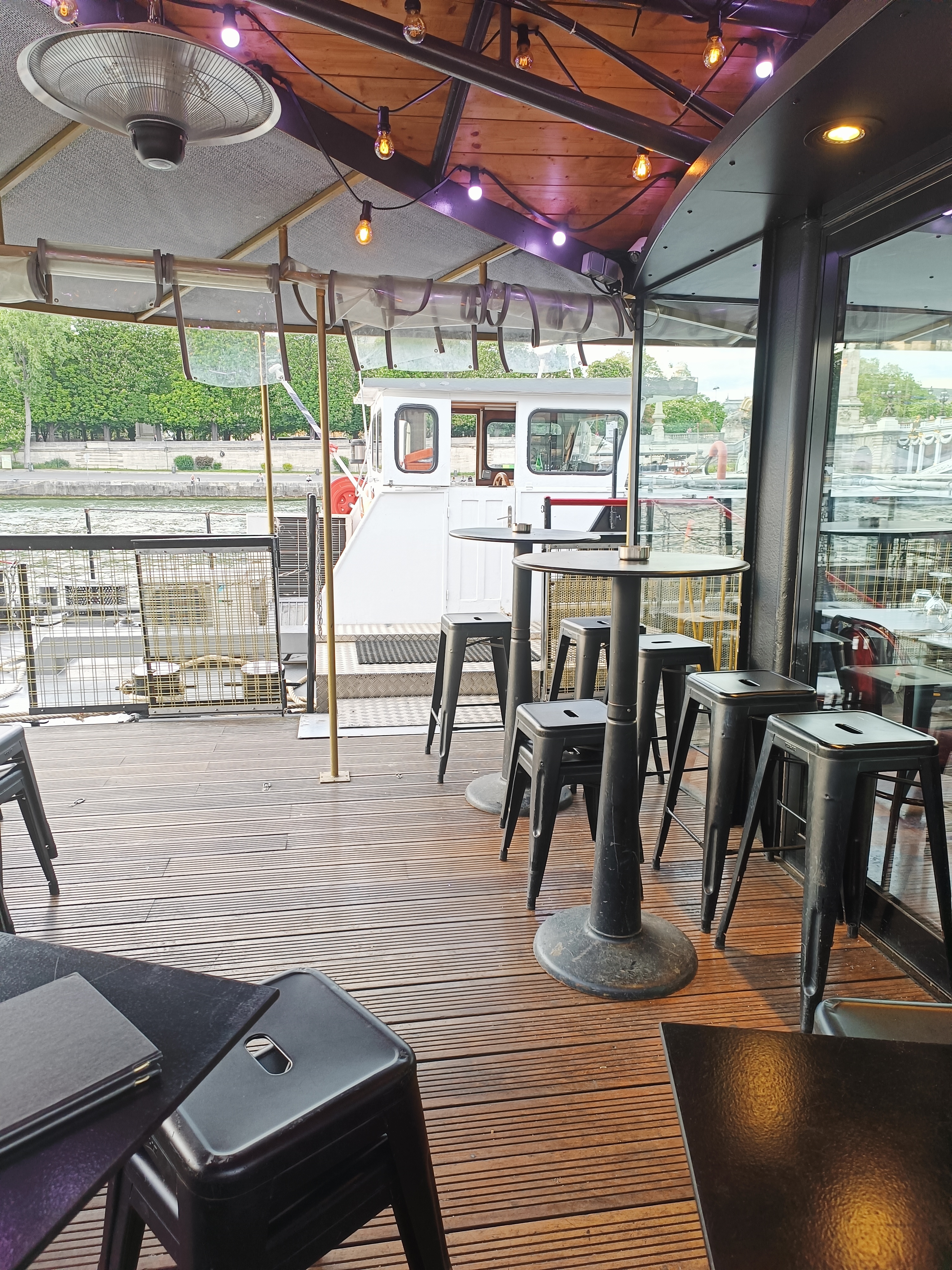 Un beau bistrot localisé sur une péniche le long de la seine. La localisation et la vue y sont atypiques et très jolies, l'expérience immanquable mais la qualité des plats, la qualité de l'offre et les prix laissent à désirer. Un mauvais rapport qualité/prix à mon goût. Toutefois, l'ambiance y est chaleureuse et le personnel très accueillant. Une expérience à rééditer avec une cuisine plus raffinée.