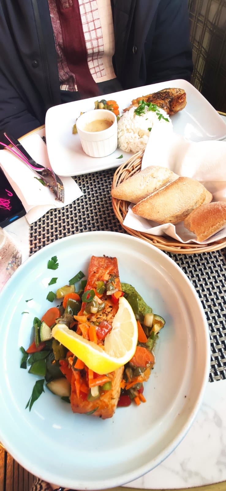✓ Points positifs : • Les plats étaient succulents😋 • Service rapide👌 • Belle décoration 🤩 ✓ Points négatifs: • L'accueil n'était pas du tout chaleureux. • Prix exorbitants. • Ne répondent jamais aux appels téléphoniques. • Les chaises ainsi que les tables ne sont pas du tout confortables. ✓ Conseils : Il faut cependant faire un petit effort au niveau des verres et des carafes d'eau.☺️