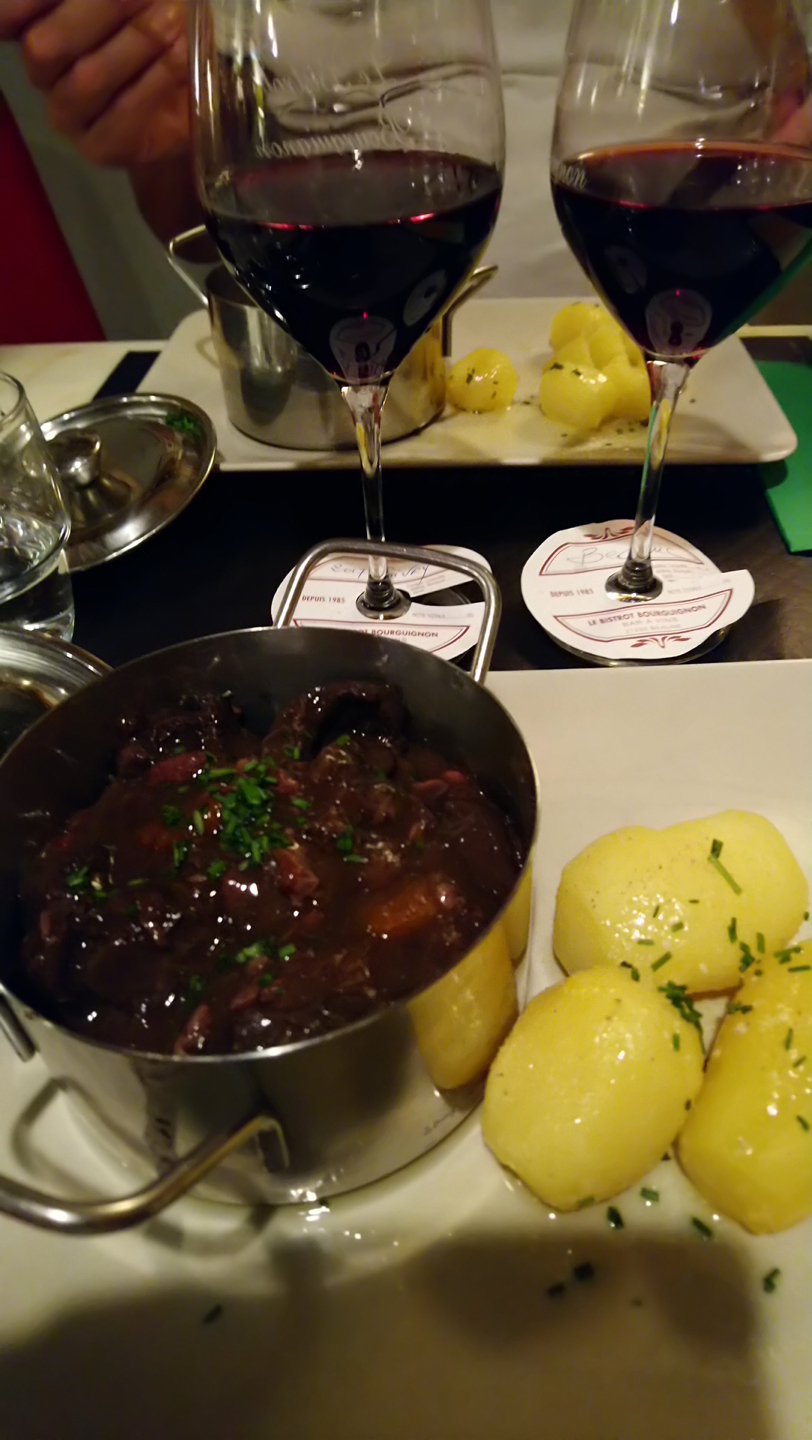 Un restaurant de qualité tant bien au niveau de la cuisine, du service et de la rapidité. Nous avons été étonné de découvrir un menu à 30€ comprenant entrée, plat et formage ou dessert. Menu que nous conseillons fortement avec un excellent rapport qualité prix. Nous avons choisi les œufs en meurette, bœuf bourguignon, et assortiment de 3 fromages. Le service est rapide, et les serveurs sont très agréables. Un plaisir de nous être arrêté au Bistrot Bourguignon !