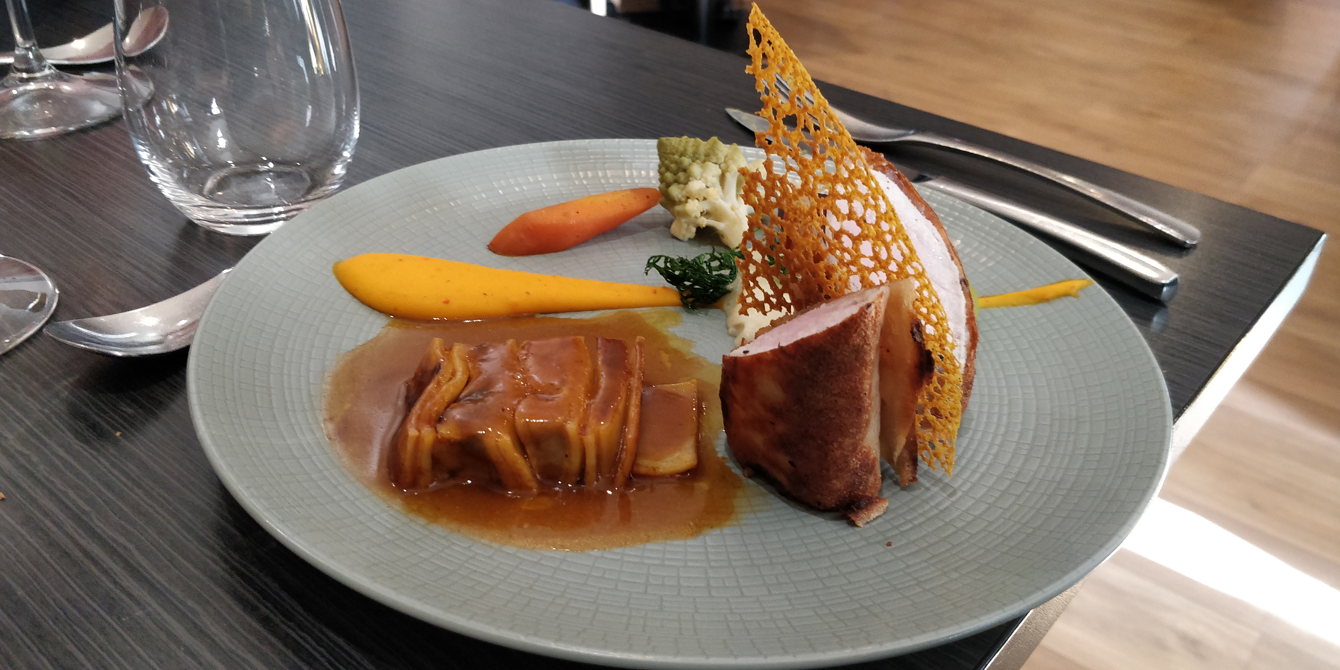 La cuisine du terroir comme on aime. L’agneau en trois façons et ses petits légumes nous ont régalé.