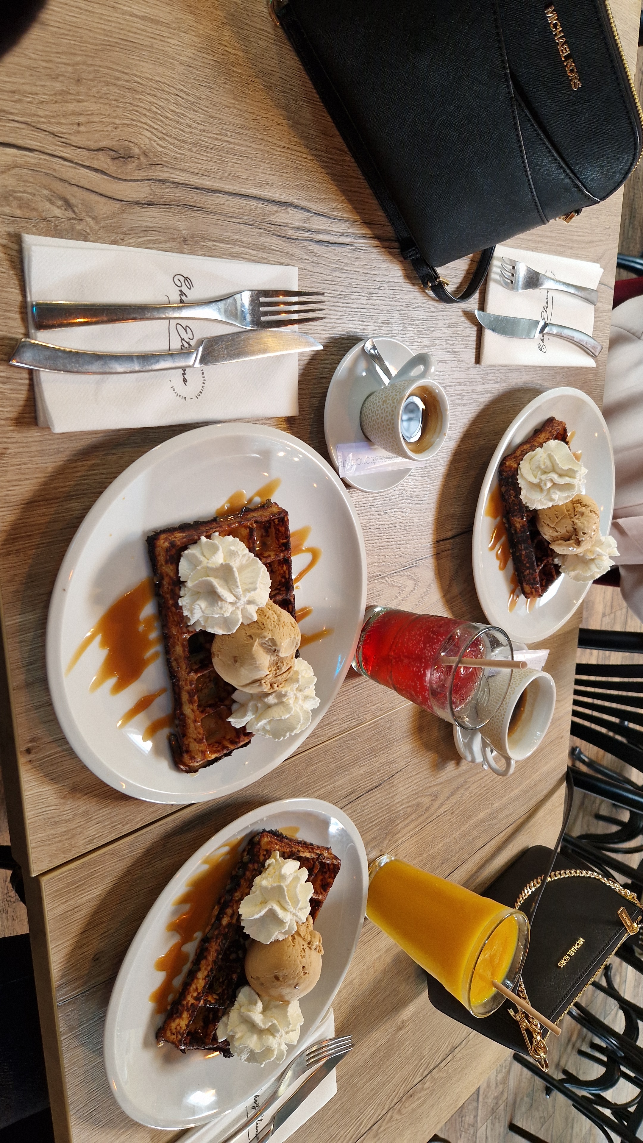 On a demandé des gaufres, on nous a dit que c’était pas possible puisque « la machine à gaufres n’est pas allumé » mon amie a appelé pour demander justement si c’était possible de manger des gaufres on nous a confirmé que c’était bien possible…