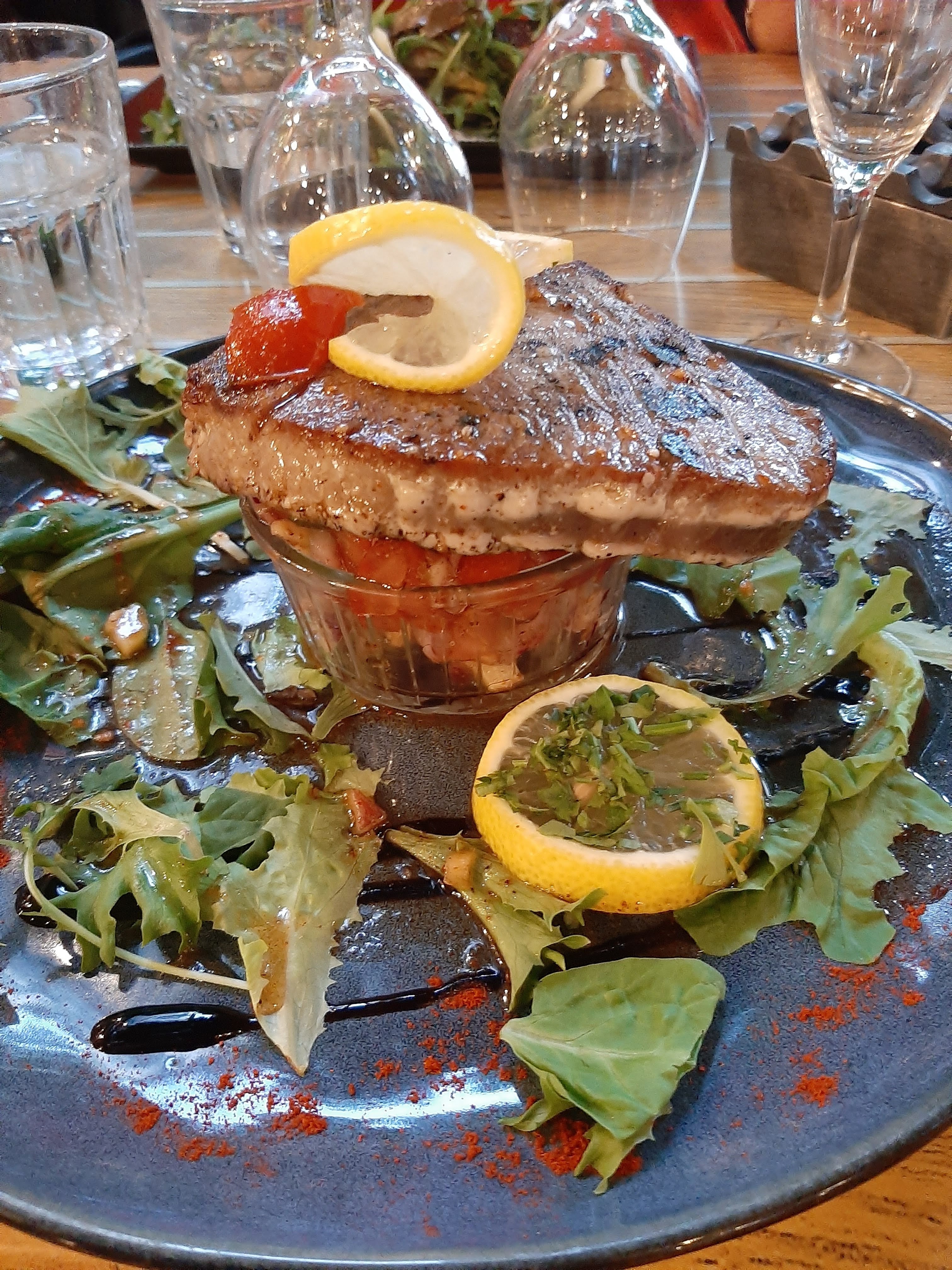 Une rėgalade, un thon mi cuit excellent, une croustade de pomme exquise, des profiteroles au top, un staff super pro malgré mes blagues à deux balles, bref un bon 5 étoiles.