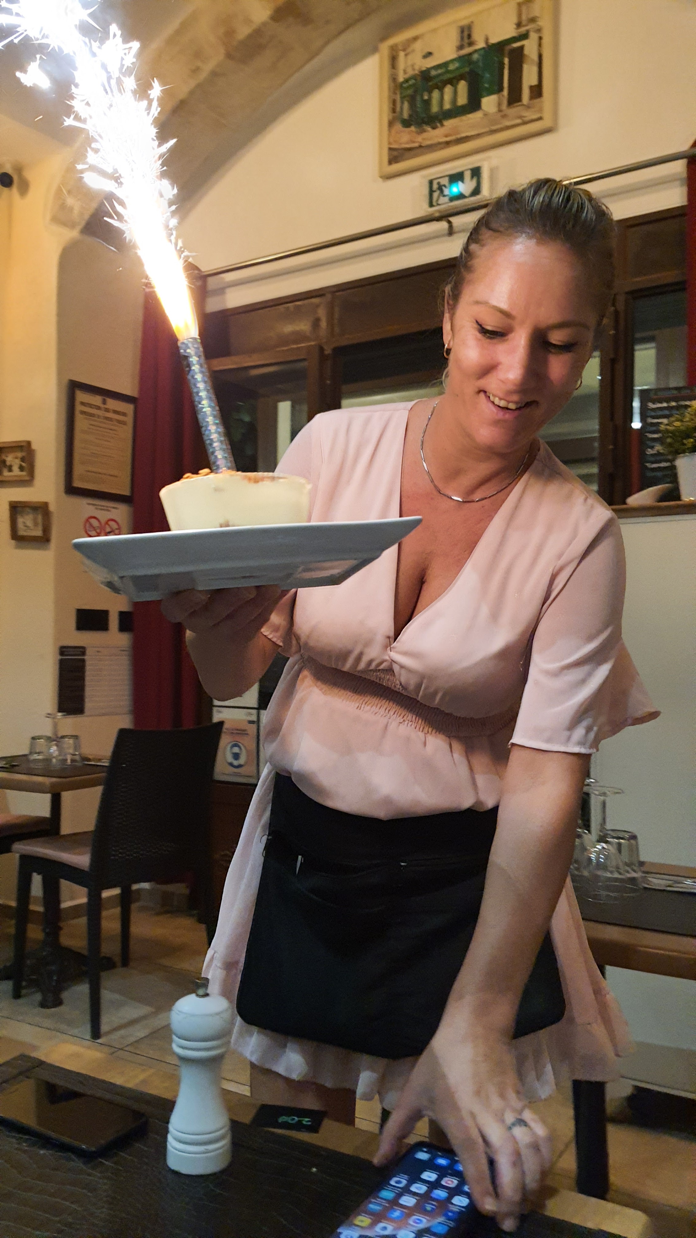 Super soirée d'anniversaire dans la salle voûtée, merci pour ce délicieux dîner fait maison servi par une équipe au top pour la reprise ! La serveuse a même fait changer l'assiette de ma fille qui n'aimait pas trop le burger 100% végétal car elle croyait qu'il y avait qd même du pain-bun... J'ai réservé ici car il y en a pour tous les goûts dans le menu. J'ai savouré le divin risotto truffé avec noix de St Jacques et adoré la croustade aux pommes avec glace caramel et ma bougie étincelante 🎆 Tout était très bon, nous reviendrons avec plaisir ! Un grand MERCI