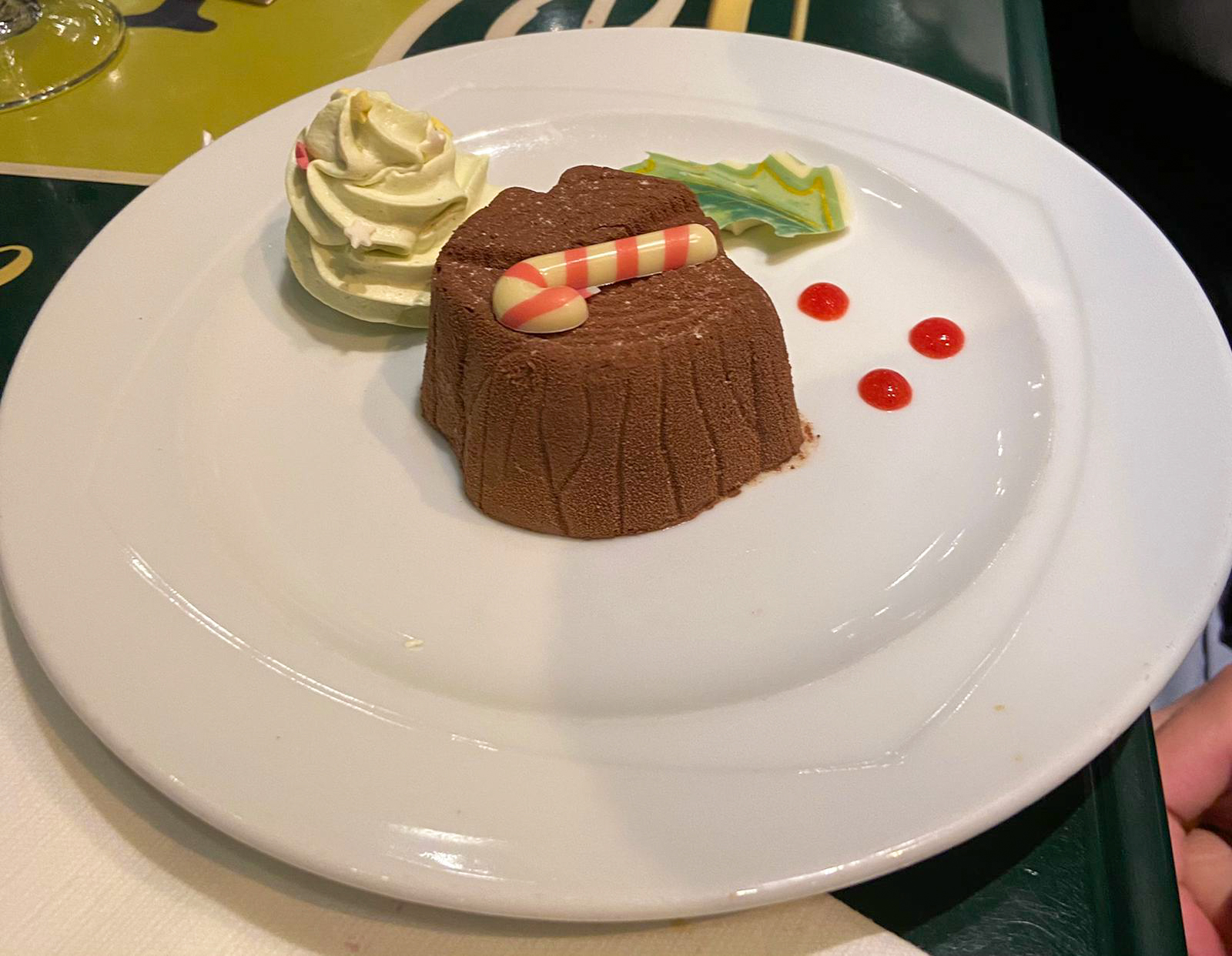 J’avais vraiment l’impression d’être dans le film Ratatouille, en train de dîner avec les amis de Rémy, une expérience incroyable pour me rappeler des souvenirs d’enfance. Surtout, y dîner tôt après l'attraction Ratatouille a ajouté la touche finale délicieuse. J’ai commandé un menu Rémy (entrée + plat) et un menu Emile (entrée + plat + dessert). J'ai eu une salade avec une entrée d'œuf poché, une ratatouille à la morue (la sauce était super) et un gâteau au chocolat. Tous les choix étaient bons !