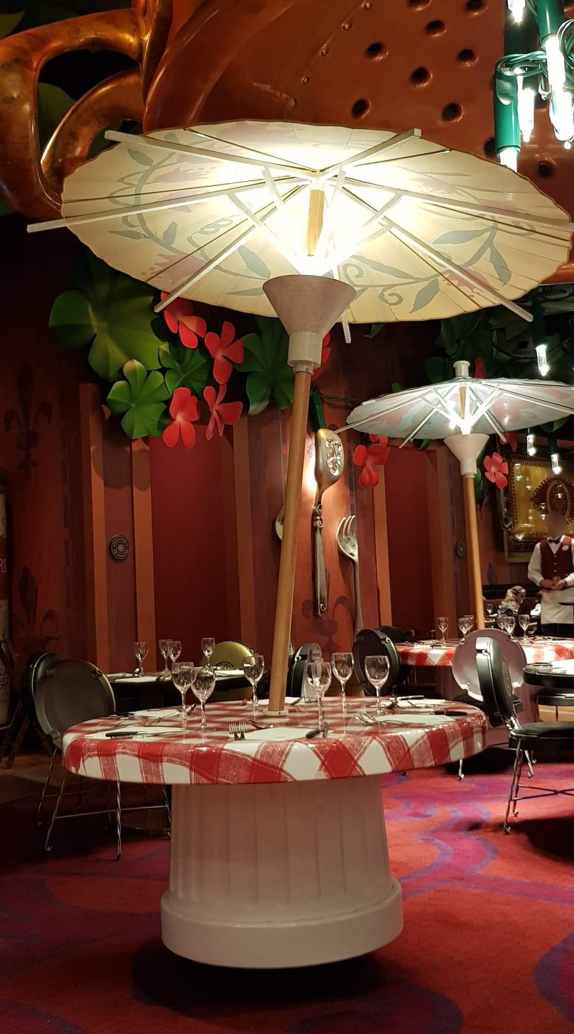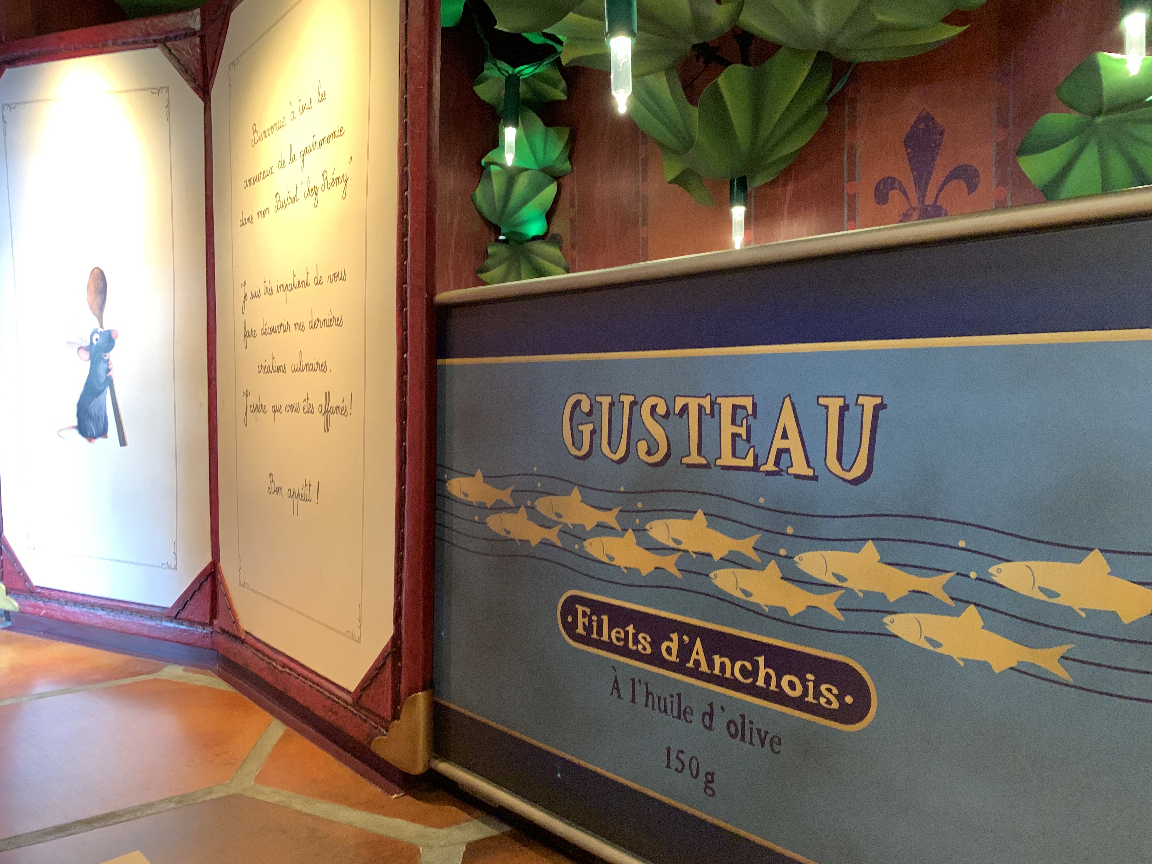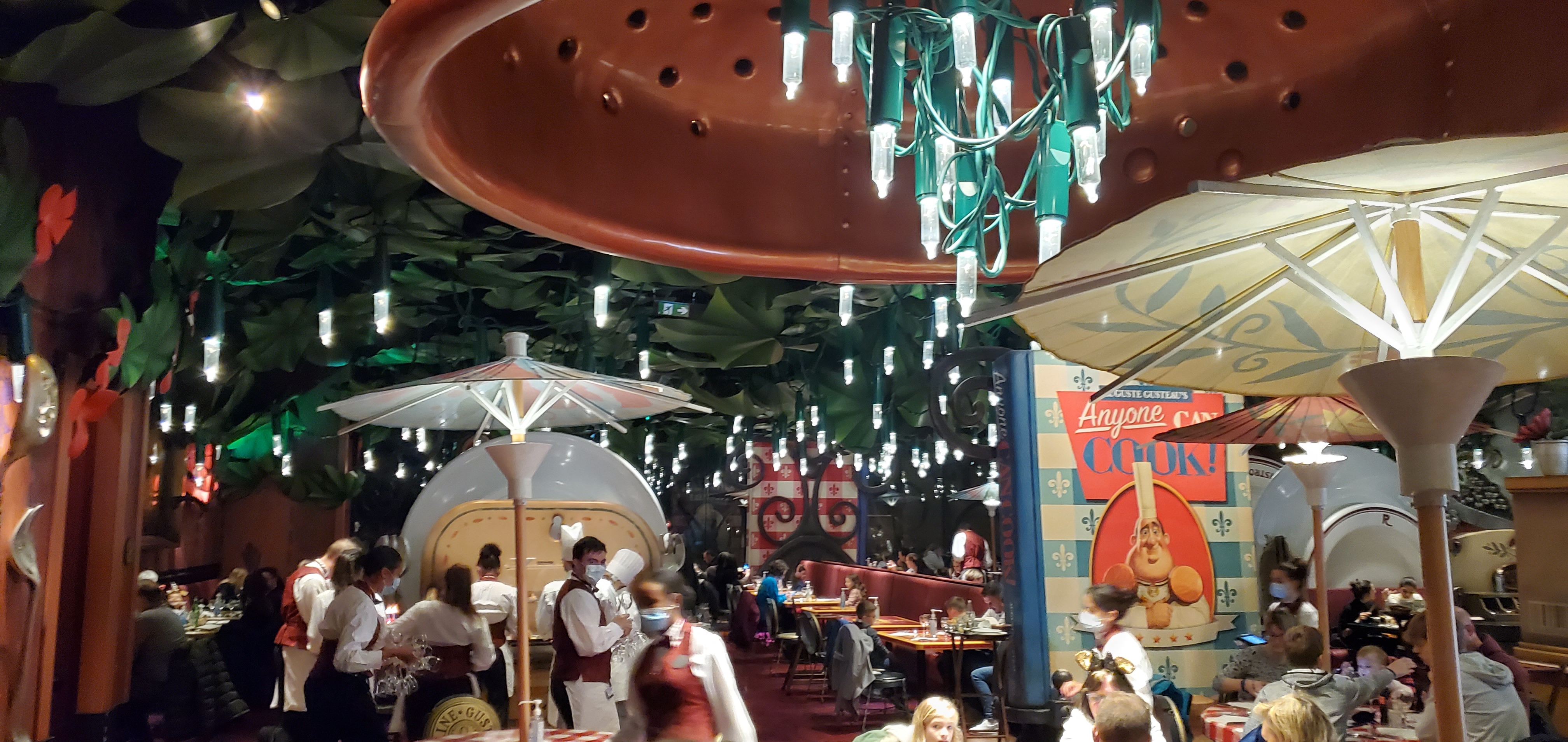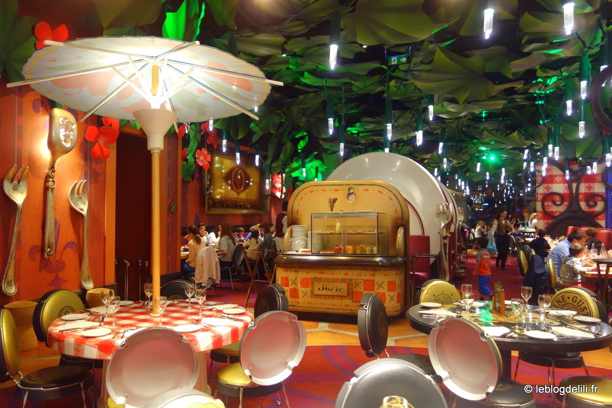 A peine arrivé, vous voilà réduit à la taille du fameux Rémy et tout ce qui vous entoure devient donc gigantesque. Le décor est très réussi et poussé dans les moindres détails. Évidemment, nous y avons très bien mangé mais avoir un menu équilibré ailleurs que dans les fast-foods du parc a malheureusement un prix donc prévoyez le budget auparavant. Le personnel est souriant, le service rapide. Sur réservation uniquement.