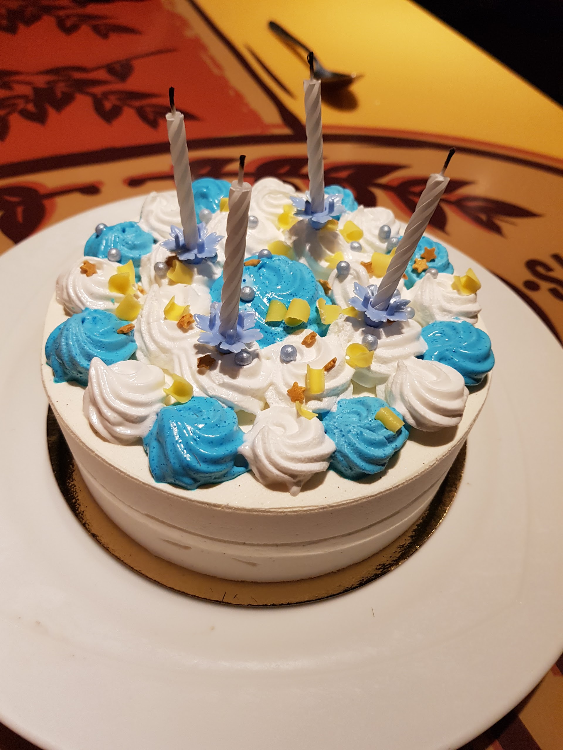 Le décor excellent, accueil au top, les plats Nikel en quantité suffisante et la surprise du gâteau anniversaire géniale et au couleur des 30ans. Disney c'est dans le détail. ( les chaises, tables, éclairage.) Bon petit bémol les toilettes un petit peu inondé et capteur très très réactif pour la chasse d'eau.