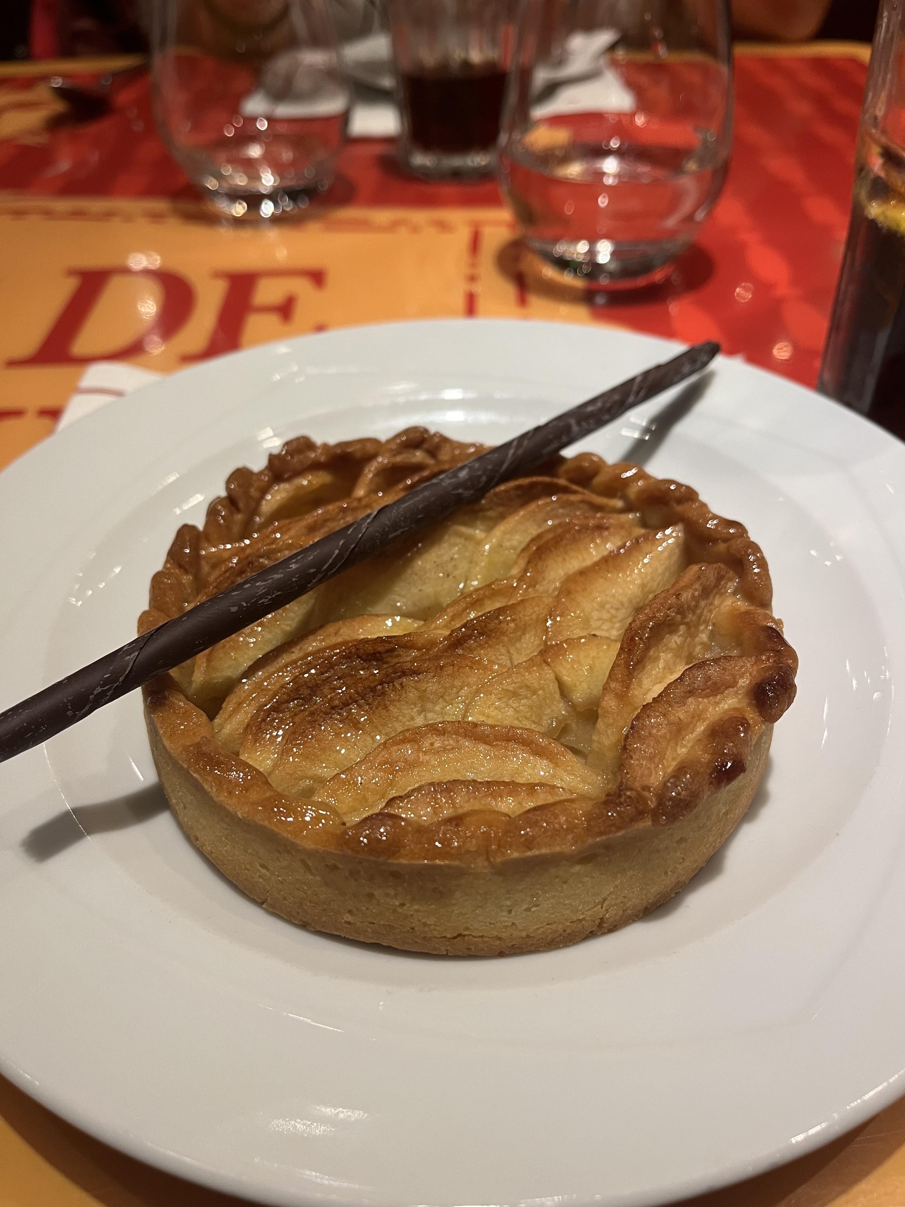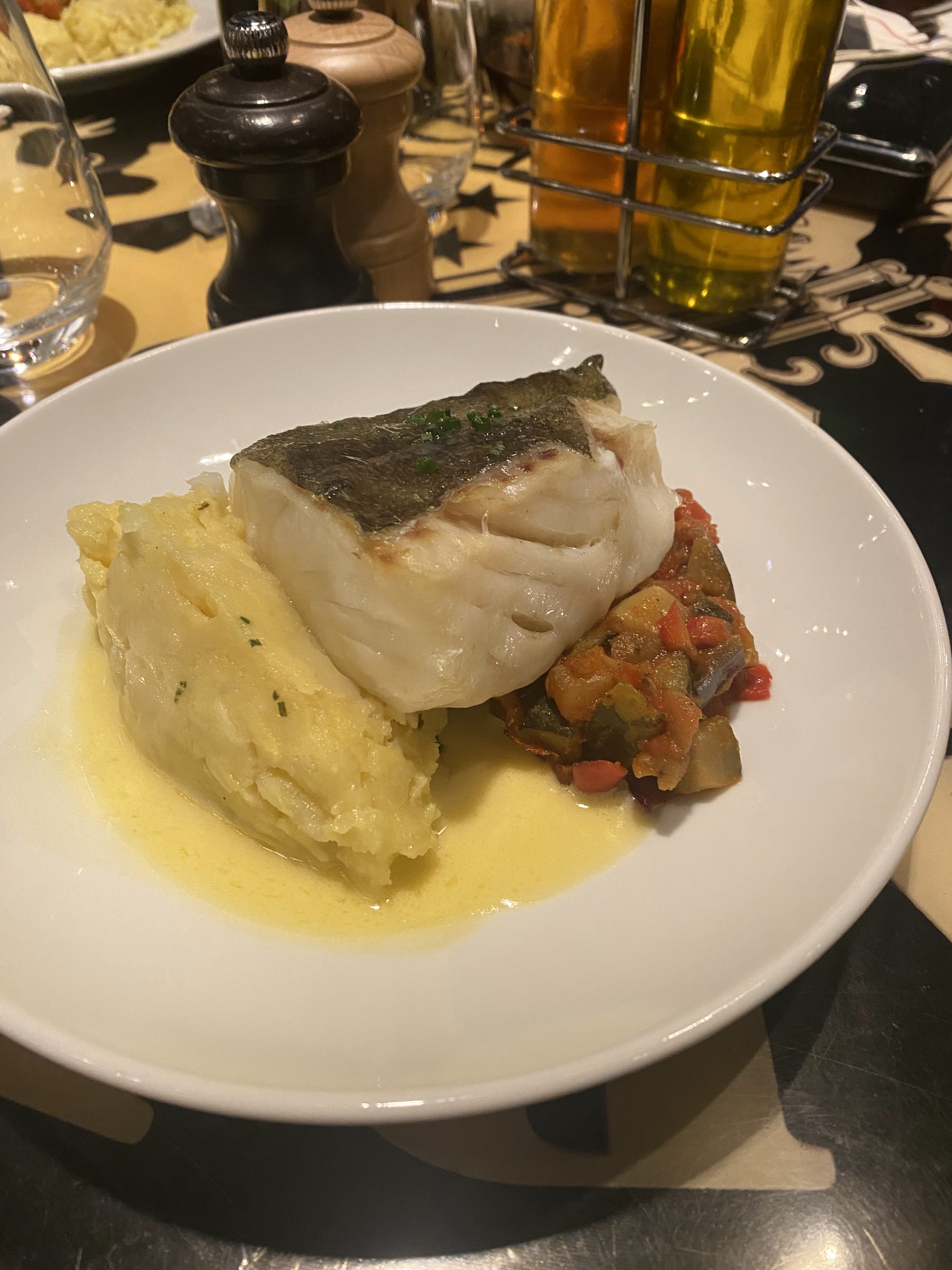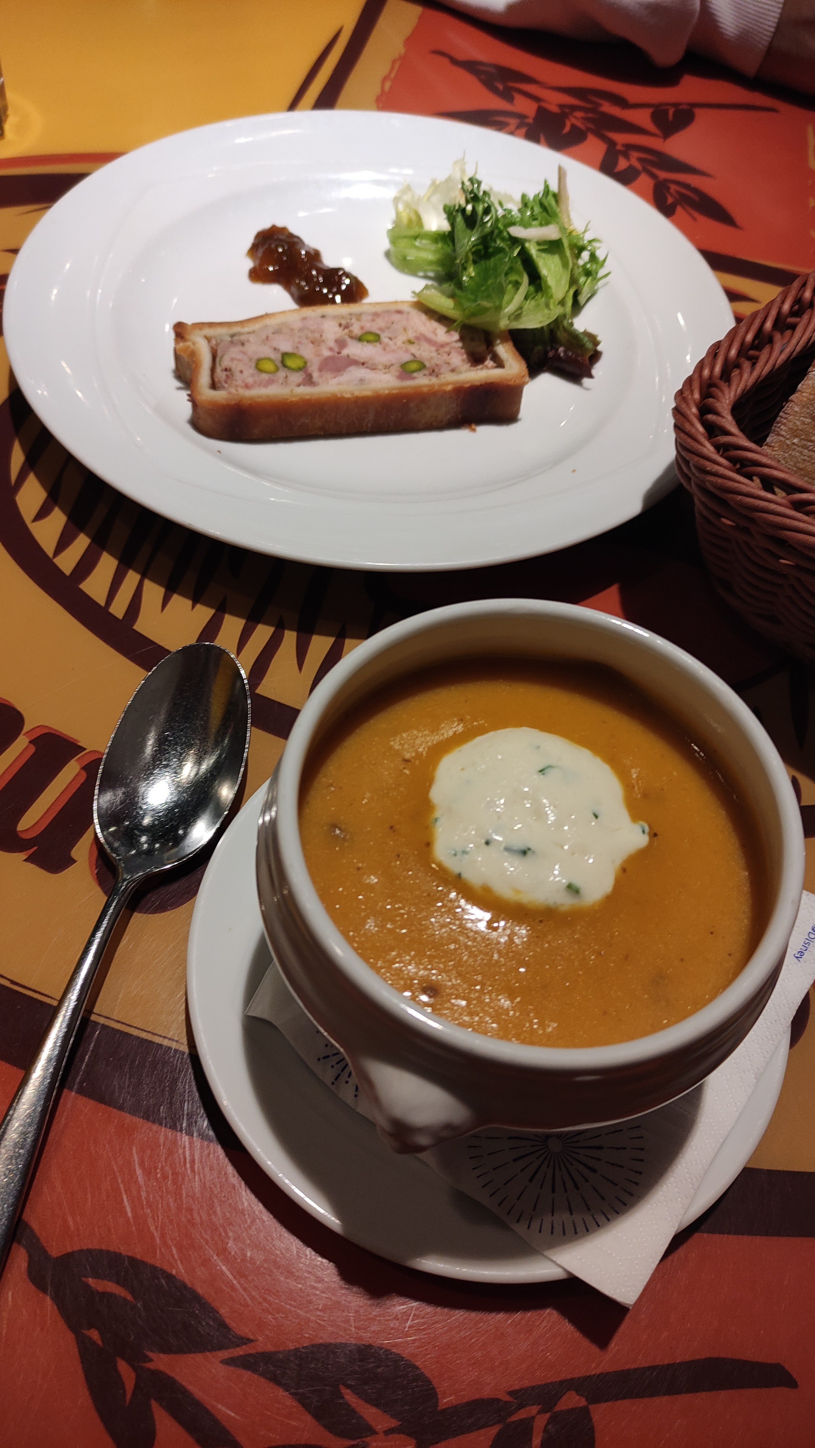 Quelle belle expérience culinaire. Notre hôtesse était extrêmement gentille et courtoise. Nous avons commandé deux repas composés d'une entrée et d'un plat principal. Ma femme a eu le pâté en croûte et le steak avec sauce béarnaise et j'ai eu la soupe et la morue rôtie. Les côtés pour les deux avaient Ratatouille bien sûr 😊. Le dessert était un gâteau d'anniversaire que ma femme et moi avons partagé. C'est bon pour 8 personnes alors assurez-vous de laisser de la place pour le dessert.