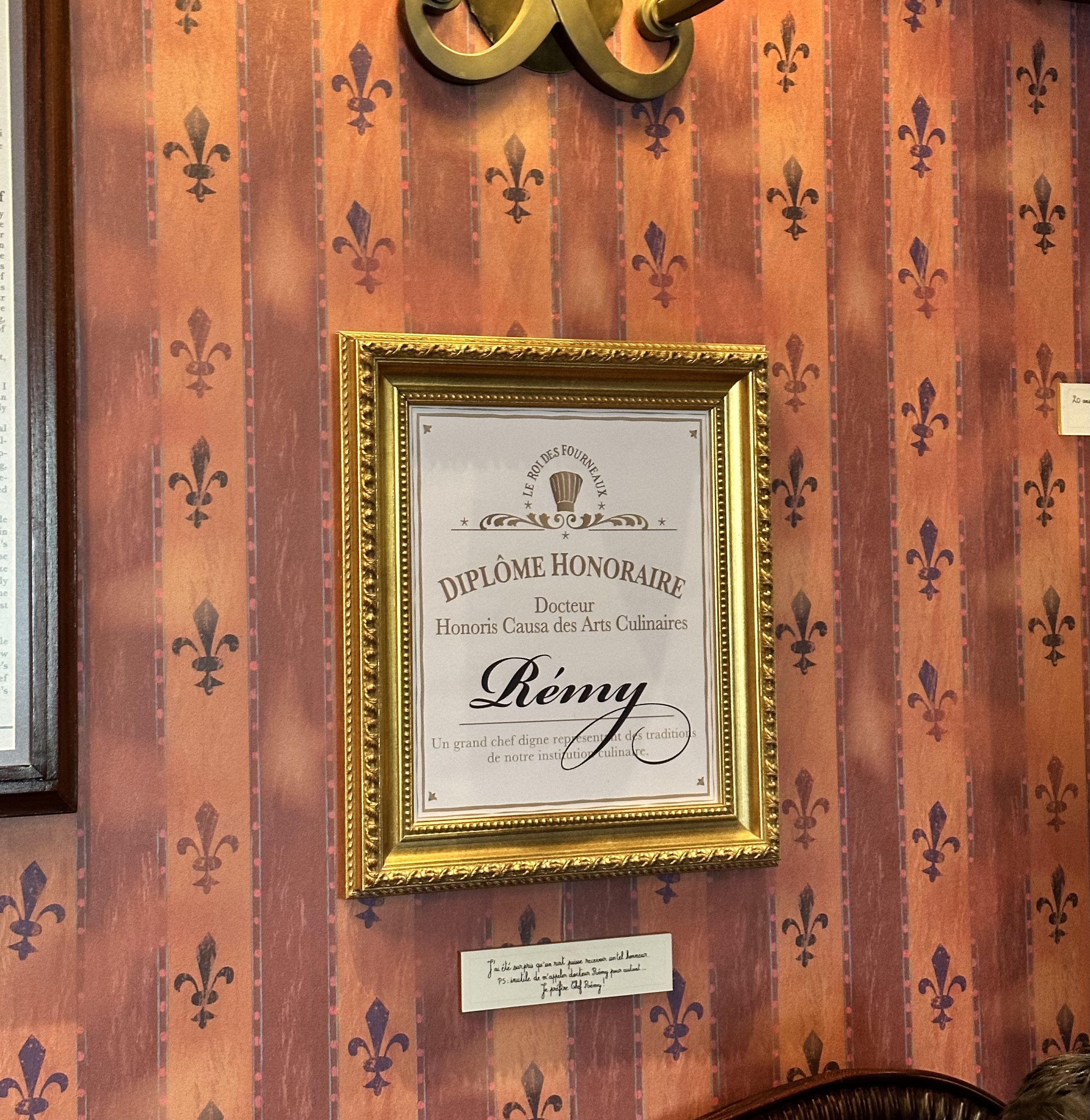 Une très belle expérience dans le restaurant du célèbre Remy de Ratatouille ! Il faut s y prendre à l’avance pour réserver mais cela vaut le détour. Décors originaux, service très agréable, tous les serveurs sont très à l’écoute et aux petits soins, on se sent parfaitement et chaleureusement accueillis. Un très bon point également pour la qualité de la nourriture. Tout était excellent, très bonne cuisine. Restaurant familial, assez coûteux néanmoins.