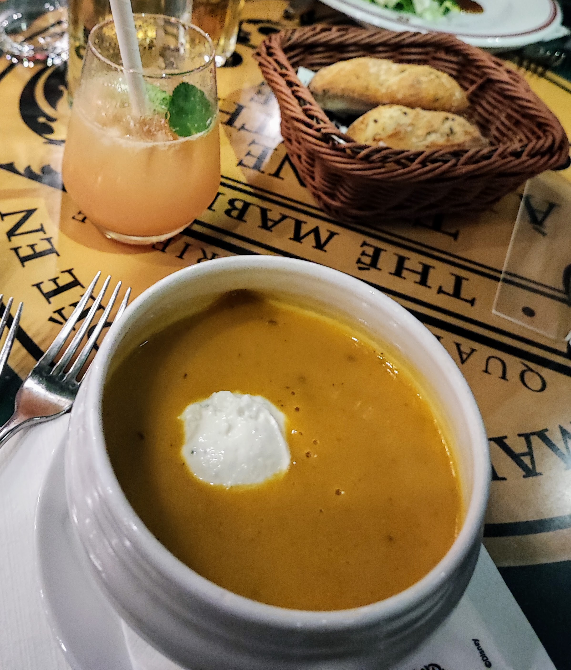 Accueil et service agréable, super ambiance, la nourriture est bonne sans pour autant être exceptionnel. J’ai adoré la soupe en entrée. Il faut bien avoir conscience que l’on y va avant tout pour l’ambiance et que les prix sont relativement chers pour des plats de bistrot.