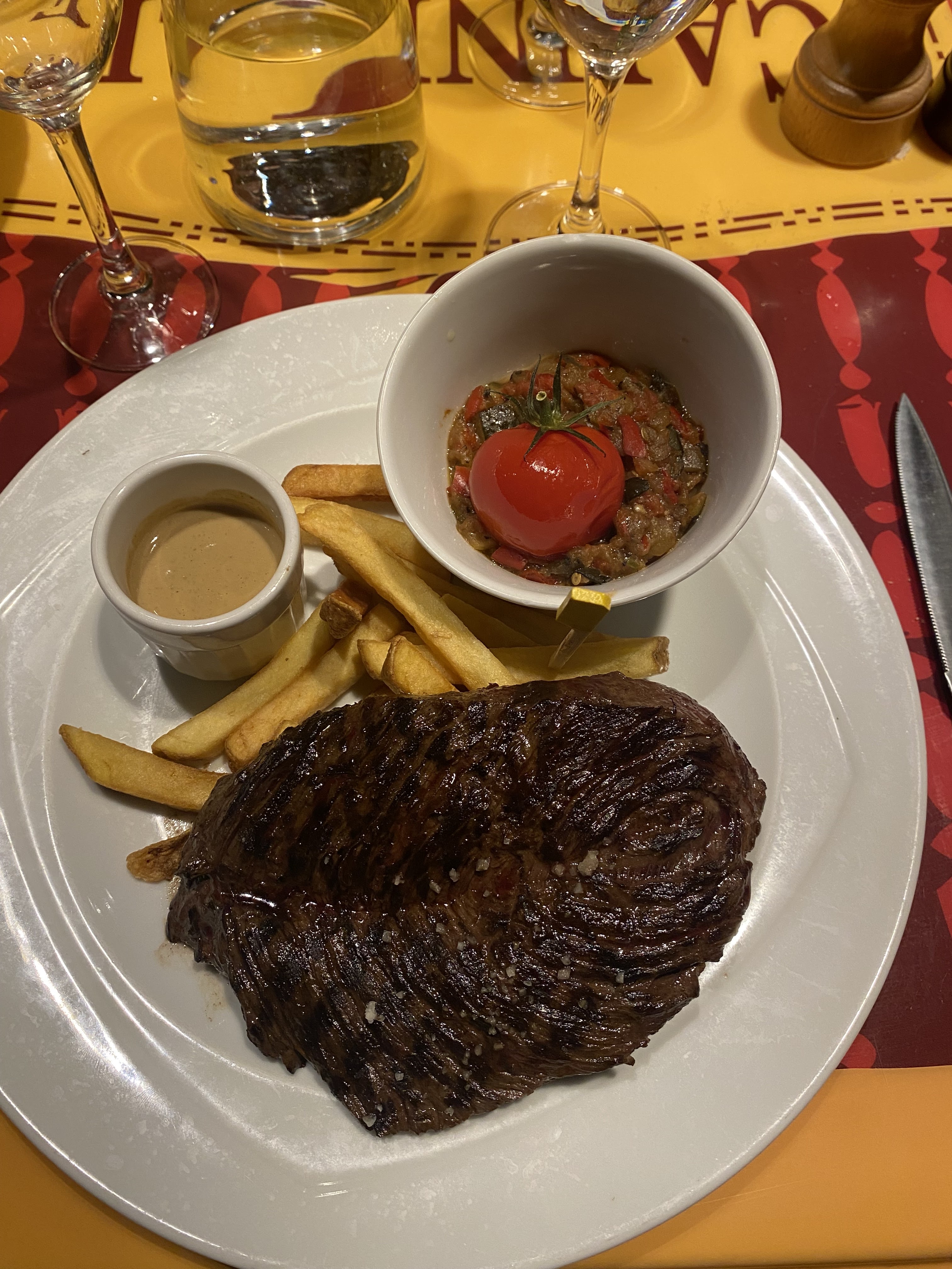 Coucou à tous Franchement c’est super bon la ratatouille est succulente la pièce de bœuf 🥩 de l’onglet très tendre et le service au top 👌