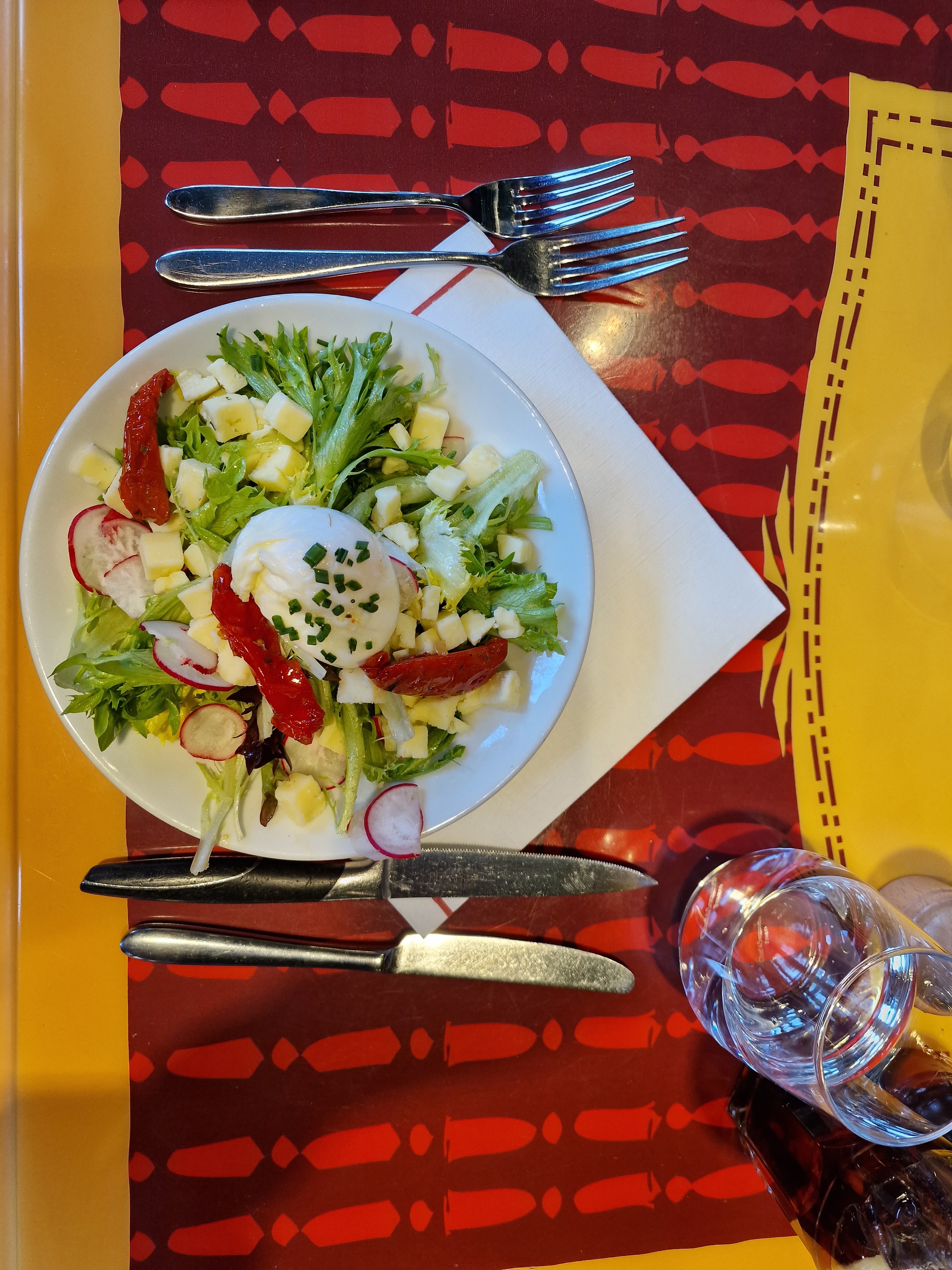 Entrées (soupe de saison, salade au cantal et tomates confites) et plats bons (poisson et écrasé de pommes de terre, suprême de poulet avec ratatouille et écrasé de pommes de terre). En revanche, les desserts sont à revoir, on aurait dit des produits surgelés (éclair et chou à la crème), et la salade de fruits n'était pas faite avec des fruits frais. Déco sympa.