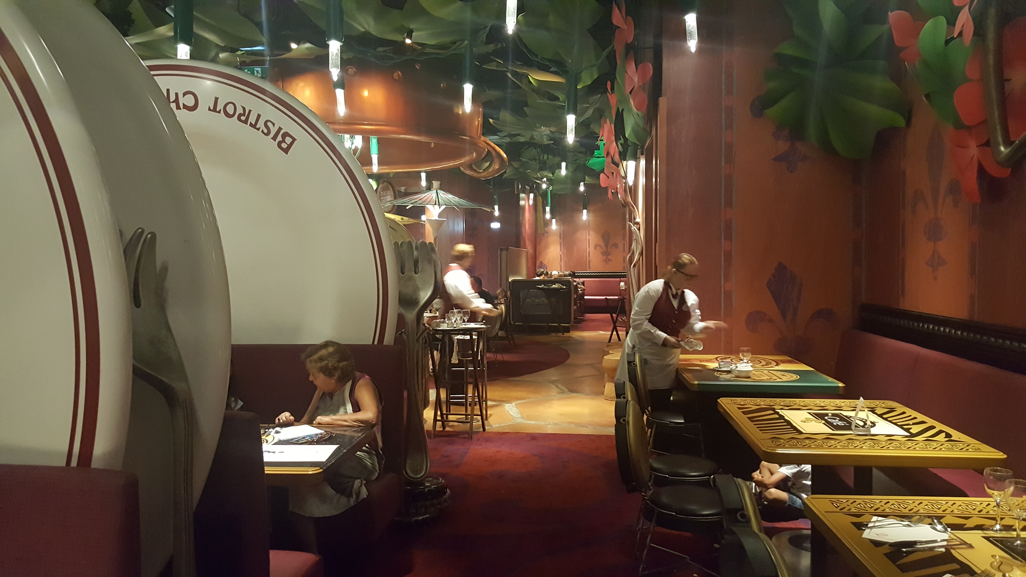Le cadre du restaurant est génial ! Un superbe concept. Personnellement j’y ai bien mangé, une cuisine qui peut paraitre simple parce que les plats proposés sont des plats français dont on à l’habitude, mais c’est Disneyland, ce n’est pas réservé qu’aux français ! Très bien accueillis et servis
