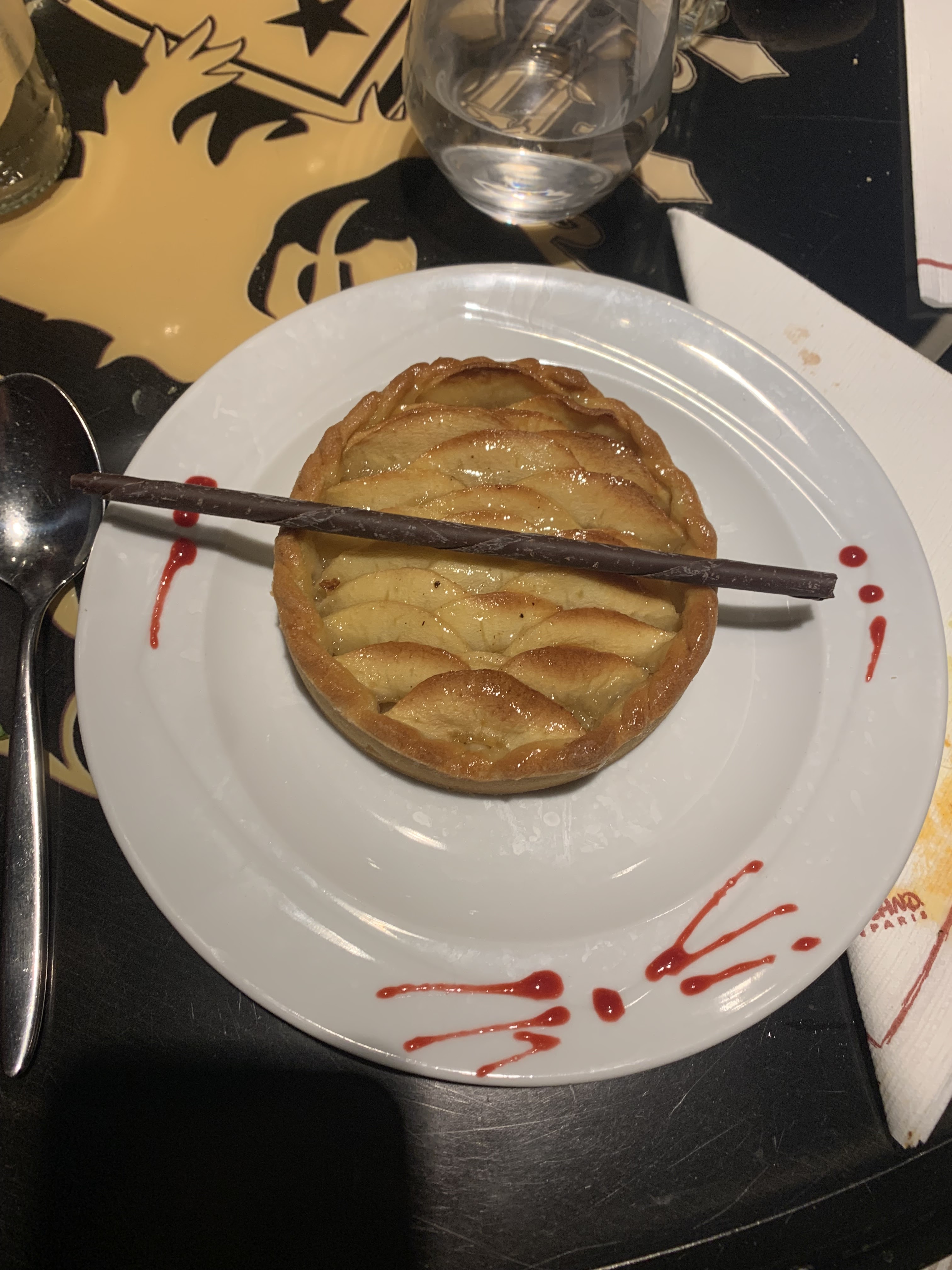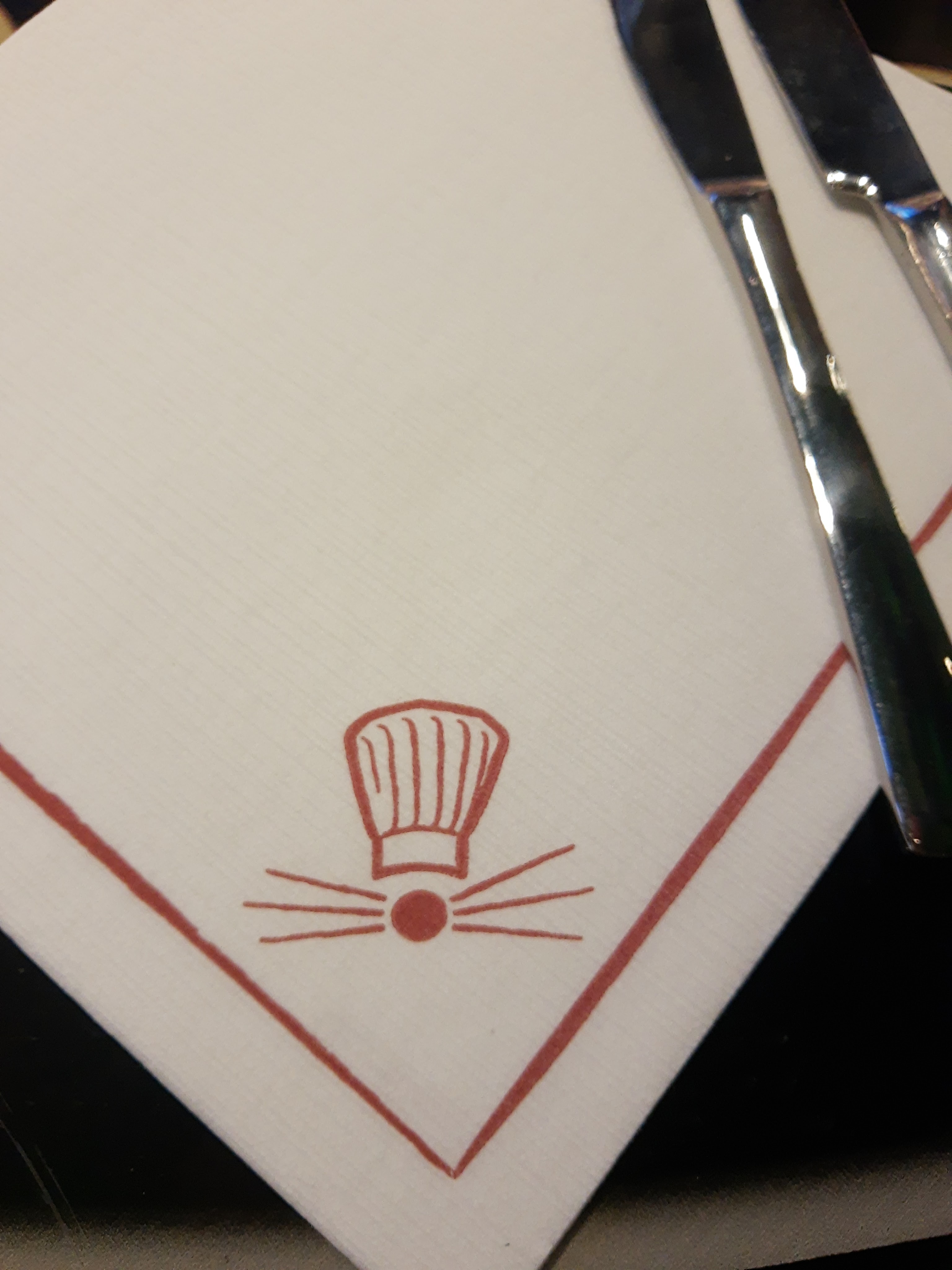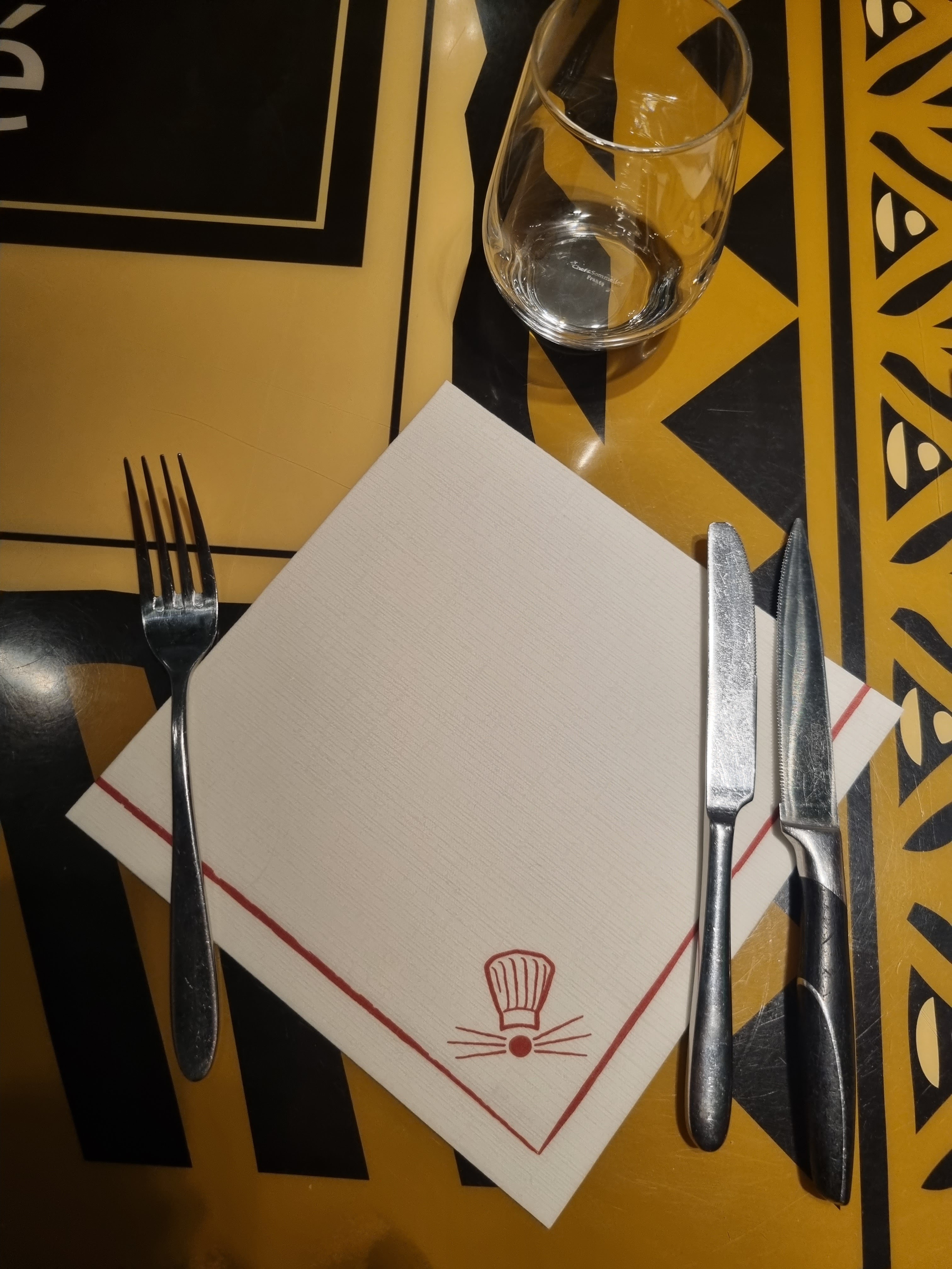J'y ai passé un très bon déjeuner : Atmosphère et décoration agréable, dans l'ambiance du film. J'ai particulièrement apprécié le clin d'œil fait grâce aux chaises (en forme de chaise en bouchon de champagne). Lumière tamisée / non agressive : parfait pour moi. Personnel accueillant et attentionné envers les clients. Je faisais partie des chanceux qui ont pu réserver en avance : je n'ai pas attendu avant d'être assise à table. J'y ai pris le paté en croûte de canard avec des pistaches et des trompettes; le filet de boeuf, sauce brie, frites et ratatouille et la tarte tatin avec sa crème. J'avais juste été un petit peu déçue par la pâte enrobant le paté (niveau texture) mais pour moi, le plat reste assez inhabituel et original pour que j'en garde un bon souvenir. Je suis ressortie repue !