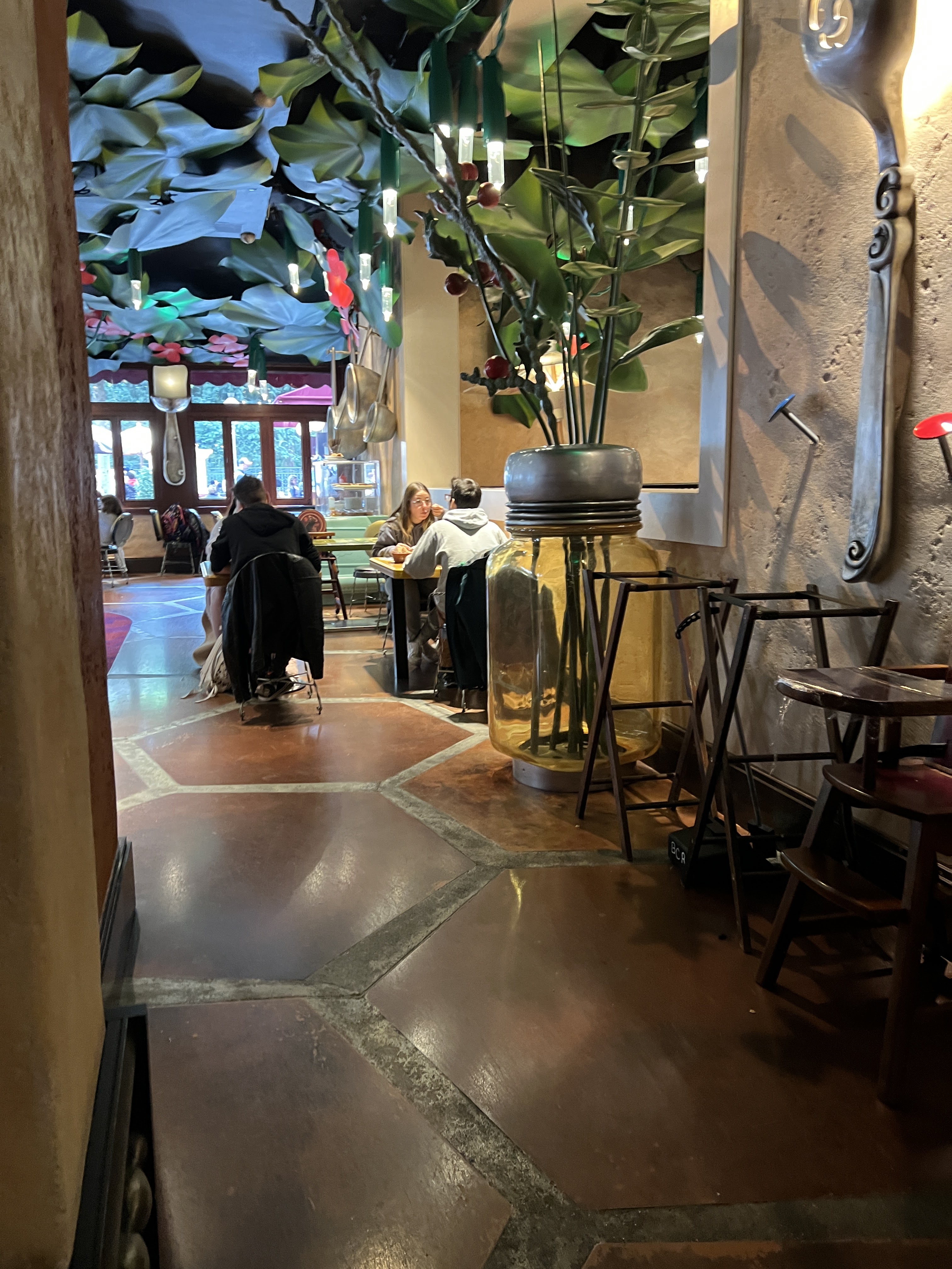 Cet endroit vous transporte vraiment dans le restaurant aux rats de Rémy du film Ratatouille ! Je vais être honnête, le menu actuel n'est pas génial. Cependant, les parcs à thème sont généralement créés pour le plaisir et l'ambiance, et non pour les repas gastronomiques. Pour le prix, la nourriture est comestible. Je recommande vivement d'amener vos enfants ou un grand groupe ici pour se détendre.