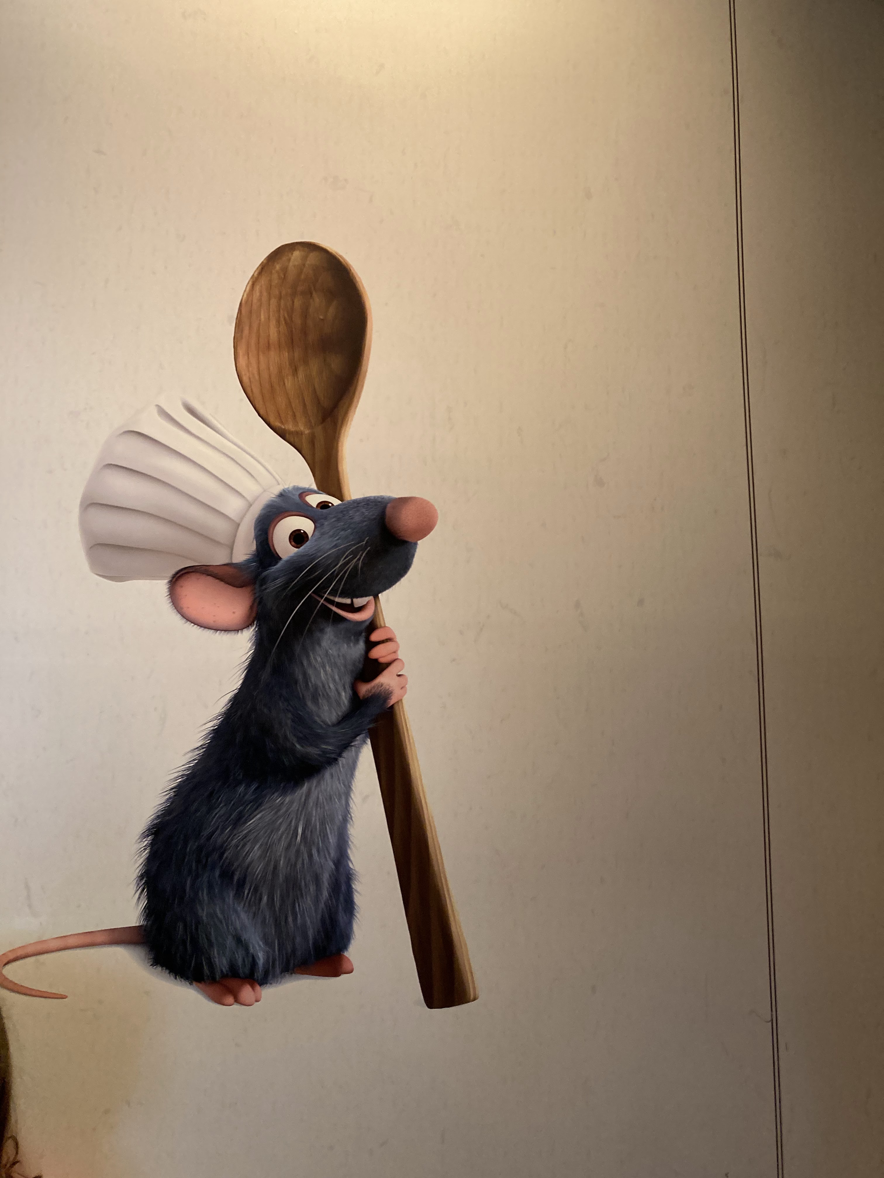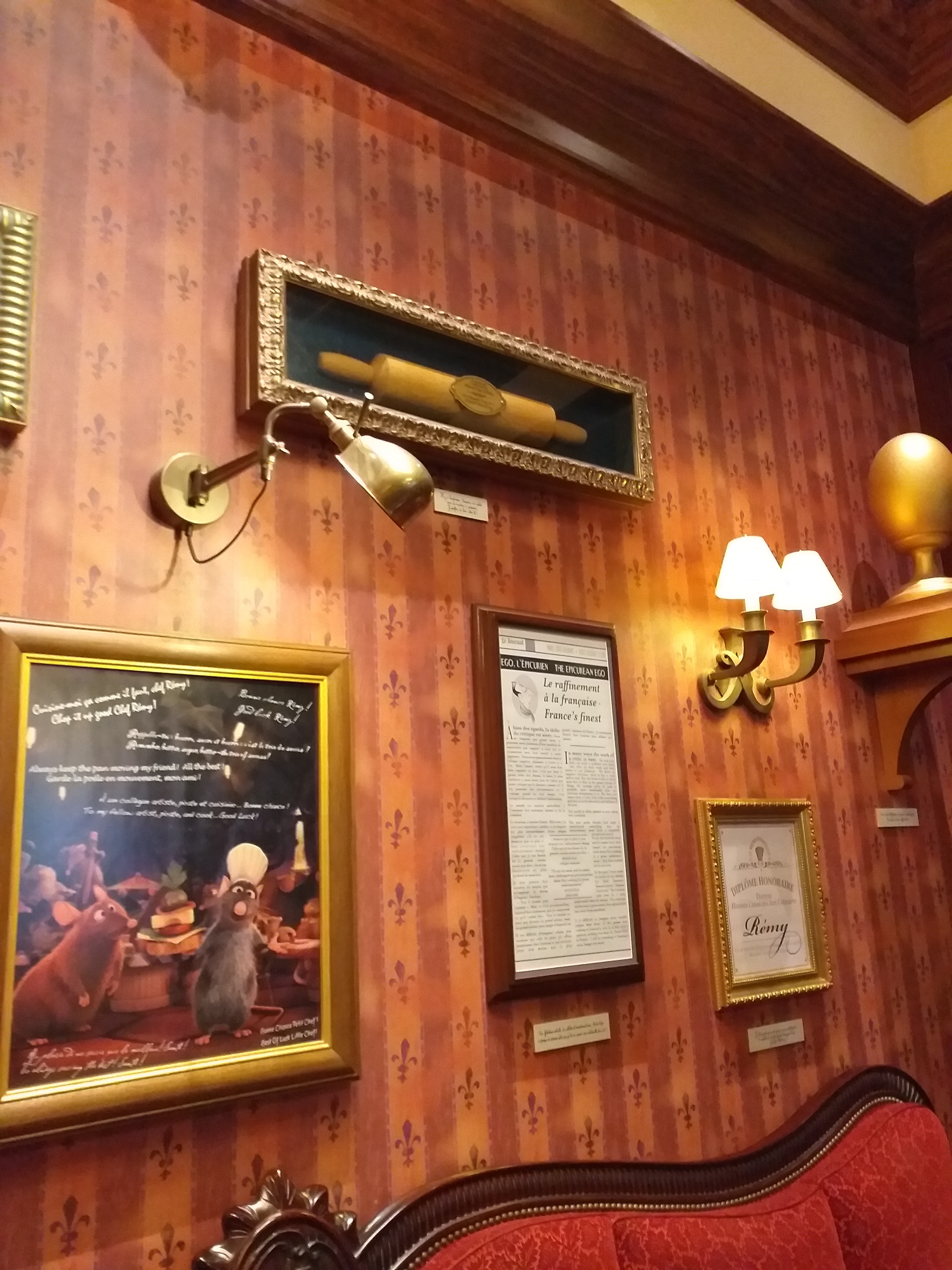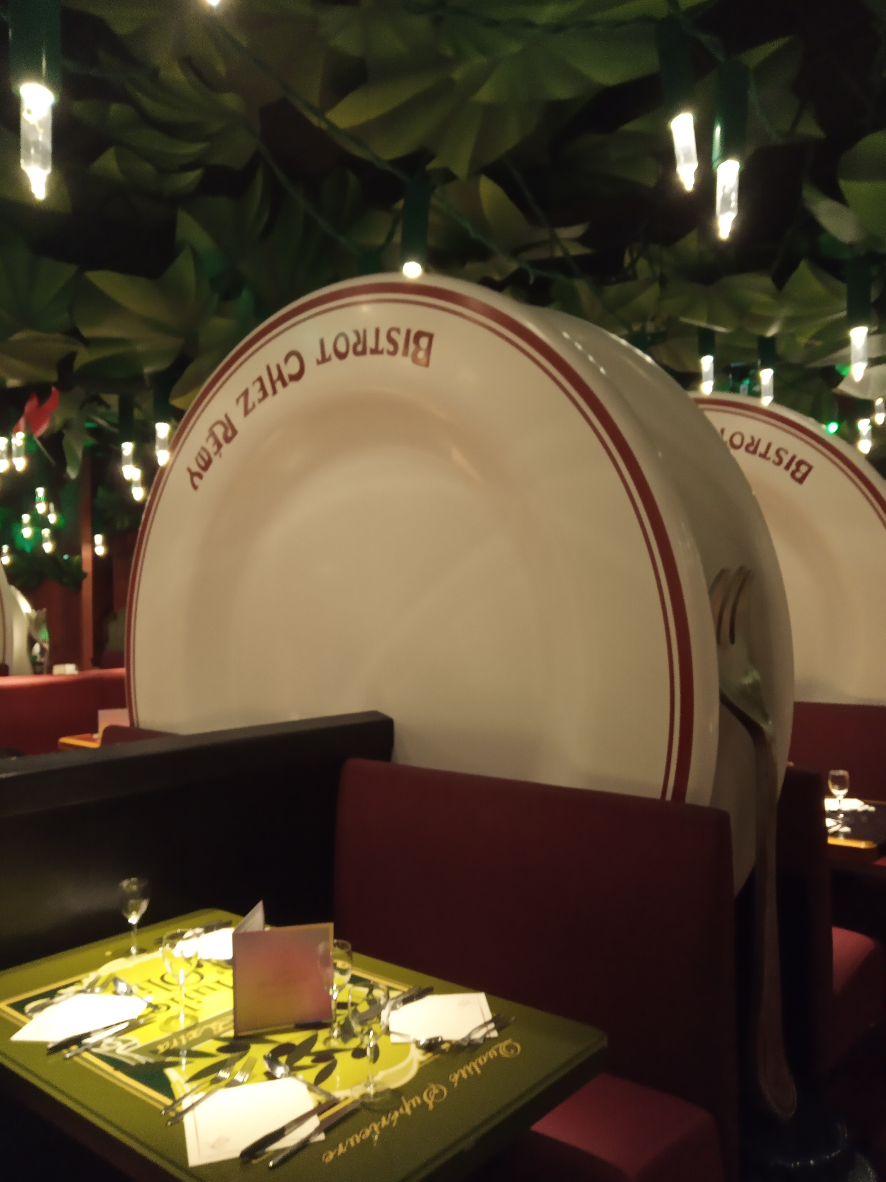 Le Bistro Chez Rémy a un décor vraiment beau ! Pleins de détails vraiment bien pensés. Pour ce qui est de la cuisine, la ratatouille, nous ne pouvions pas passer à côté était vraiment bonne ! Dommage qu’elle n’était pas dressée comme dans le film. Nous n’avons pas pris de dessert car ces derniers ne faisaient pas vraiment envie et avaient l’air industriel. Malgré tout, ce fut une belle découverte