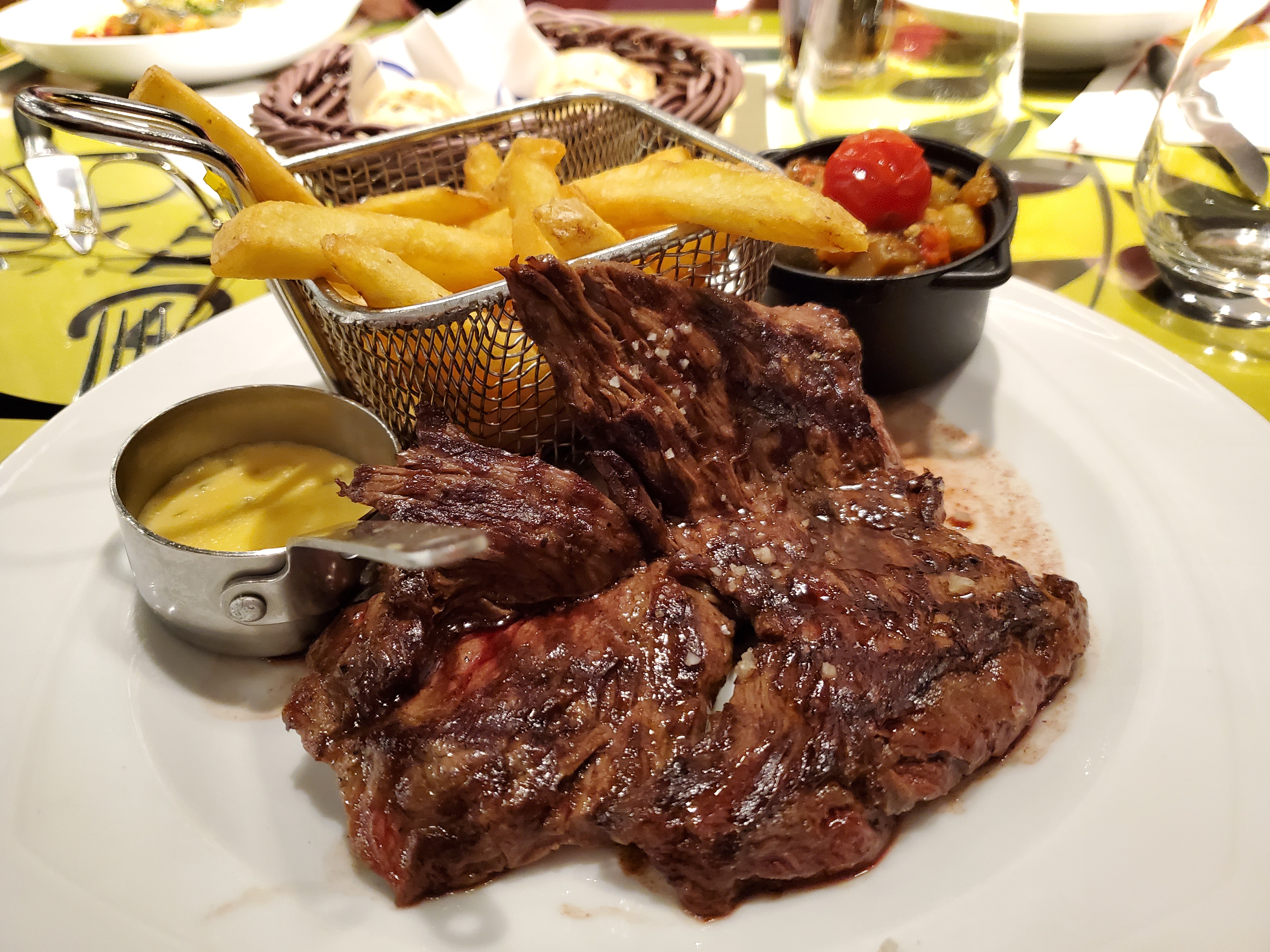 Le meilleur endroit pour manger, bien qu'un peu cher. Nous pouvons vous proposer un menu à 30€ par personne avec entrée et plat. Ou 35€ avec dessert. Meilleur steak, meilleures frites, meilleure ratatouille, meilleur dessert jamais mangé dans tout Disney. J'ai adoré ! Le service était incroyable. Le personnel est très instruit et parle plusieurs langues.