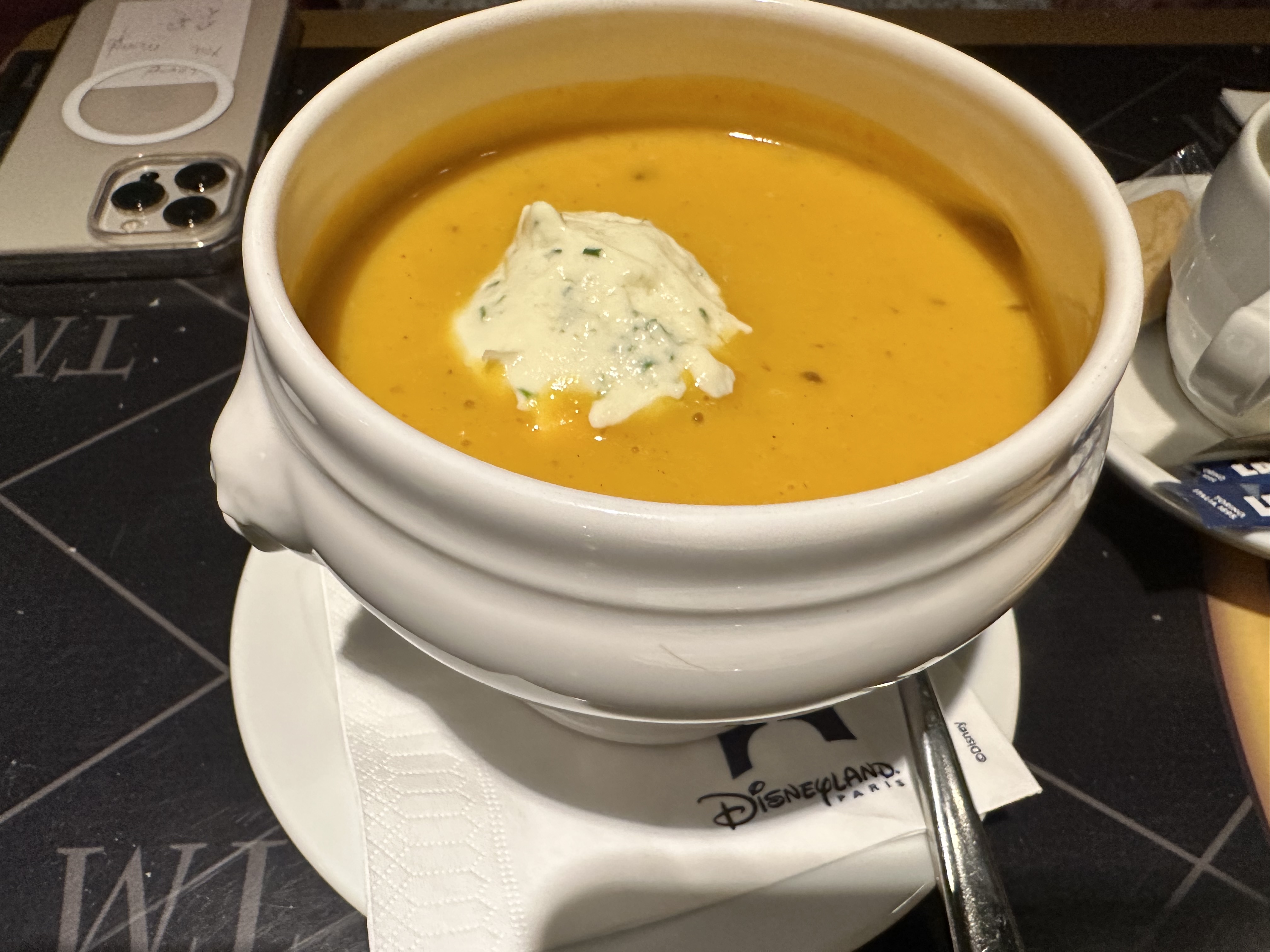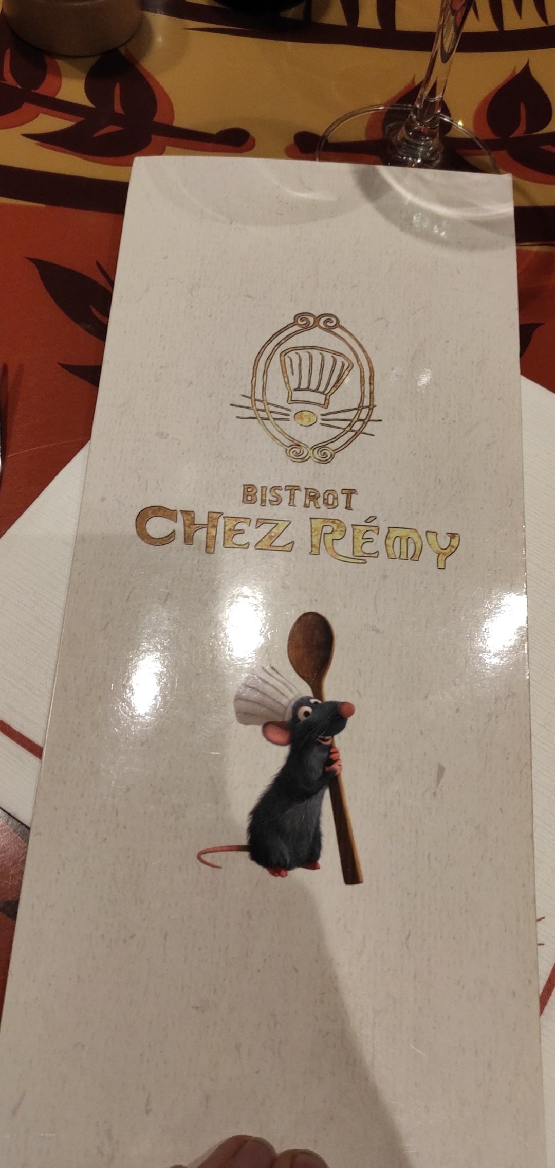 Bonjour à tous ! Notre restaurant le plus fréquenté, The Silver Spur, étant fermé, nous avons décidé de réserver une table au Chez Rémy. C'est après tout l'une des meilleures décisions que nous ayons prises. L'endroit est magnifique, extrêmement bien conçu et le personnel est fantastique. Nous n'avions choisi que le menu à deux assiettes car nous ne voulions pas de dessert. C'était donc au début soupe et salade et cabillaud avec pommes de terre assorties et Ratatouille 🤣. Nous ne nous attendions pas vraiment à grand-chose mais avons été convaincus du contraire. Tout est très bien préparé et assaisonné. Les portions sont bonnes et pas trop grosses donc ça permet de repartir tout de suite pour la prochaine balade dans Crush's Coaster 😝 Alors allez-y et essayez-le, c'est une expérience à ne pas manquer. En combinaison avec mon abonnement annuel, ce n'était même pas trop cher. Bel endroit.... Je réserverai certainement à nouveau 👌