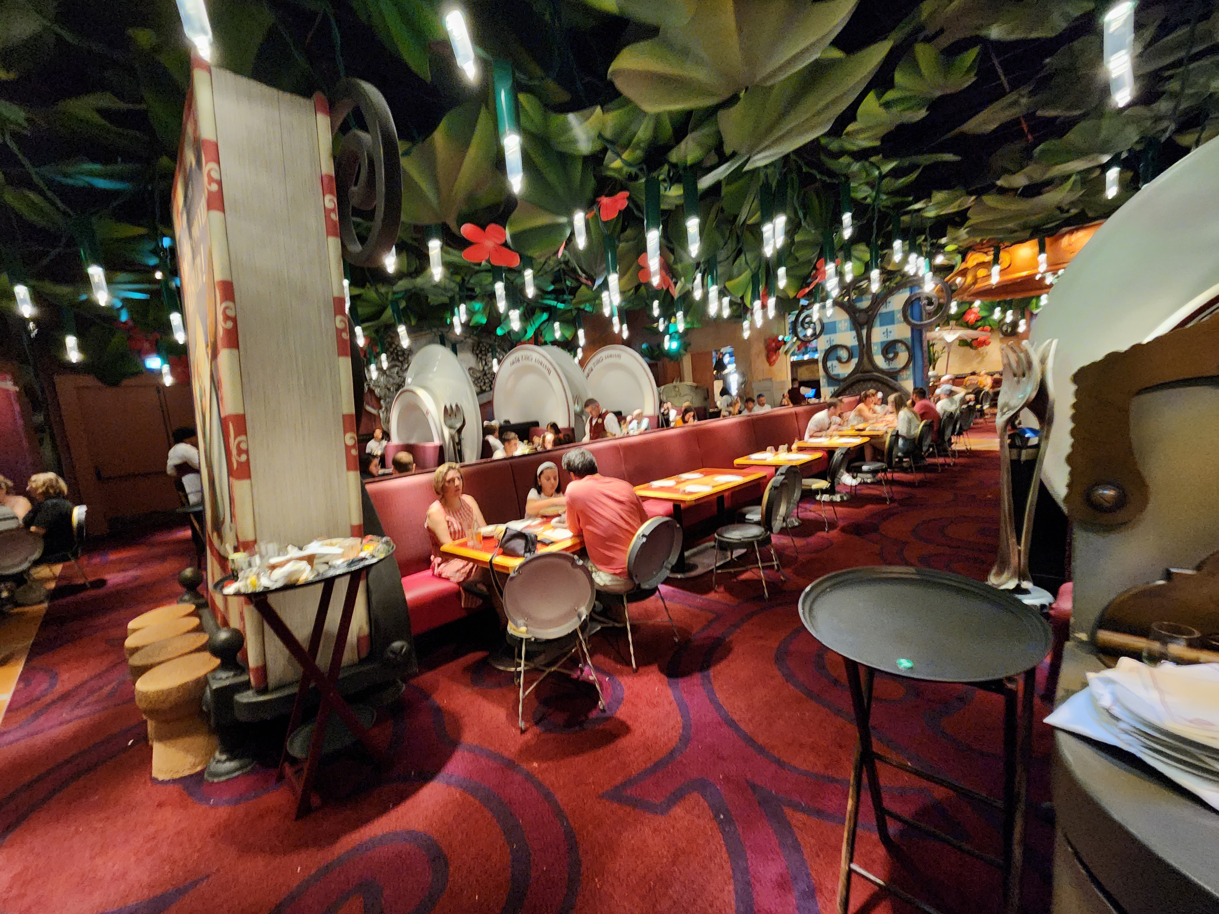 Le restaurant a une décoration amusante, vous vous transformez en un monde géant avec des ustensiles et des assiettes plus grands que nature décorant la salle. Cependant, j'ai été déçu, le service était extrêmement médiocre, cela prenait 2 heures pour 2 plats. La nourriture était correcte, nous avons utilisé le plan de restauration Disney. Il n'a pas répondu au battage médiatique offert à ce restaurant.