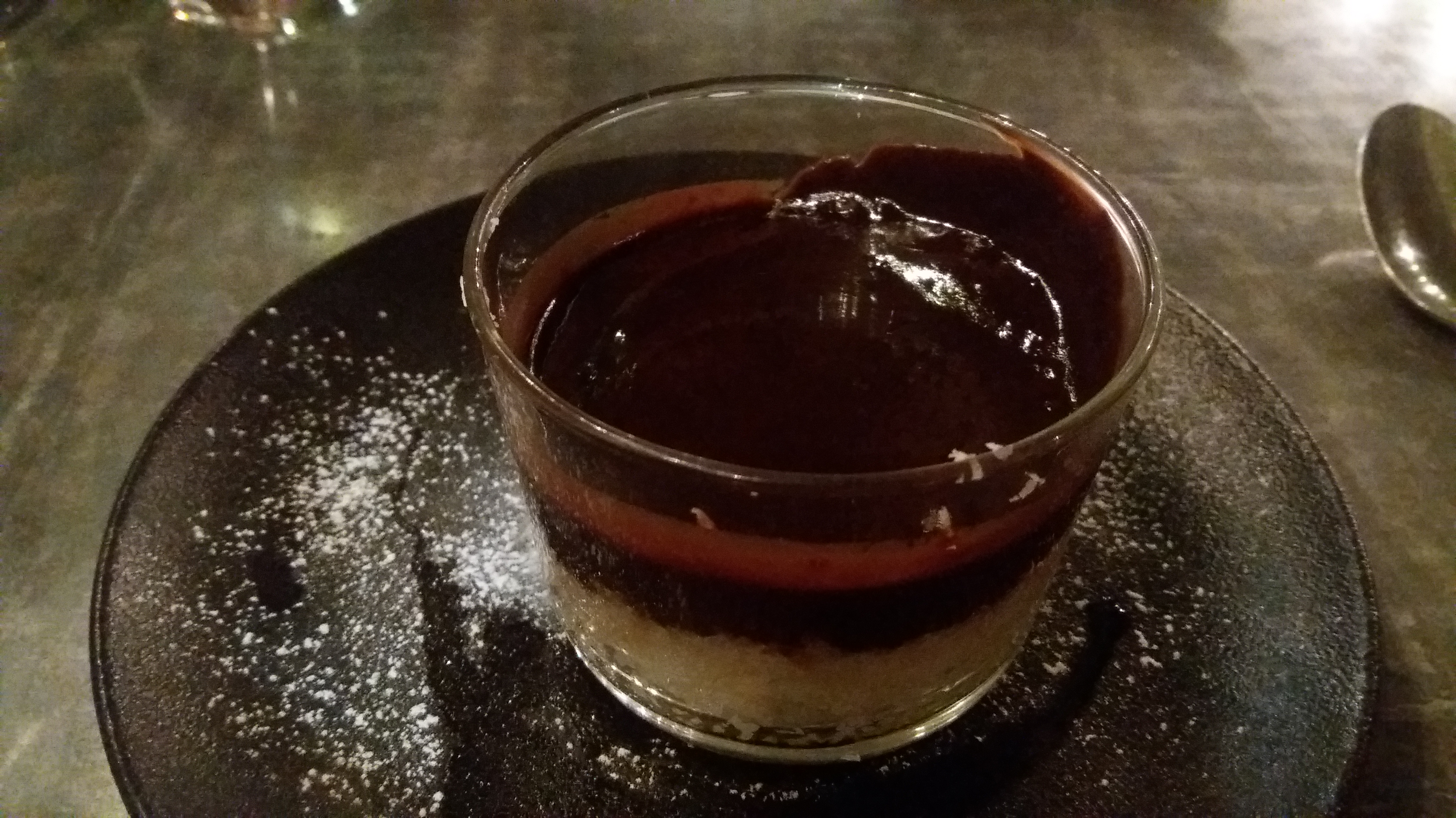 Notre avis serait monté à 4* sans le dessert. En effet, l’entrée et le plat étaient vraiment très bons mais le dessert vraiment décevant pour les 34€ du menu. En effet, nous nous attendions à autre chose que deux verrines, certes bonnes, de panacota ou de bounty (crème noix de Coco avec un chocolat noir fondu dessus... bof pour le 34€ le menu). Dommage de rester sur cette note. Bémol aussi sur le verre du sommelier : les verres de vin nous ont été amenés sans que l’on nous annonce ce que nous allions boire...
