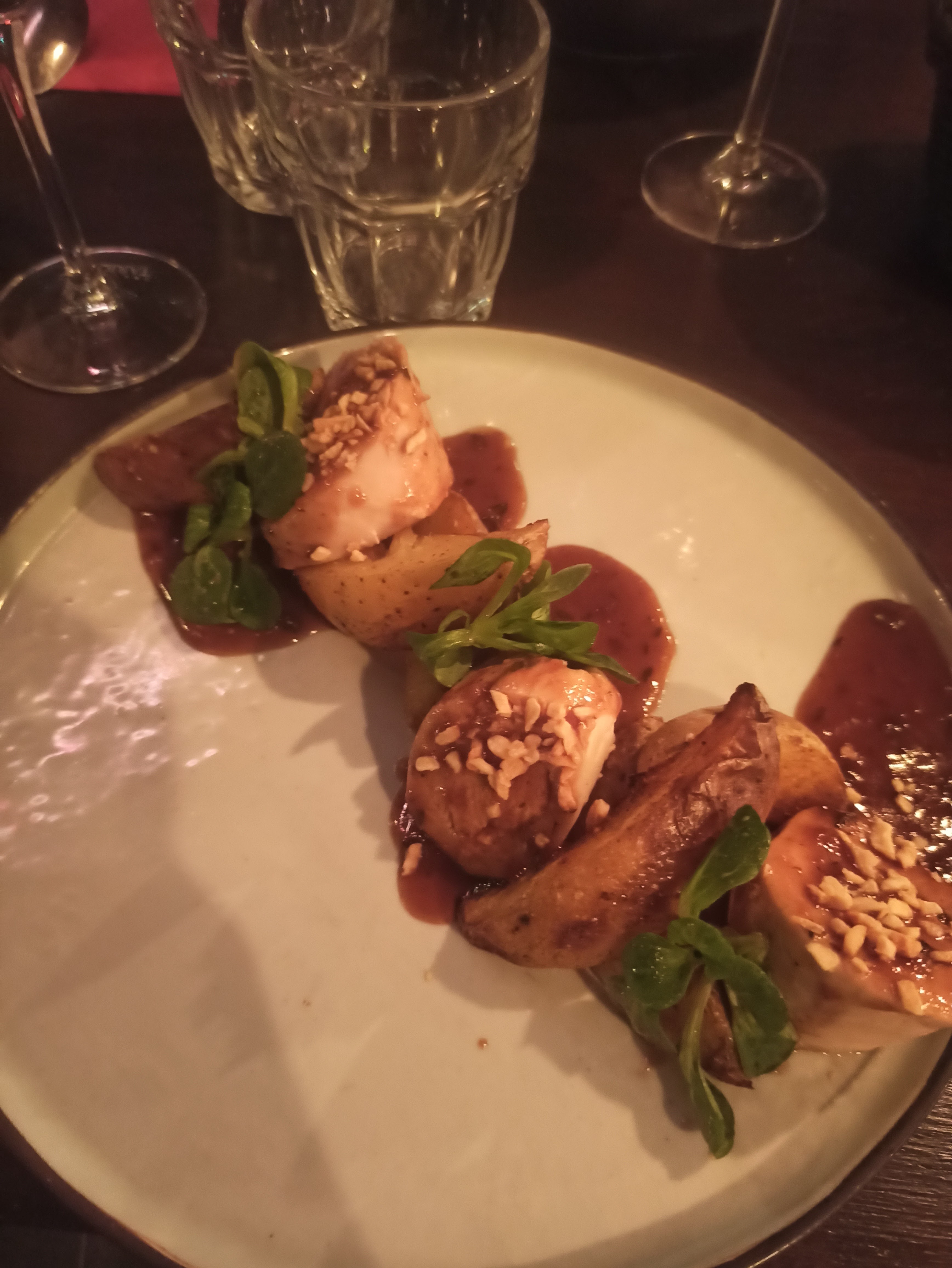Des assiettes magnifiquement dressées, des plats pleins de saveurs de l'entrée au dessert. La quantité comme la qualité des plats proposés est au rendez-vous. Ambiance calme, parfait pour un dîner en tête à tête. Il ne manque qu'un peu plus de sourire de la serveuse...😉 Je recommande cet établissement agréable !