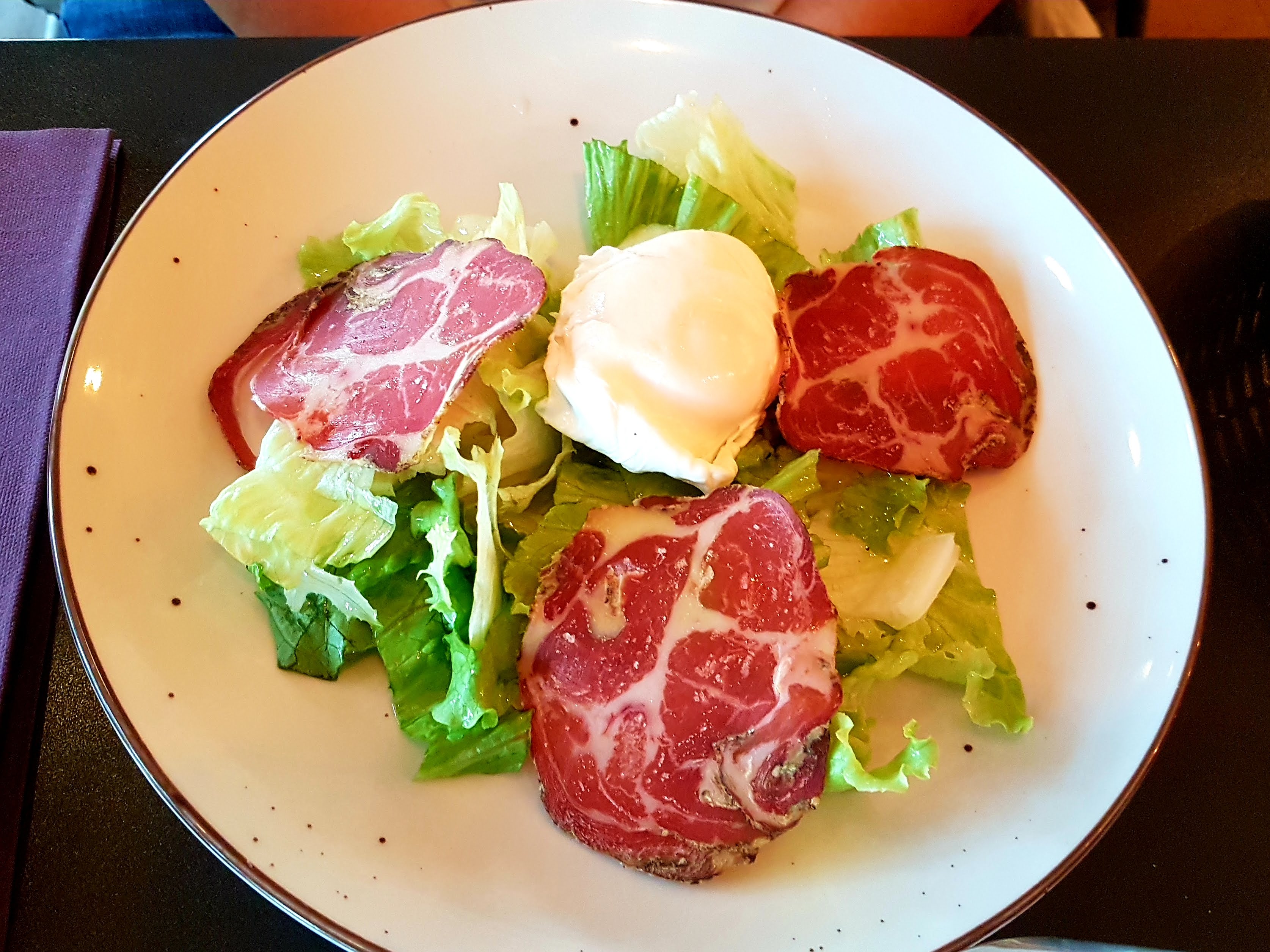 Le cadre intérieur est très soigne et l'accueil chaleureuse. Le service très bien même si cela a durée un peu trop longtemps pour chaque plat. Concernant les plats, ma femme était très contente mais de mon côté c était plus mitigé : mes plats étaient certes originaux mais trop salés.