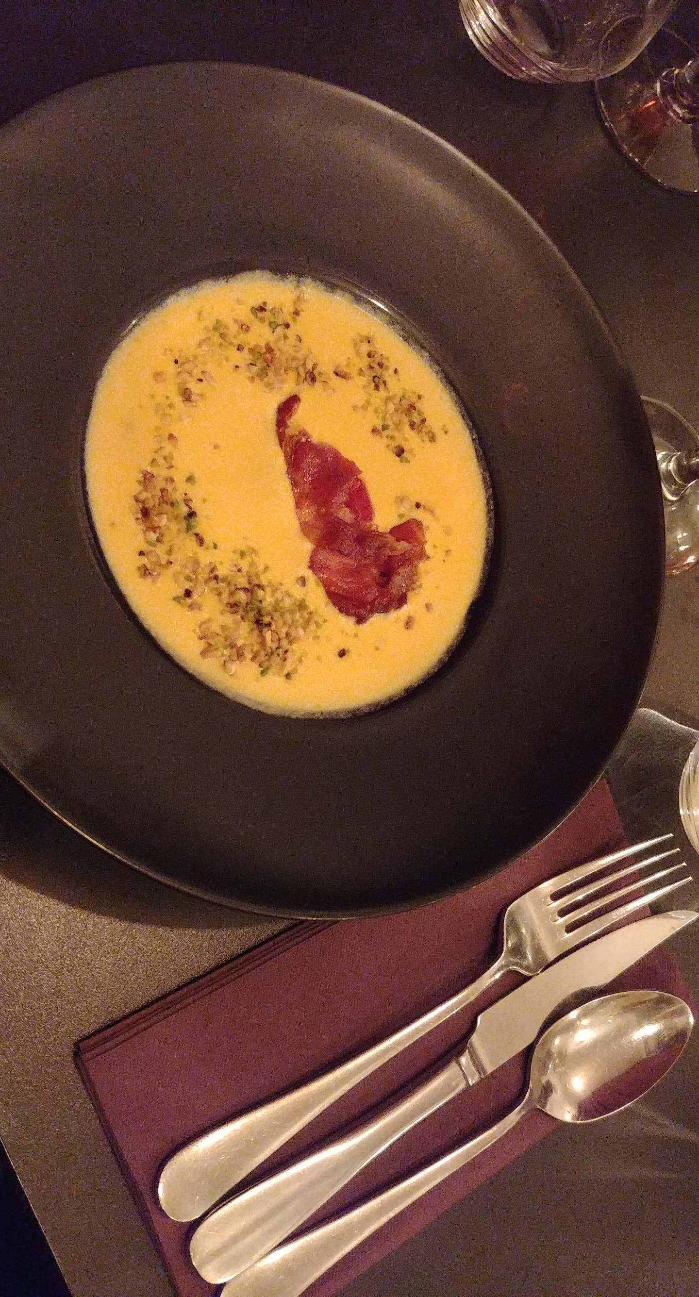 Restaurant très sympa. Diner entres collegues europeens. Thomas accueillant, a la fois discret mais present si besoin. La carte est variée. 30€ entrée plat dessert, tout a fait raisonnable. Les plats sont très bons (légèrement déçue par l'angus, saveur et cuisson). Je recommande !