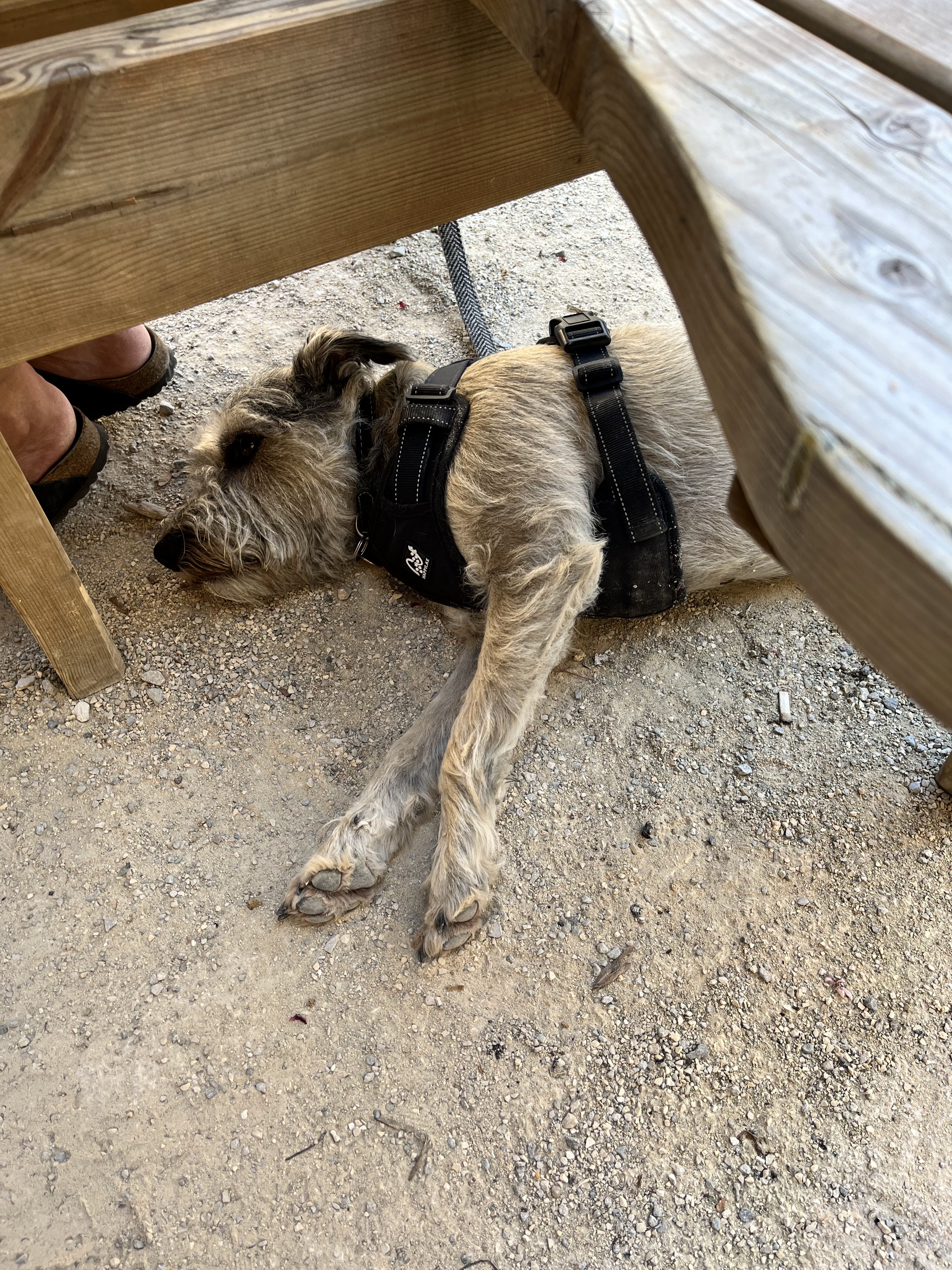 Le serveur est super. On a eu beaucoup de guêpes mais super jolie place pour faire un break