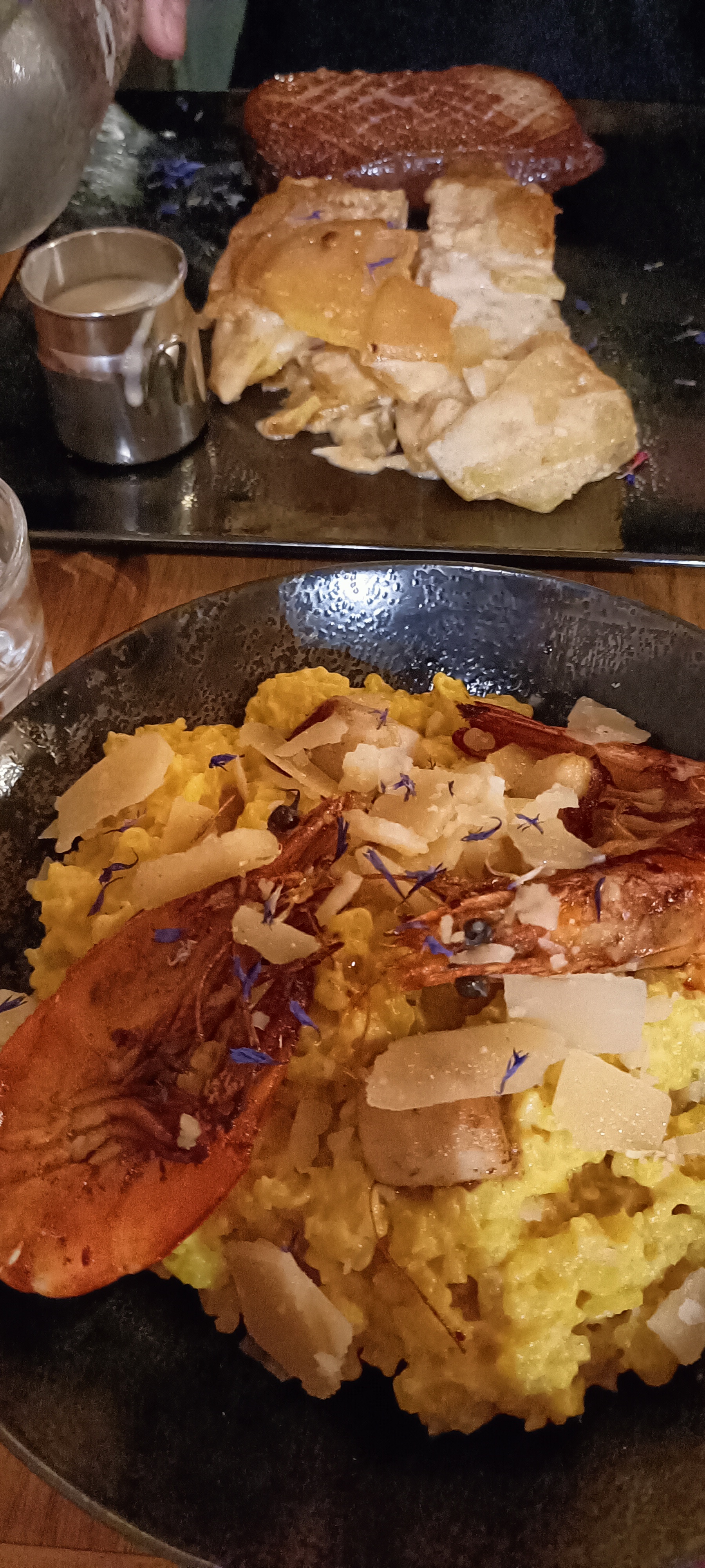 Serveuse très souriante du choix, restaurant dans son jus , magret de canard et gratin dauphinois très bien mais déçu par le risotto