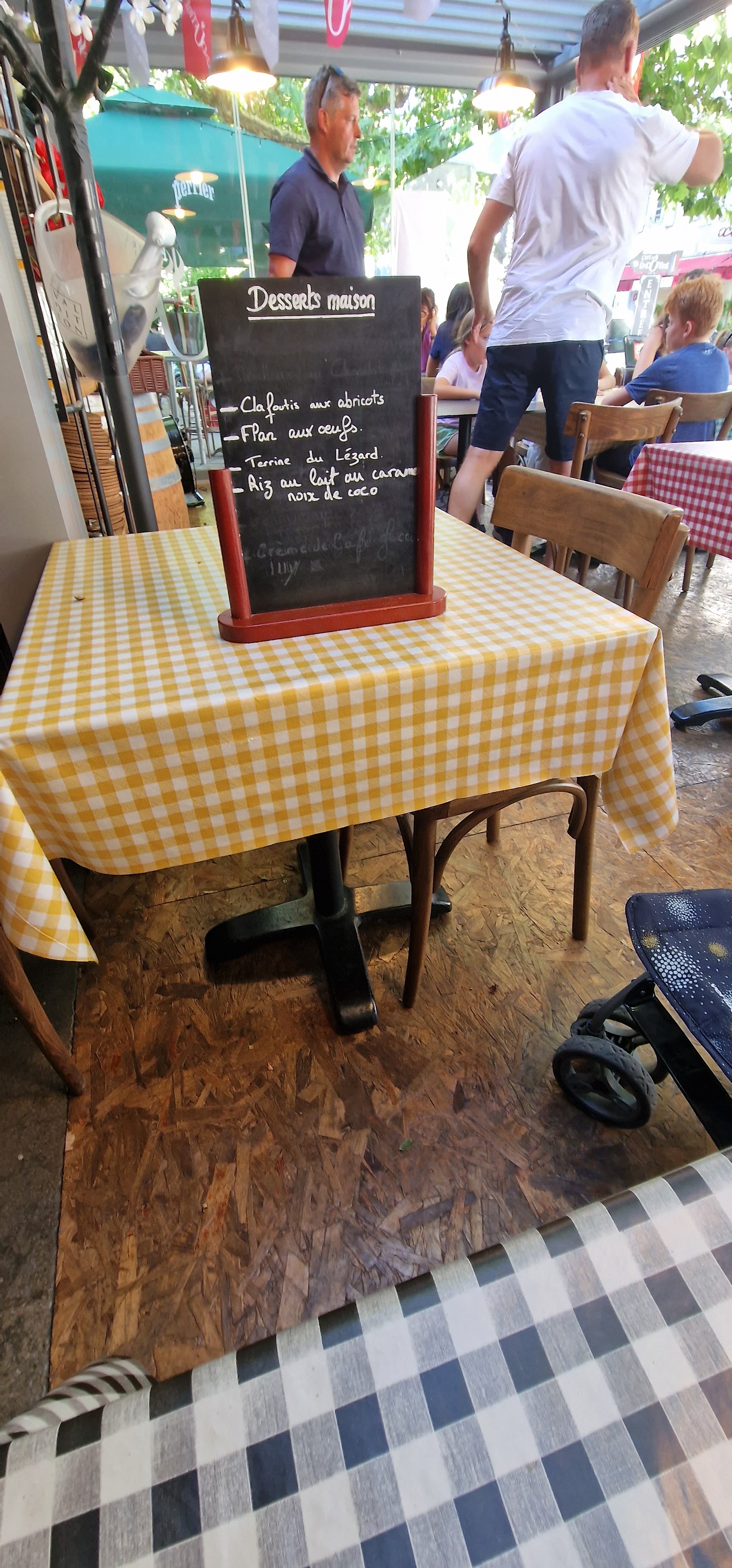 Énormément de monde en ce jour de la fête des mères le personnel est tendu mais les serveuses restent néanmoins très gentilles et sympathiques, la personne qui prépare les tartares à mon avis n'aime pas en manger( trop de capres, trop de tout trop de sauce au final malheureusement insipide) sur trois assiettes tout le monde a eu des frites carbonisées c'est dommage, le tiramisu aux marrons est très bon et le vin au pichet en aop Luberon il me semble et très correct.